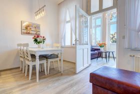Die Villa Germania ist eine sehr schöne, vollständig renovierte Jugendstilvilla in der ersten Reihe direkt an der Strandpromenade des Seebades Ahlbeck. Die berühmte Ahlbecker Seebrücke sowie das Ortszentrum mit Einkaufsmöglichkeiten für Lebensmittel, einen Bäcker sowie zahlreiche Restaurants und Boutiquen erreichen Sie in nur 3 Minuten zu Fuß.