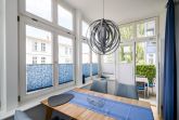 Ferienwohnung, Wohnaum mit Doppelbett-Schlafsofa, Essbereich im eigenen Wintergarten, Küchenbereich, 1 Schlafzimmenn mit Doppelbett, Bad und Terrasse im Erdgeschoß. Tiefgaragenstellplatz gegen Gebühr.