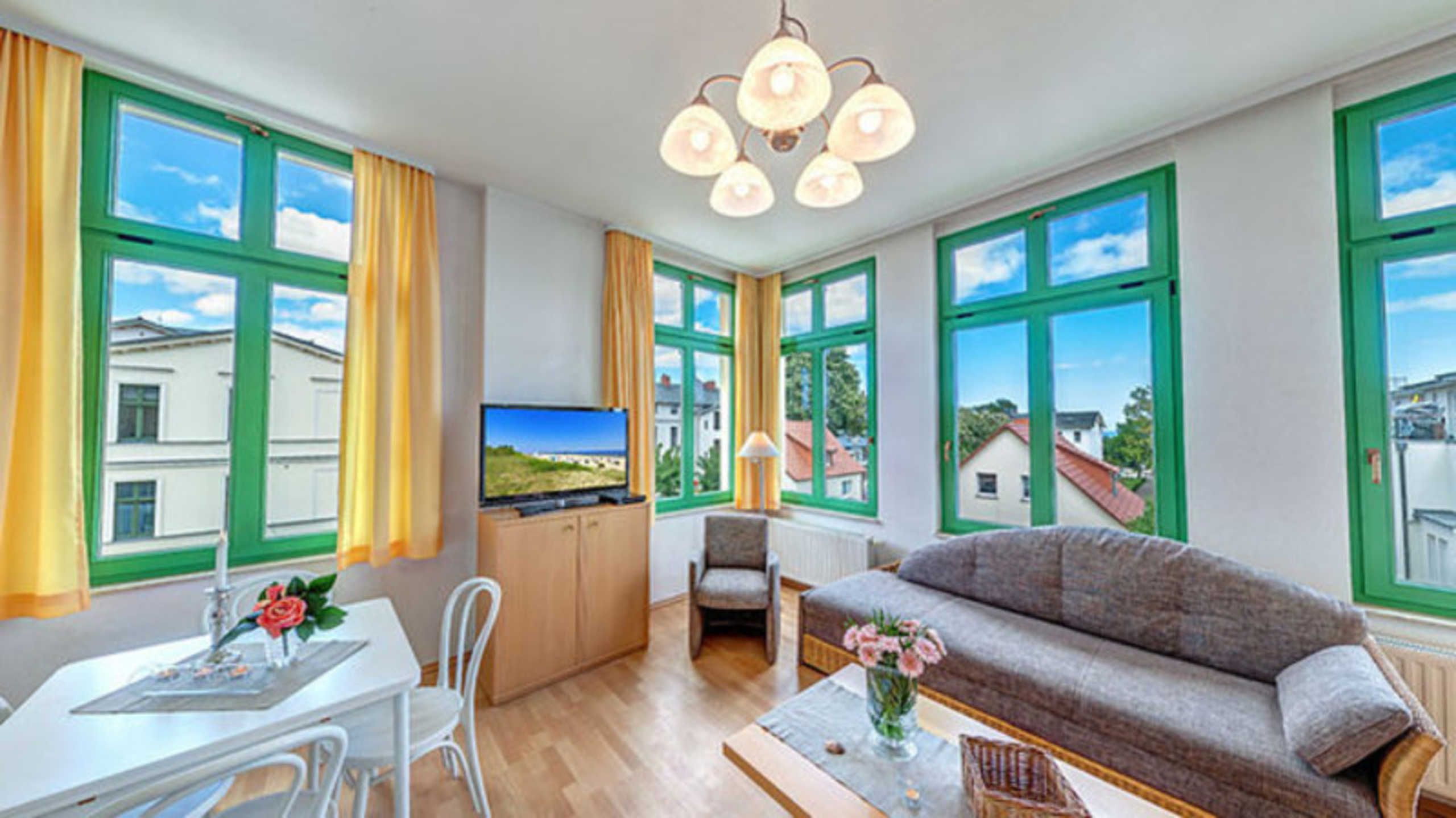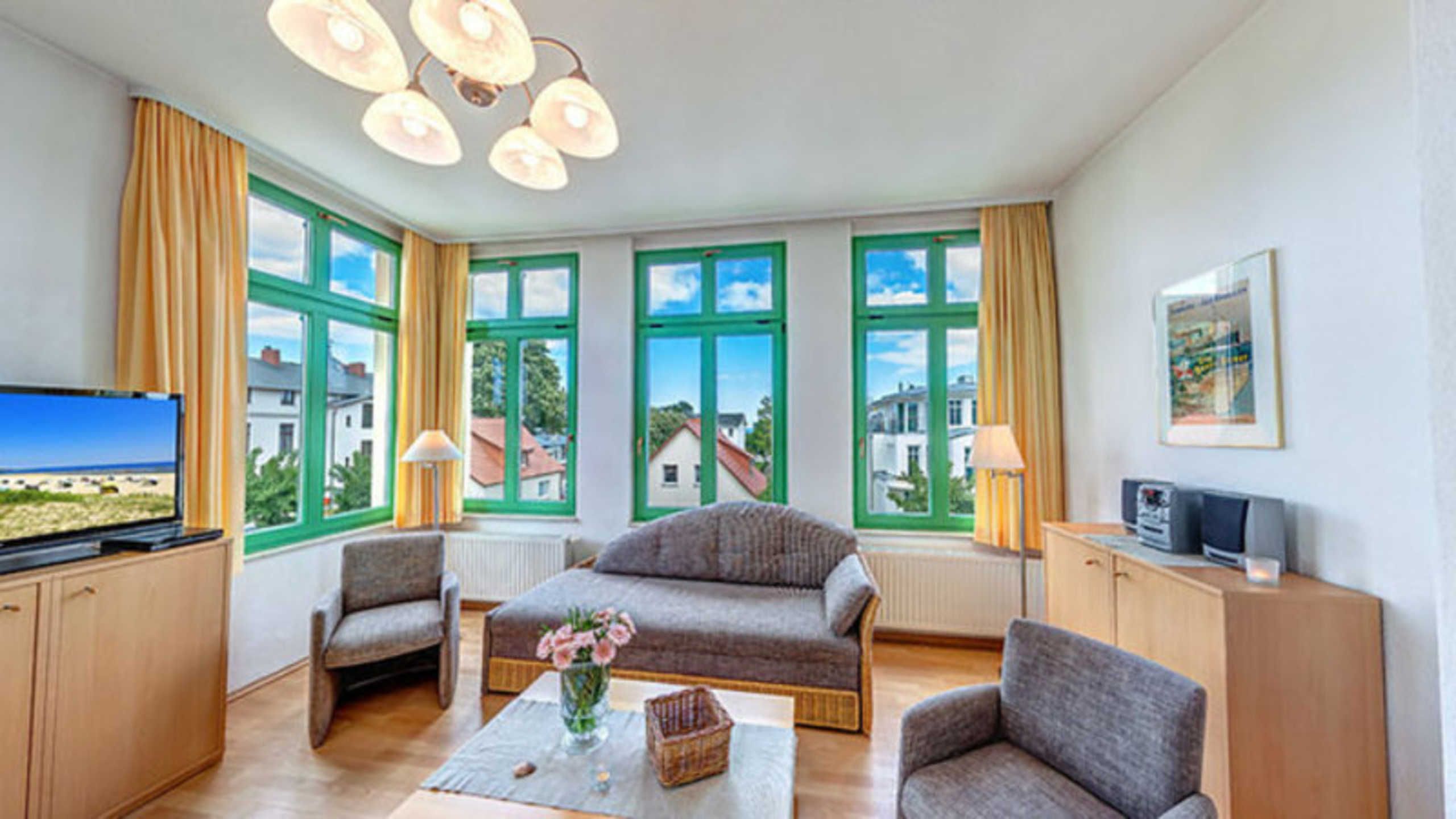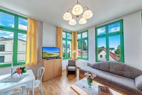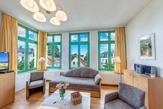 STRANDNAH mit BALKON! Nur ca. 100 m zur Strandpromenade! Schönes geräumiges 2-Zimmer-Apartment mit gemütlicher und guter Ausstattung. Separates Schlafzimmer, Schlafcouch im Wohnzimmer, vollwertige Küchenzeile mit Essplatz, Duschbad, zus. Gäste-WC, kleiner Vorflur, Balkon. Die Wohnung verfügt über einen Pkw-Stellplatz . Abstellraum für Fahrräder und ähnliches ist vorhanden. Eine Sauna in der Villa Germania kann kostenpflichtig genutzt werden. Vom Haus aus können Sie das Ortszentrum und die bekannte Ahlbecker Seebrücke in ca. 3 bzw. 5 Minuten zu Fuß erreichen.