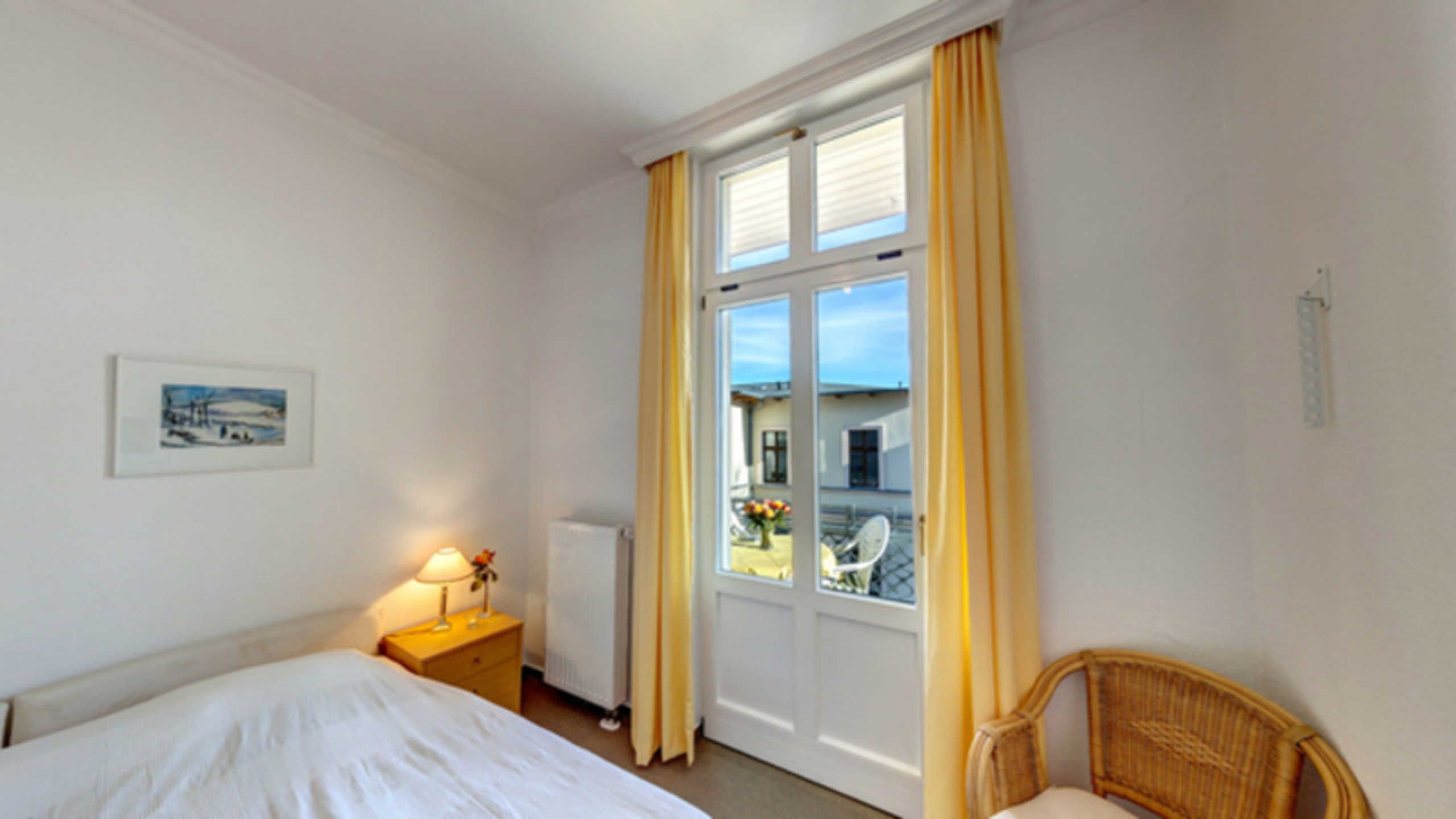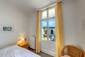 Das gemütliche 2-Zimmer-Appartement Nr. 11 befindet sich im ersten Obergeschoss der Villa Ostseewarte. Es verfügt über ein separates Schlafzimmer mit einem Doppelbett und einen Wohnbereich. Die voll ausgestattete Küchenzeile mit Kaffeemaschine, Wasserkocher, Toaster, Backofen und Geschirrspüler sowie einem Essplatz ist in den geräumigen Wohnbereich integriert. Das Bad ist mit Dusche und WC ausgestattet. Zum Appartement gehört darüber hinaus ein möblierter Südbalkon. Ein Pkw-Stellplatz steht Ihnen auf dem Grundstück kostenfrei zur Verfügung und Ihre Fahrräder können Sie ebenfalls auf dem Grundstück in einem separaten Abstellraum unterbringen. Alle Wohnungen in der Villa Ostseewarte haben passwortgeschütztem DSL-WLAN Internetzugang (gerätegebunden, Euro 1,50 pro Tag und Gerät). Ein FAHRSTUHL wurde nachträglich eingebaut. Eine Waschmaschine können Sie direkt im Haus gegen Gebühr nutzen (Münzgerät).