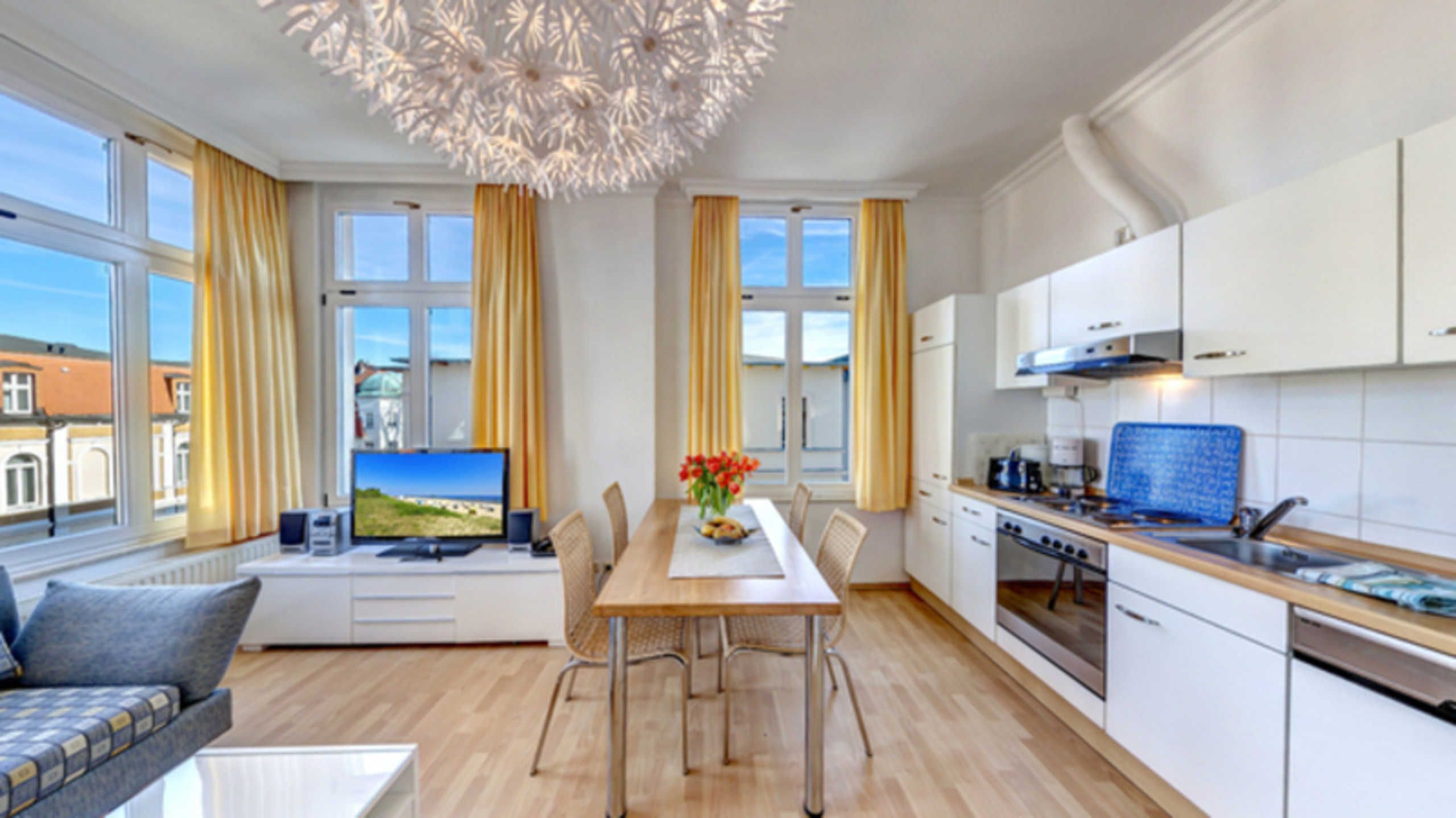 STRANDNAH mit BALKON! Nur ca. 100 m zur Stranpromenade! Schönes geräumiges 2-Zimmer-Apartment mit gemütlicher und guter Ausstattung. Separates Schlafzimmer, vollwertige Küchenzeile mit Essplatz, Duschbad, zus. Gäste-WC, kleiner Vorflur, Balkon. Die Wohnung verfügt über einen Pkw-Stellplatz . Abstellraum für Fahrräder und ähnliches ist vorhanden. Eine Sauna in der Villa Germania kann kostenpflichtig genutzt werden. Vom Haus aus können Sie das Ortszentrum und die bekannte Ahlbecker Seebrücke in ca. 3 bzw. 5 Minuten zu Fuß erreichen.