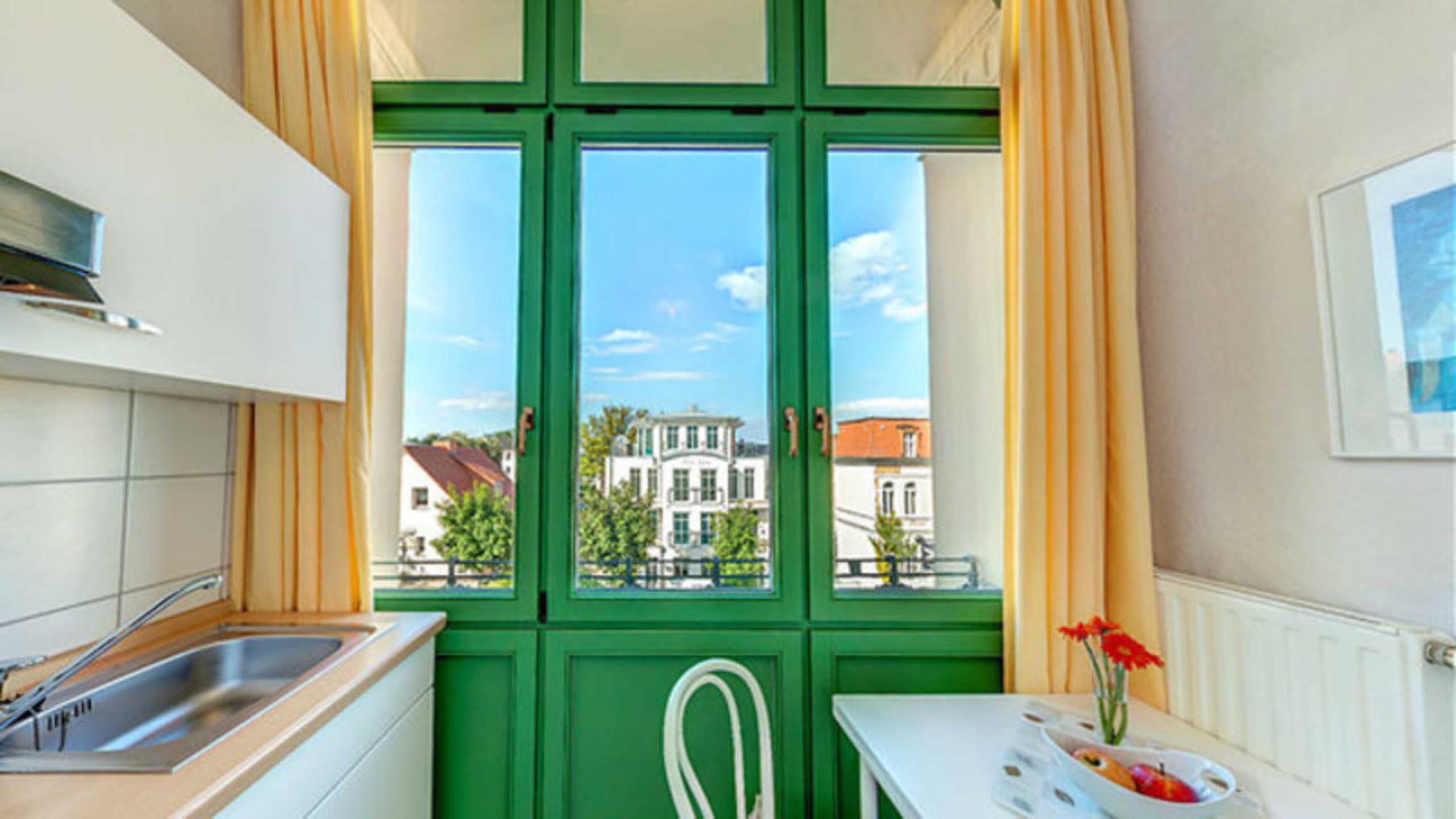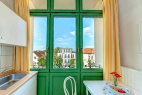 Das gemütliche 1-Zimmer-Appartement Nr.10 befindet sich im ersten Obergeschoss der Villa Ostseewarte nur 2 Minuten vom feinen Ostseestrand entfernt. Es verfügt über einen geräumigen Wohn- und Schlafraum mit einem Doppelbett, einer gemütlichen Sitzgruppe sowie einem Essplatz. Die separate Küche ist voll ausgestattetet mit Kaffeemaschine, Wasserkocher, Toaster und Mikrowelle. Das Bad verfügt über Dusche und WC. Zum Appartement gehört darüber hinaus ein Balkon. Ein Pkw-Stellplatz steht Ihnen auf dem Grundstück kostenfrei zur Verfügung und Ihre Fahrräder können Sie ebenfalls auf dem Grundstück in einem separaten Abstellraum unterbringen. Alle Wohnungen in der Villa Ostseewarte haben passwortgeschütztem DSL-WLAN Internetzugang (gerätegebunden, Euro 1,50 pro Tag und Gerät). Ein FAHRSTUHL wurde nachträglich eingebaut. Eine Waschmaschine können Sie direkt im Haus gegen Gebühr nutzen (Münzgerät).