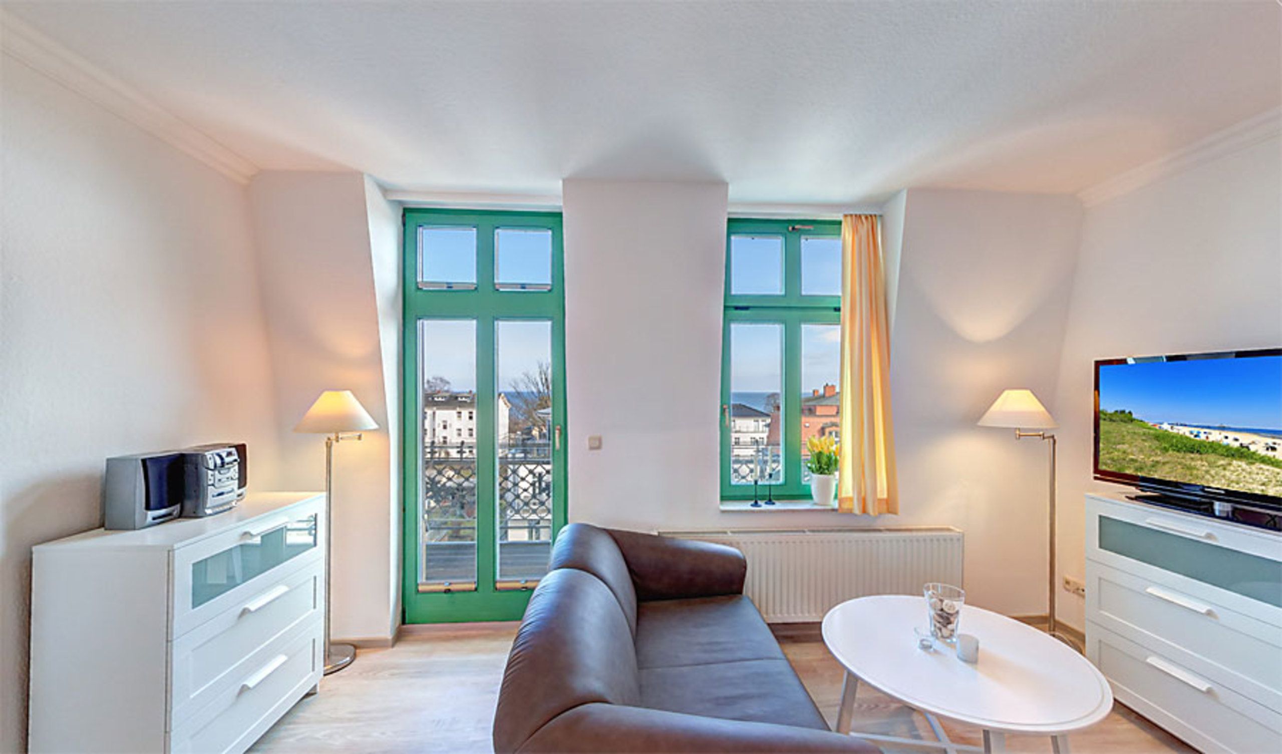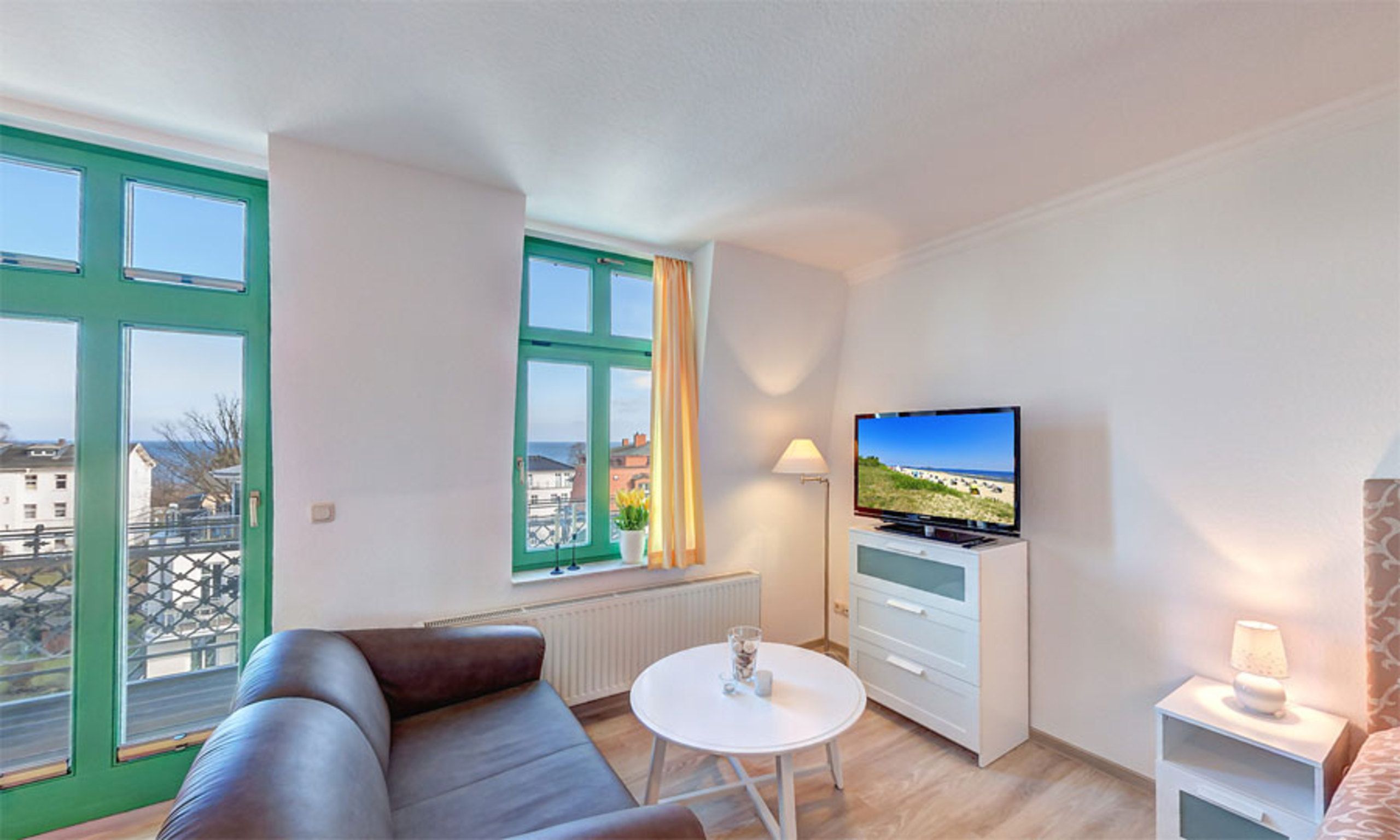 STRANDNAH mit SEEBLICK UND BALKON! Nur ca. 100 m zur StrandpromenadE! Gemütliches 1-Zimmer-Apartment mit guter Ausstattung. Geräumiger Wohn-/Schlafraum mit Doppelbett und Sitz-/Sofaecke, separate Küche mit Essplatz, Duschbad, kleiner Vorflur, Balkon zur Seeseite mit Blick über die vorstehenden Häuser hinweg zum Meer. Die Wohnung verfügt über einen Pkw-Stellplatz . Abstellraum für Fahrräder und ähnliches ist vorhanden. Eine Sauna in der Villa Germania kann kostenpflichtig genutzt werden. Vom Haus aus können Sie das Ortszentrum und die bekannte Ahlbecker Seebrücke in ca. 3 bzw. 5 Minuten zu Fuß erreichen.