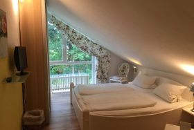 Das Zimmer 6 ist ein Doppelzimmer im 1 .Stock und bietet Gemütlichkeit unter der Dachschräge. Es ist frisch renoviert und hell und freundlich ausgestattet. Auch hier findet man allen Komfort wie z.B. ein Doppelbett, Mini-Safe, ein eigenes Duschbad und Kabel-TV. Die Preise verstehen sich inkl. Frühstückbuffet.