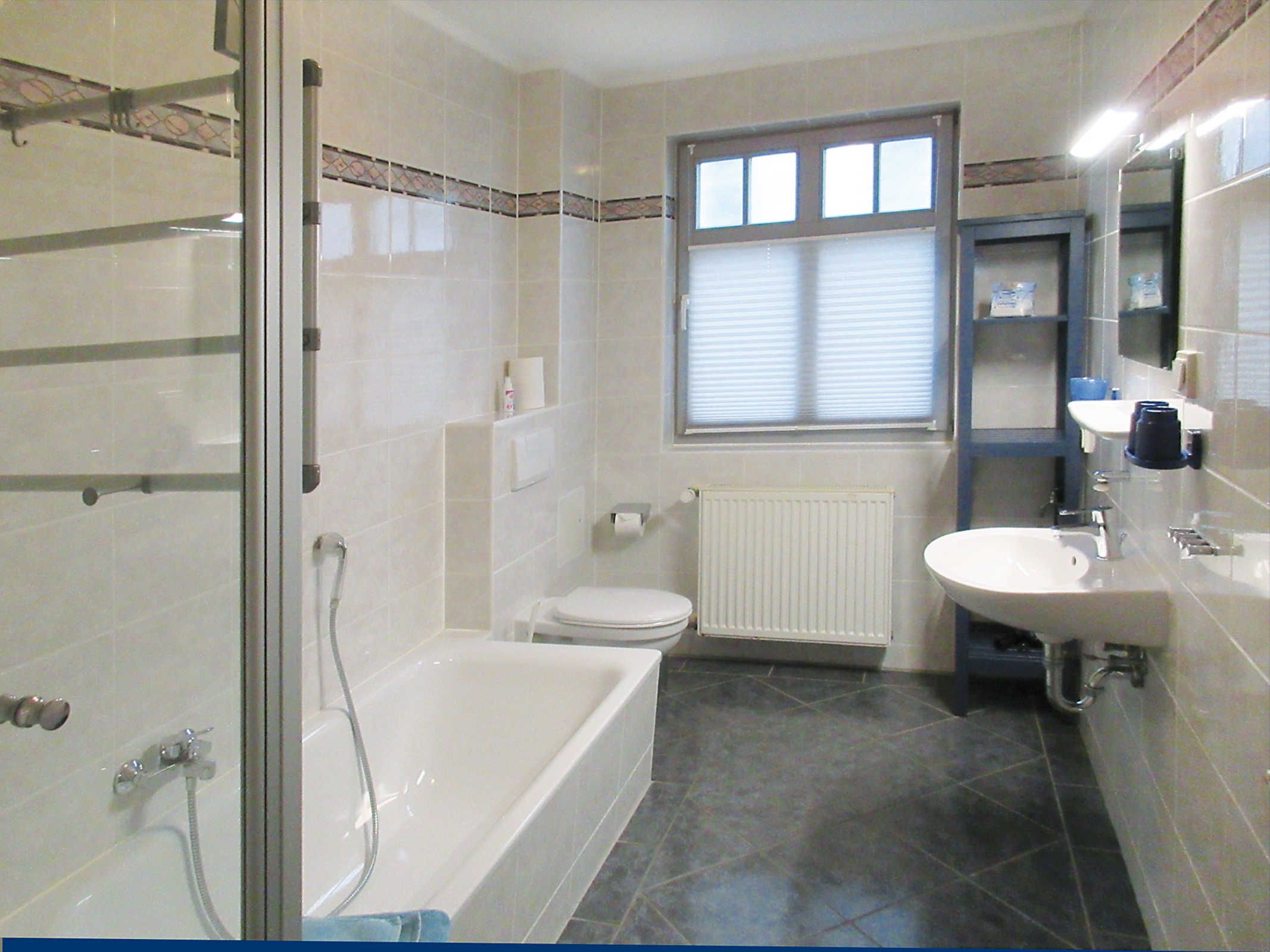 Das großzügig, modern und komfortabel eingerichtete 3-Raum-Appartement im Erdgeschoß mit kompletter, separater Küche (Cerankochfeld, Geschirrspüler, hochwertiges Geschirr, Mikrowelle,Backofen etc.) ist für 4 Personen (Doppelbett im 1. Schlafraum & großes Etagenbett im 2.Schlafraum) sowie für eine weitere Personen (Doppelschlafcouch im Wohnraum) vorgesehen. Im Bad befinden