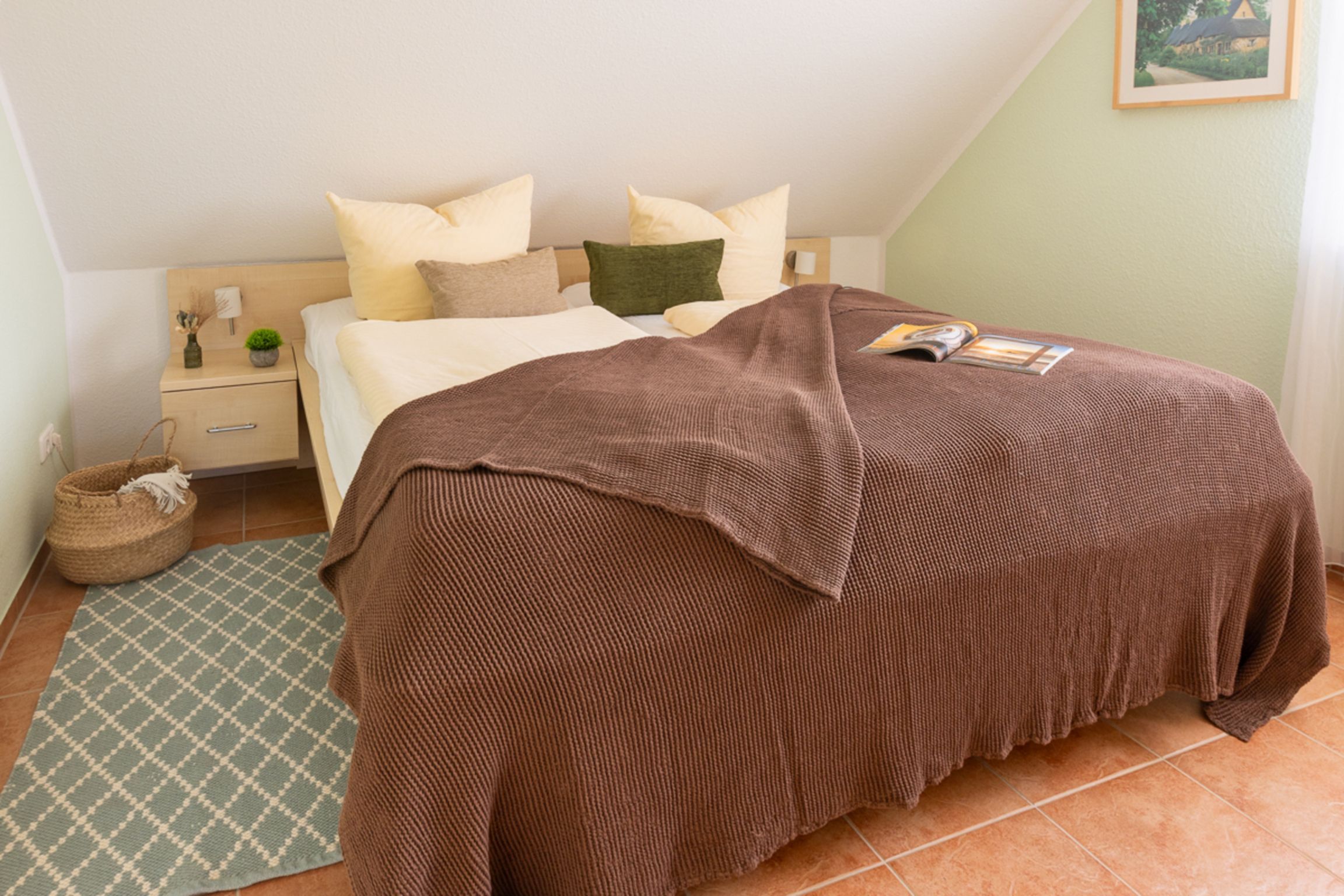 Die sonnendurchflutete Ferienwohnung „Margarete“ im Dachgeschoss kombiniert Komfort und Behaglichkeit. Alle Räume verfügen über eine moderne Fußbodenheizung. Der Fußboden ist in allen Zimmern vollflächig gefliest.