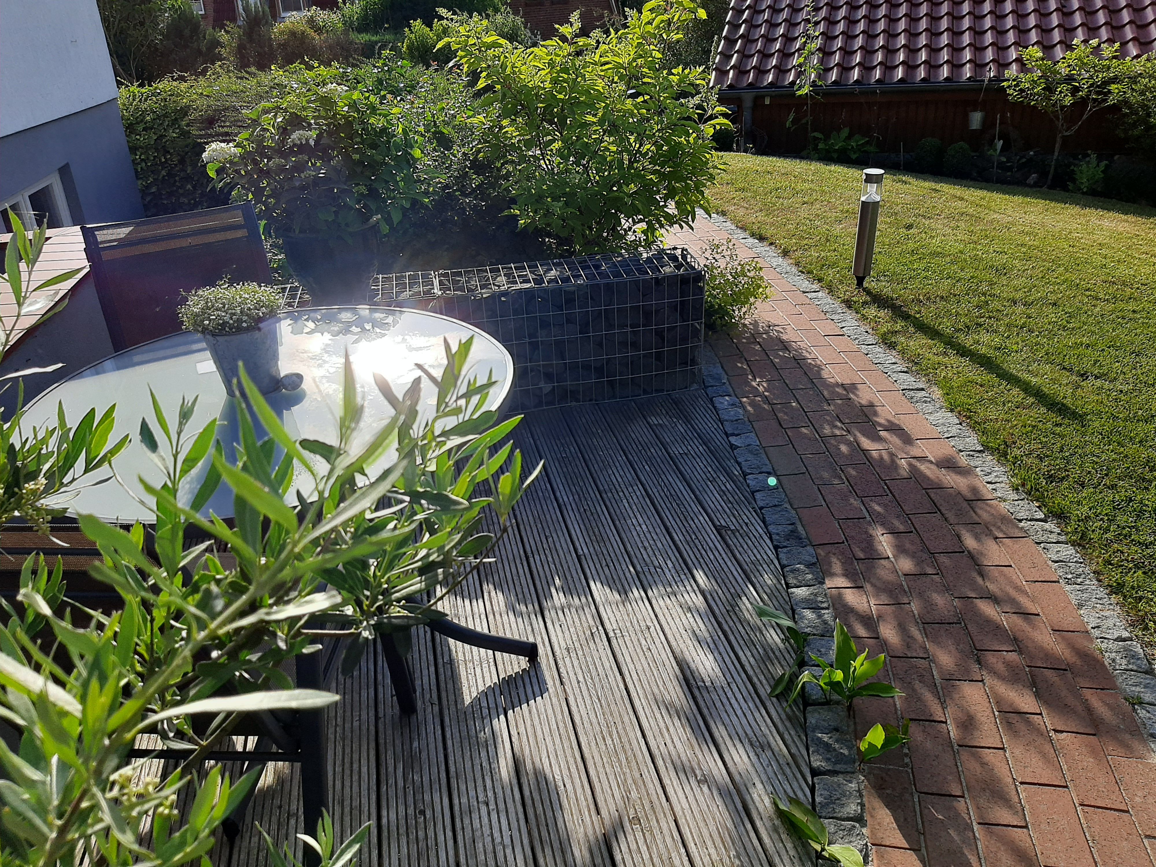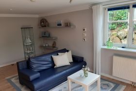 Modern eingerichtete 2-Zimmer-Nichtraucherwohnung im Souterrain, Wohnzimmer und Schlafzimmer mit Laminatboden u. gemütlichem Schlafsofa, Flachbildfernseher (SAT-TV), Radio, CD-/DVD Player, Essecke, Schlafzimmer mit Ehebetten, Einbauküche mit Geschirrspüler, Ceranfeld, Mikrowelle, Kapsel- und Filterkaffeemaschine Duschbad mit WC, Waschmaschine,Terrasse mit Sitzmöbeln. Bettwäsche und Handtücher sind im Preis enthalten.