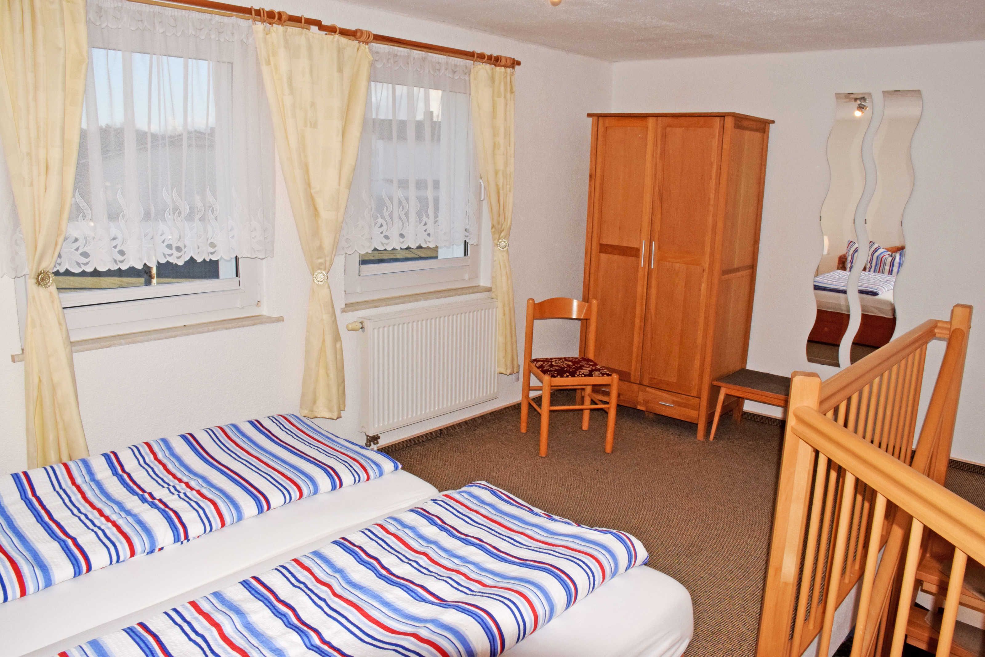 Auch diese Wohnung verfügt über einen eigenen separaten Eingang. Eine Mikrowelle können Sie auf Anfrage beim Vermieter erhalten. Die Wohung 7 ist eine Maisonettewohnung.
