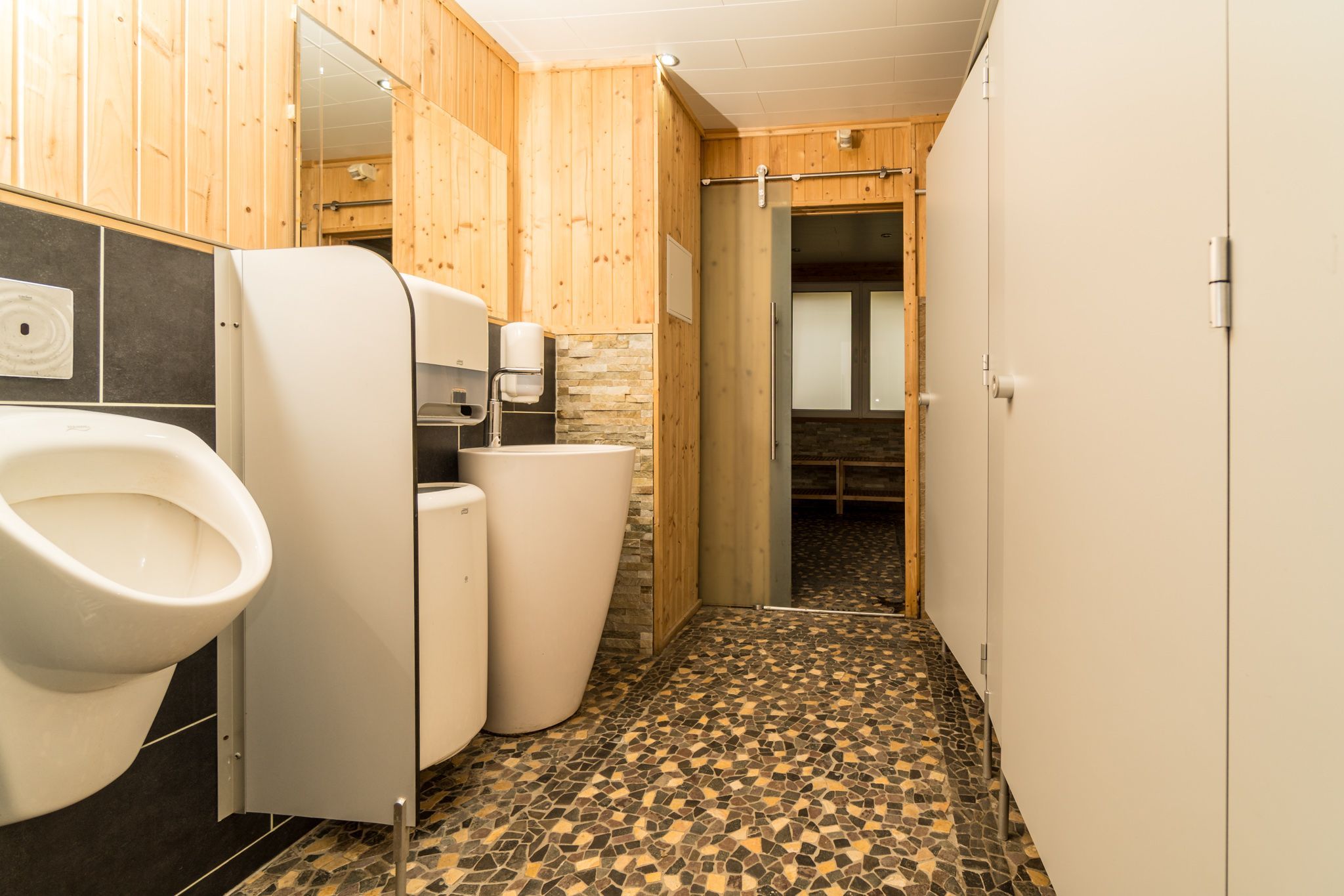 In allen Wohnwagen gibt es eine Toilette. Weitere Toiletten und die Duschen befinden sich separat im 2015 modernisierten Sani-Haus. Hier finden Sie auch einen Wickelbereich für Babys.