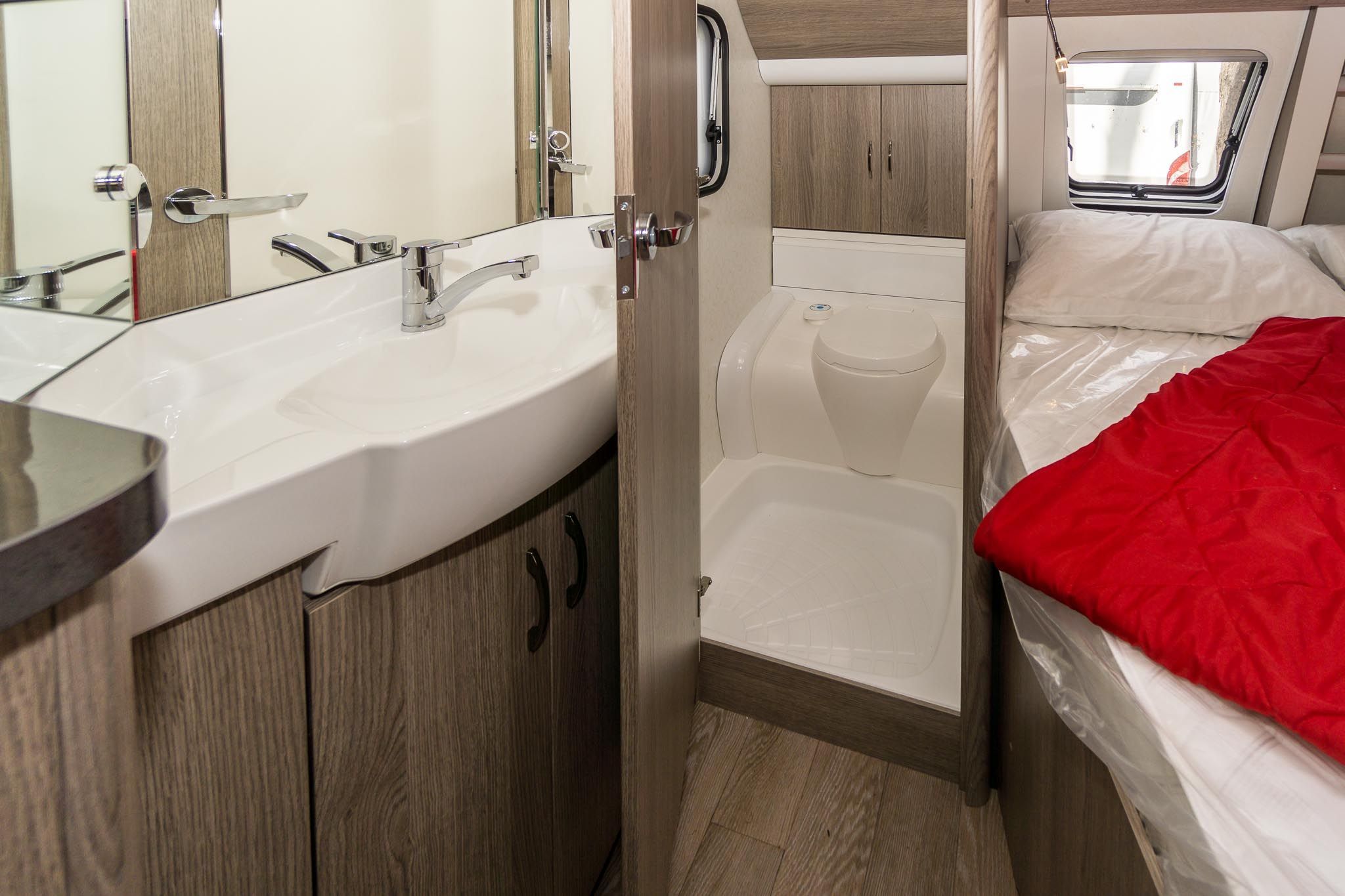 Es gibt ein französisches Bett. Für Kinder bzw. Jugendliche sind Etagenbetten vorhanden, die bis 160cm und 65kg bequem genutzt werden können und es gibt eine Sitzgruppe die einfach zum Bett umgebaut wird. In den Wohnwagen sind Toiletten vorhanden. Weitere Toiletten und die Duschen befinden sich separat im Sani-Haus.