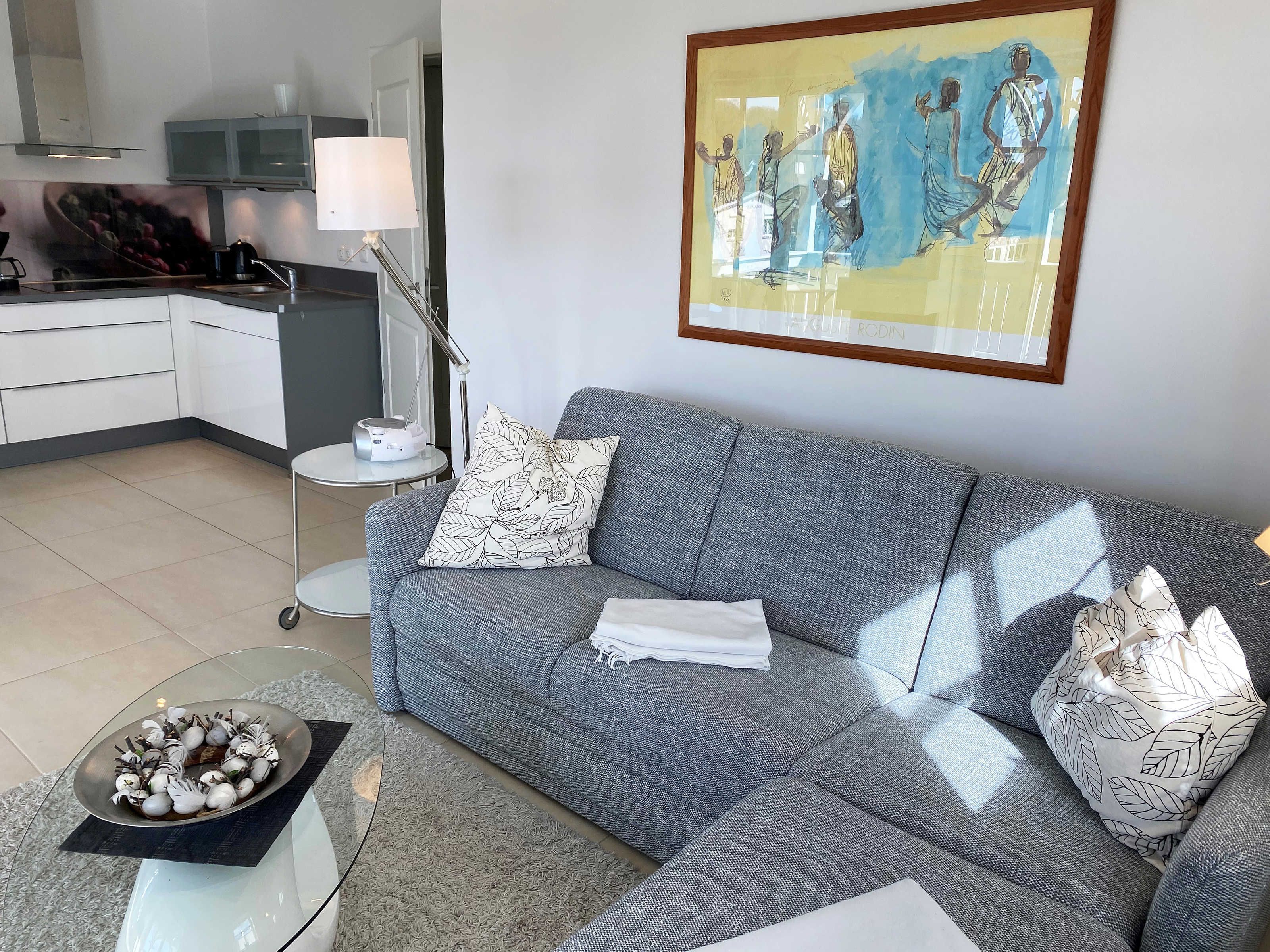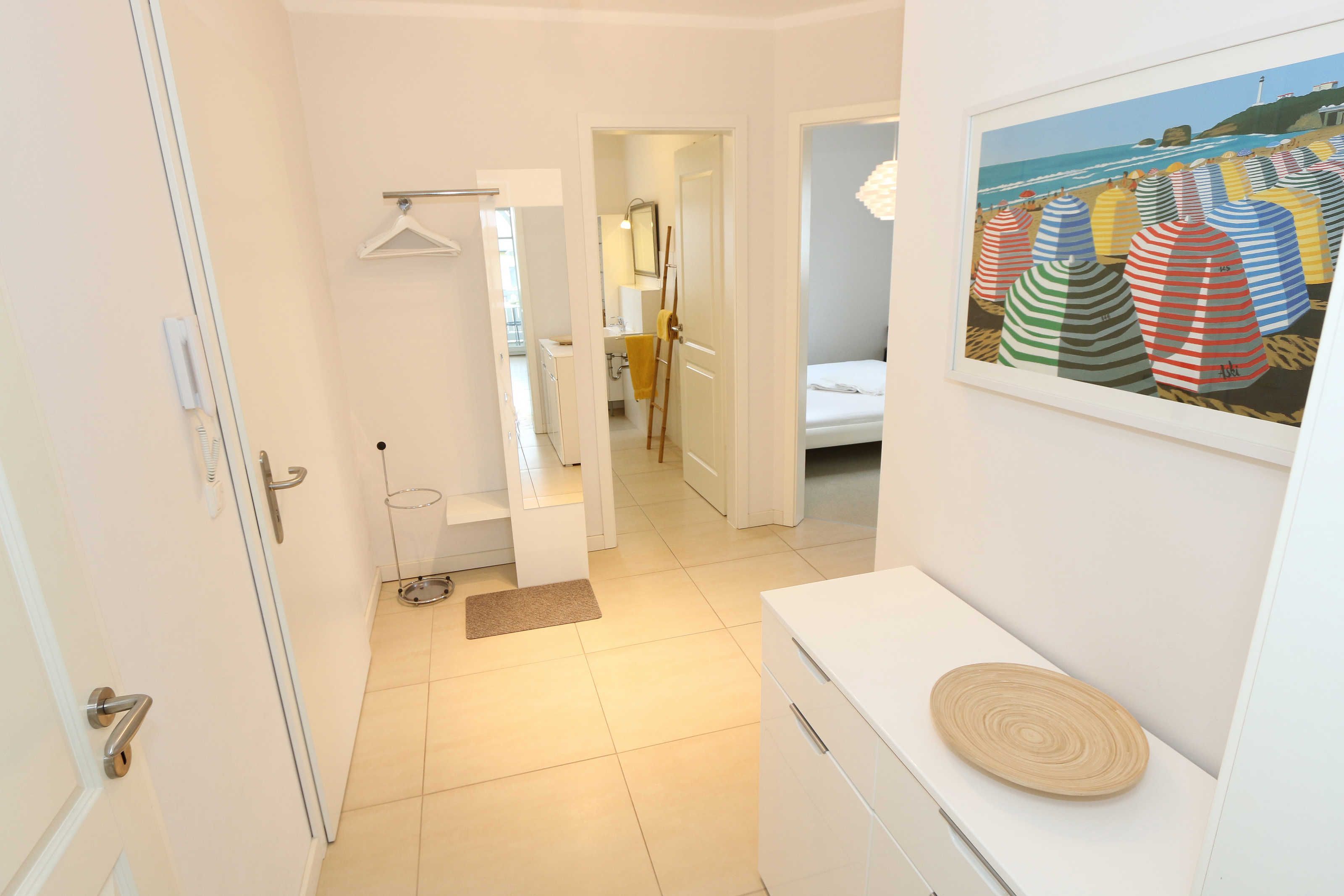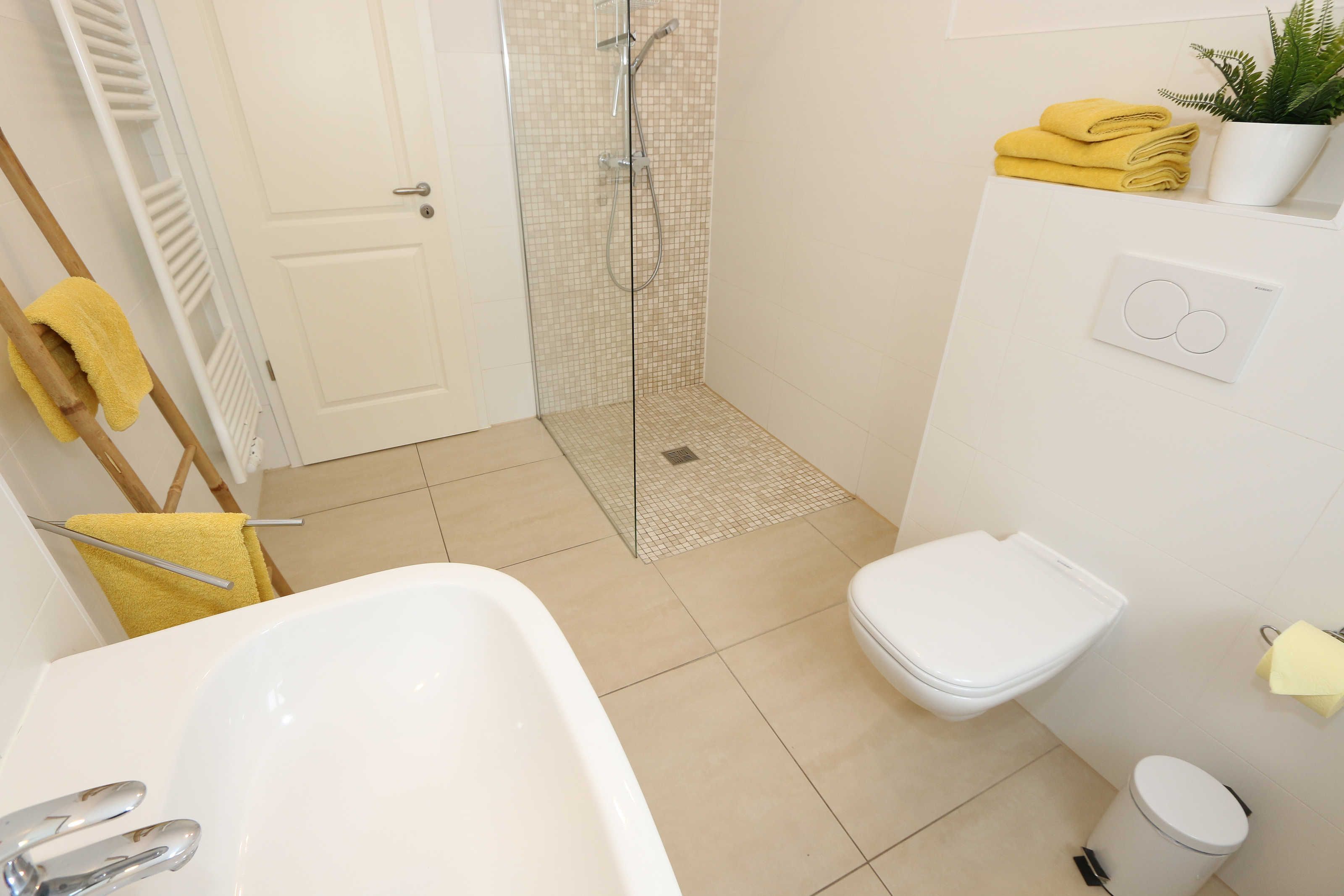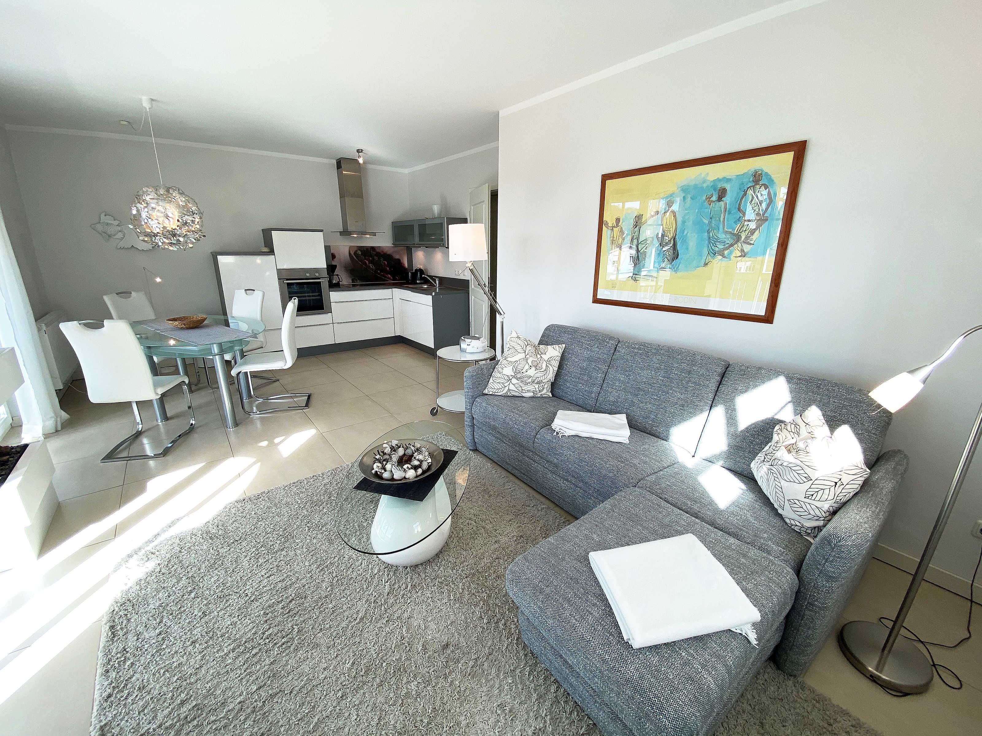 Die helle Nichtraucherwohnung mit Fliesenboden und Teppich in den Schlafzimmern ist geschmackvoll eingerichtet. Mit Ihren ca. 66qm bietet Sie ausreichend Platz für max. 2 bis 4 Personen. Die harmonisch integrierte Küchenzeile erlaubt mit einer Heißluft-Mikrowelle und Grill in Kombination, Ceran-Kochfeld, Backofen, Spülmaschine, Kühlschrank mit Gefrierfach, Wasserkocher, Toaster, Kaffeemaschine, Senseo Pad-Maschine, Kaffeeautomat und anderen praktischen Helfern die weitreichende Umsetzung Ihrer kulinarischen Wünsche. Angrenzend befindet sich ein bequemer Esstisch. Die beiden Schlafzimmer sind mit bequemen Betten (je 1,80 m x 2,00 m), verstellbare Lattenroste und reichlich Schrankfläche ausgestattet. Der Wohnbereich wird mit einer Couch, ein Sessel, ein Couchtisch, Leselampe sowie einem Regal und TV-Board abgerundet. Ein Smart-TV im Wohnzimmer und in einem der Schlafzimmer sowie DVD-Player, Musikanlage mit DAB-Radio, Gesellschaftsspiele und eine kleine Bücherauswahl sorgen neben einem kostenlosen WLAN-Anschluss für Ihre Unterhaltung. Ein Elektrokamin im Wohnbereich lädt bei etwas schlechterem Wetter zum Verweilen ein und sorgt für die perfekte Illusion eines realen Feuers. Das großzügige Bad mit Fußbodenheizung, WC, Fön, Kosmetikspiegel, Badhocker, Waschplatz und ebenerdiger Regendusche verspricht den erholsamen Wellness-Effekt. In dem vorhandenen Abstellraum befindet sich eine Waschmaschine zur freien Nutzung. Zusätzlich befinden sich hier Reinigungsutensilien, ein Bügelbrett sowie ein Bügeleisen. Für unsere kleinen Gäste steht ein Hochstuhl inklusive zur Verfügung. Ihre Fahrräder und Strandutensilien lassen sich in einem abschließbaren Schuppen neben Ihrem PKW-Stellplatz (Nr.03) unterbringen. Haustiere sind nicht erlaubt. Die Erstausstattung eines Wäschepaketes (komplette Bettwäsche, 1 Duschhandtuch, 1 kleines Handtuch) können Sie bis 14 Tage vor Anreise gegen einen Aufpreis dazu buchen oder durch eigene ergänzen. Ab 2 gebuchten Paketen erhalten Sie einmalig 1 Geschirrhandtuch und 1 Duschvorleger dazu.