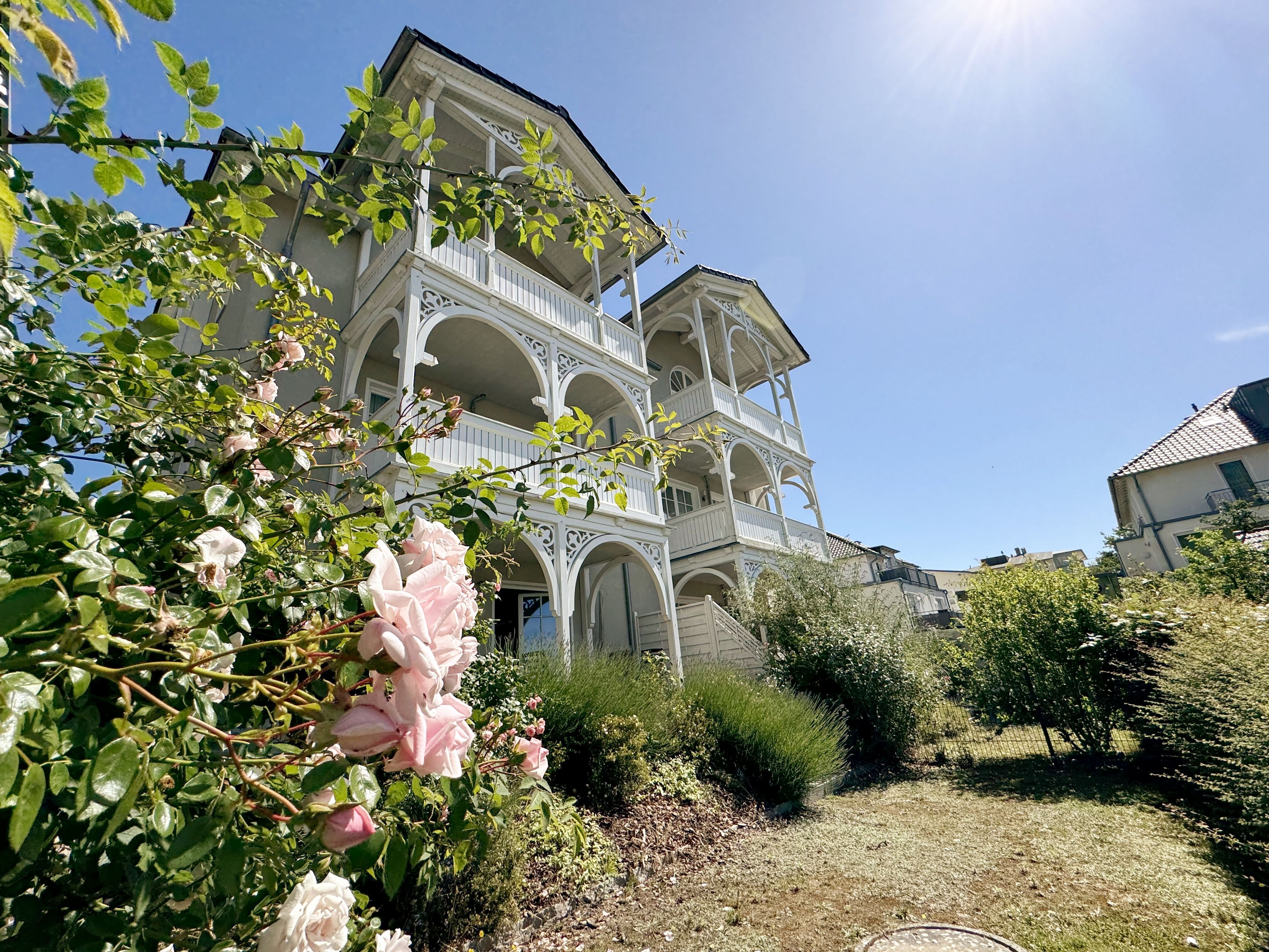 Die Villa Wilhelmine, ein ruhiges Haus mit sechs Wohnungen, liegt sehr zentral in einer Seitenstraße der bekannten Wilhelmstraße und ist in Anlehnung an deren prächtige Villen ebenfalls im Stil der Bäderarchitektur entstanden. Von hier sind die berühmte Selliner Seebrücke und der feinsandige Strand in wenigen Minuten zu Fuß erreichbar. Das im weitläufigen Seepark am Selliner See gelegene Freizeitbad und ein Fahrradverleih befinden sich in etwa 500 m Entfernung. Die liebevoll eingerichtete, 66 qm große Wohnung Kreidezimmer mit zwei Schlafzimmern liegt im 1. Stock des Gebäudes zur Gartenseite. Sie hat einen großzügigen Süd-Balkon, der im Sommer bequemen Sitzplatz zu Ihren Mahlzeiten bietet. In der kühleren Jahreszeit sorgt ein eleganter Elektrokamin für Gemütlichkeit im modern eingerichteten Wohnzimmer.