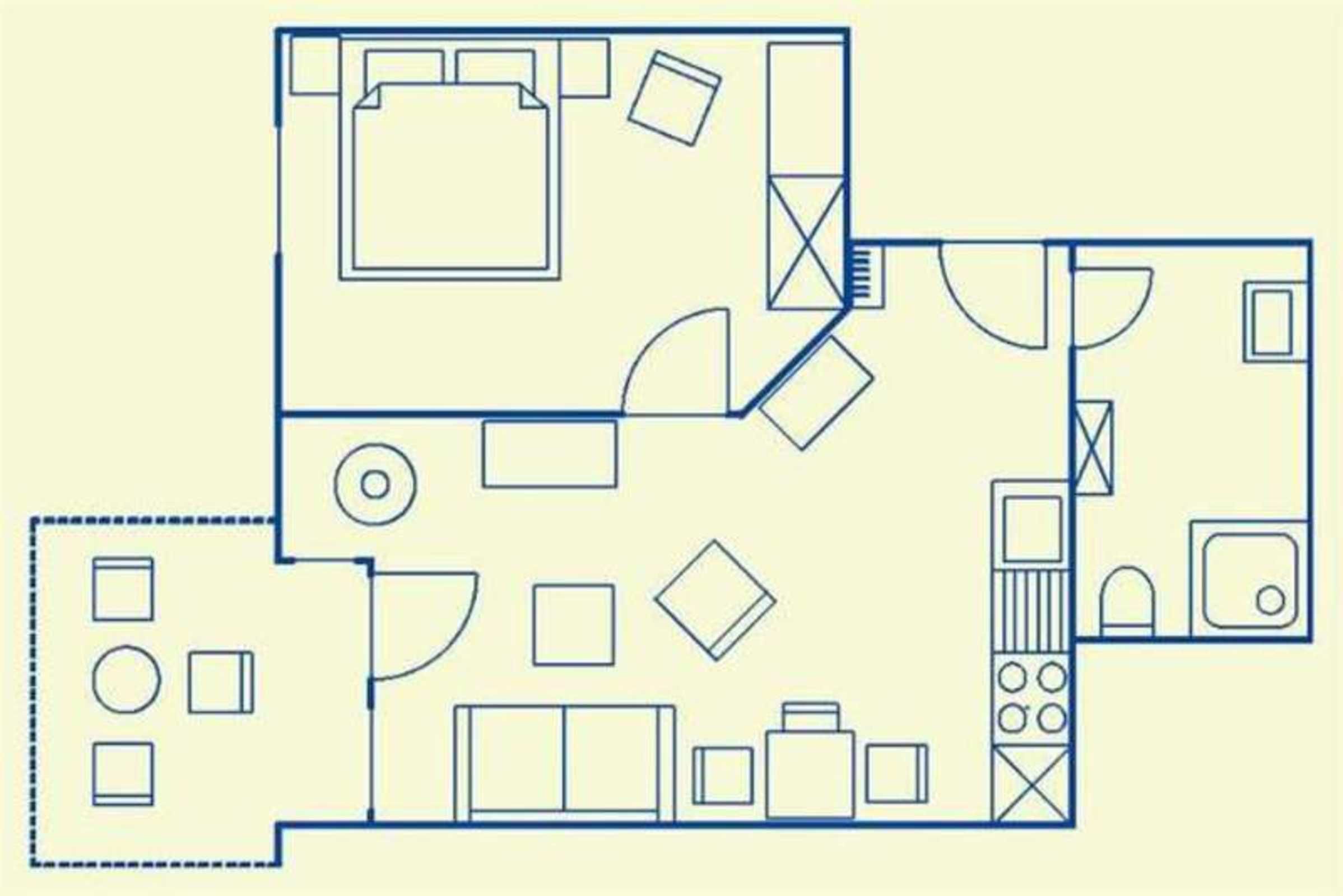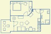 1 Schlafraum, 1 Wohnraum, 1 Küchenzeile, 1 Badezimmer mit Dusche