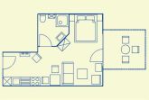 1 komb. Wohn-/Schlafraum, 1 Küchenzeile, 1 Badezimmer mit Dusche
