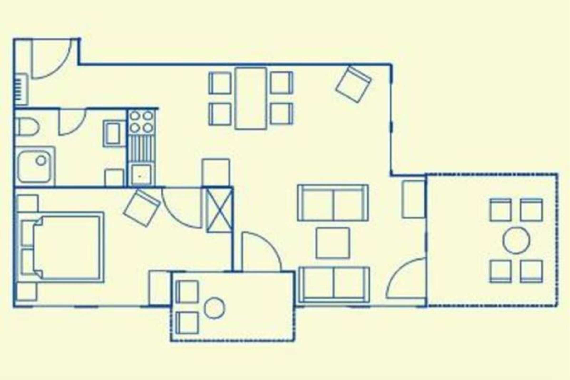 1 Schlafraum, 1 Wohnraum, 1 Diele/Vorraum, 1 Küchenzeile, 1 Badezimmer mit Dusche