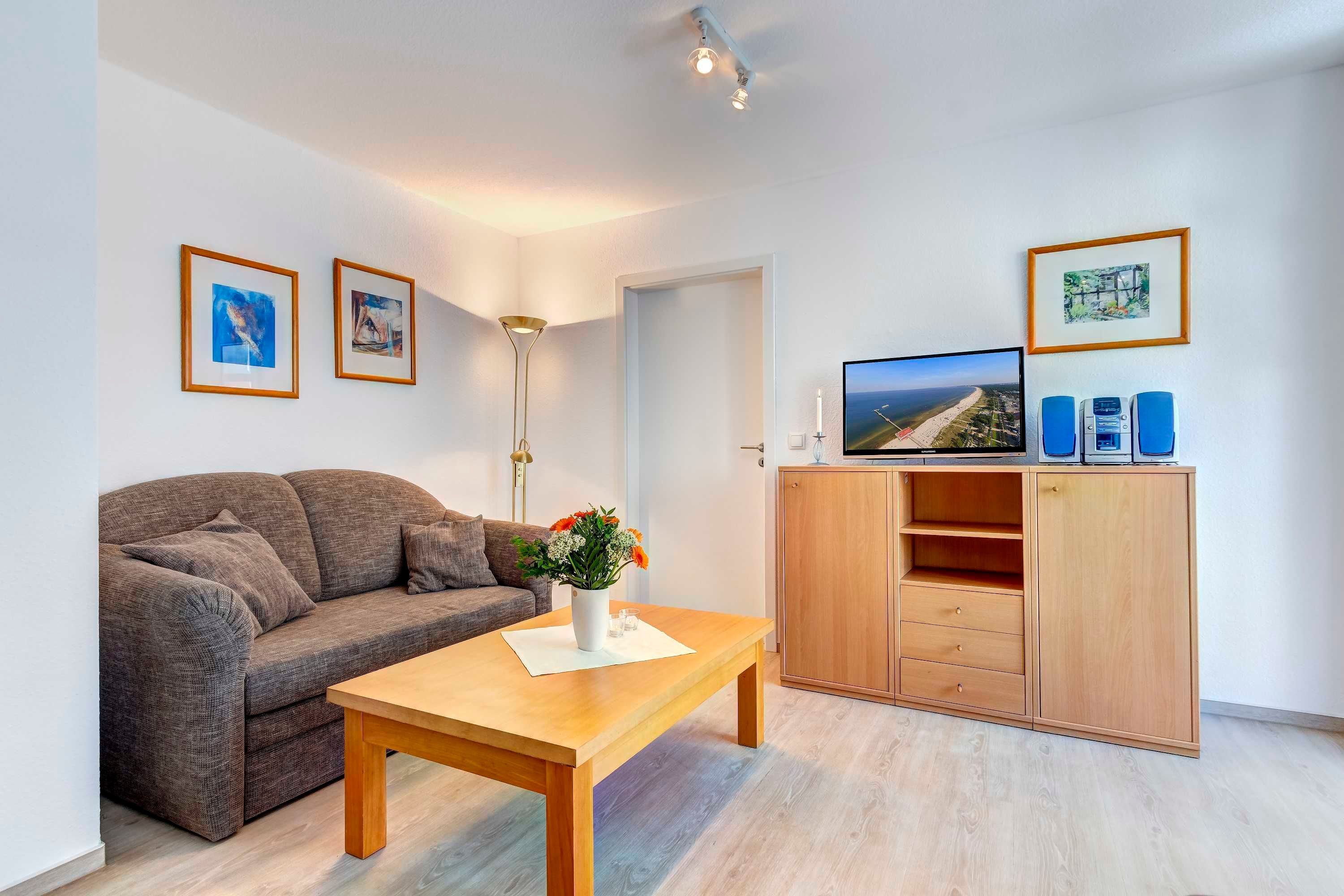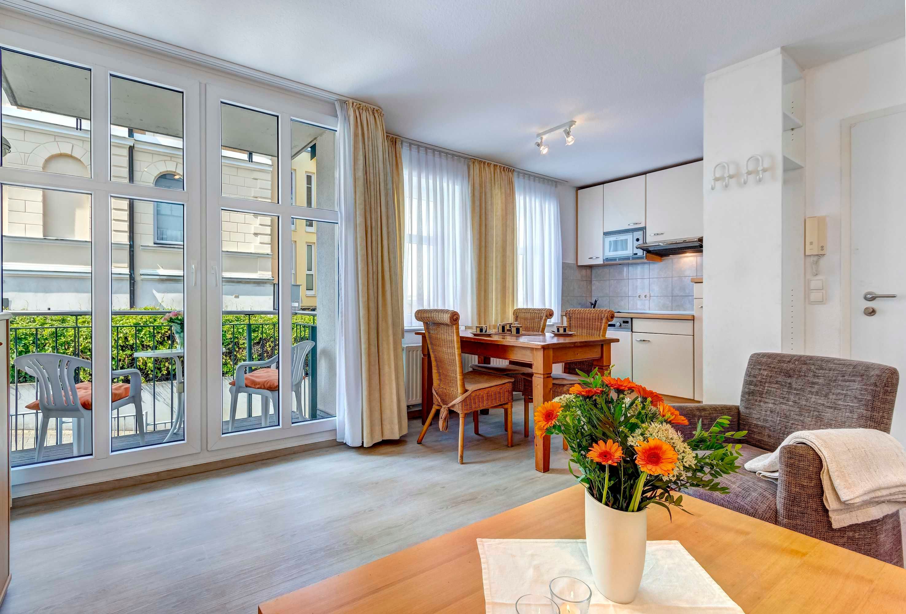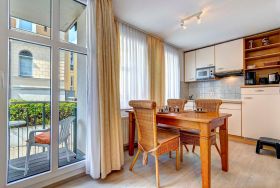 Schönes geräumiges 2-Zimmer-Appartement mit guter, moderner Ausstattung. Separates Schlafzimmer (mit Fernseher), Wohnzimmer mit Küchenzeile und Essplatz, Duschbad, Balkon zur Südseite mit Sonne bis abends. Die Wohnung verfügt über einen Tiefgaragen-Pkw-Stellplatz. In der Garage können auch Fahrräder und ähnliches untergestellt werden. Von der Villa Aquamarina aus können Sie das Ortszentrum und die bekannte Ahlbecker Seebrücke in ca. 3 Minuten zu Fuß erreichen. Zum Strand sind es 50 m. Die Wohnungen der Villa Aquamarina verfügen alle über passwortgeschütztes WLAN (gerätegebunden, Euro 1,50 pro Tag und pro Gerät).