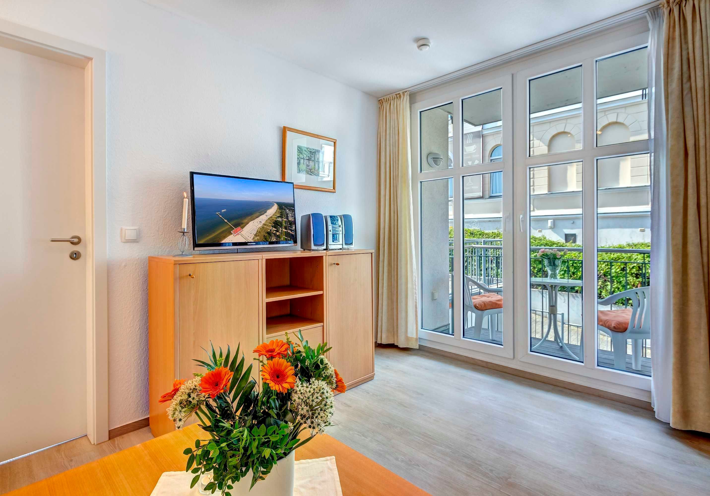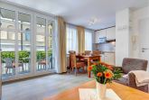 Direkt an der Strandpromenade mit SÜDBALKON und FAHRSTUHL im Haus! Schönes geräumiges 2-Zimmer-Apartment (ca. 37 m²) mit moderner guter Ausstattung. Separates Schlafzimmer (mit Fernseher), Wohnzimmer mit Küchenzeile und Essplatz, Duschbad, Balkon zur Südseite mit Sonne bis abends. Die Wohnung verfügt über einen Tiefgaragen-Pkw-Stellplatz. In der Garage können auch Fahrräder und ähnliches untergestellt werden. Von der Villa Aquamarina aus können Sie das Ortszentrum und die bekannte Ahlbecker Seebrücke in ca. 3 Minuten zu Fuß erreichen. Zum Strand sind es 50 m.