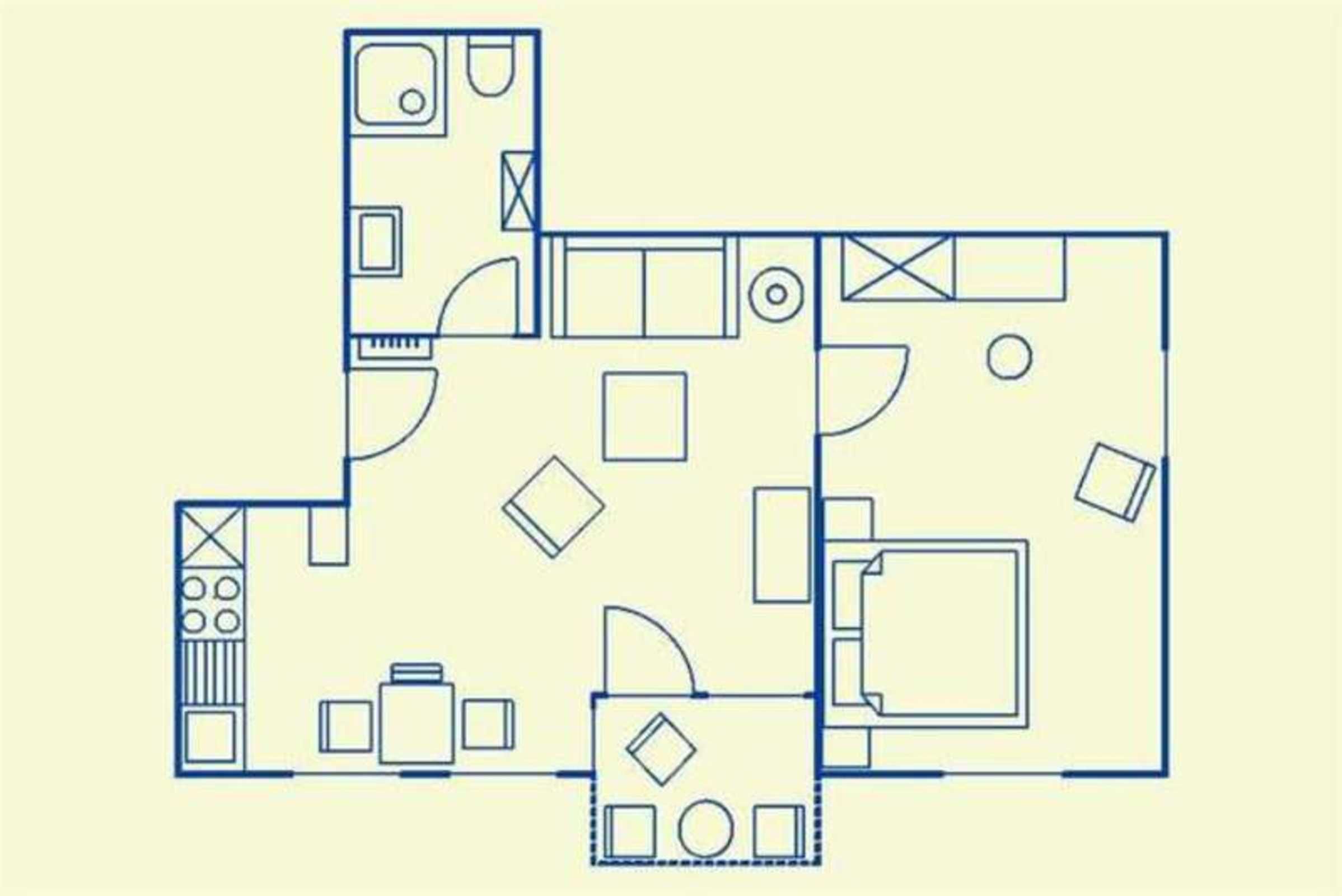 1 Schlafraum, 1 Wohnraum, 1 Küchenzeile, 1 Badezimmer mit Dusche