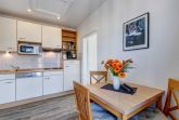 Hübsches 1-Zimmer-Appartement mit moderner guter Ausstattung. Kombinierter Wohn-/Schlafraum, separate Küche mit Essplatz, Duschbad, Dachterrasse nach Süden mit Sonne bis abends. Die Wohnung verfügt über einen Pkw-Stellplatz. Von der Villa Aquamarina sind es zum Ortszentrum und der Seebrücke ca. 3 Minuten zu Fuß. Zum Strand sind es 50 m. Die Wohnungen der Villa Aquamarina verfügen alle über passwortgeschütztes WLAN (gerätegebunden, Euro 1,50 pro Tag und pro Gerät).