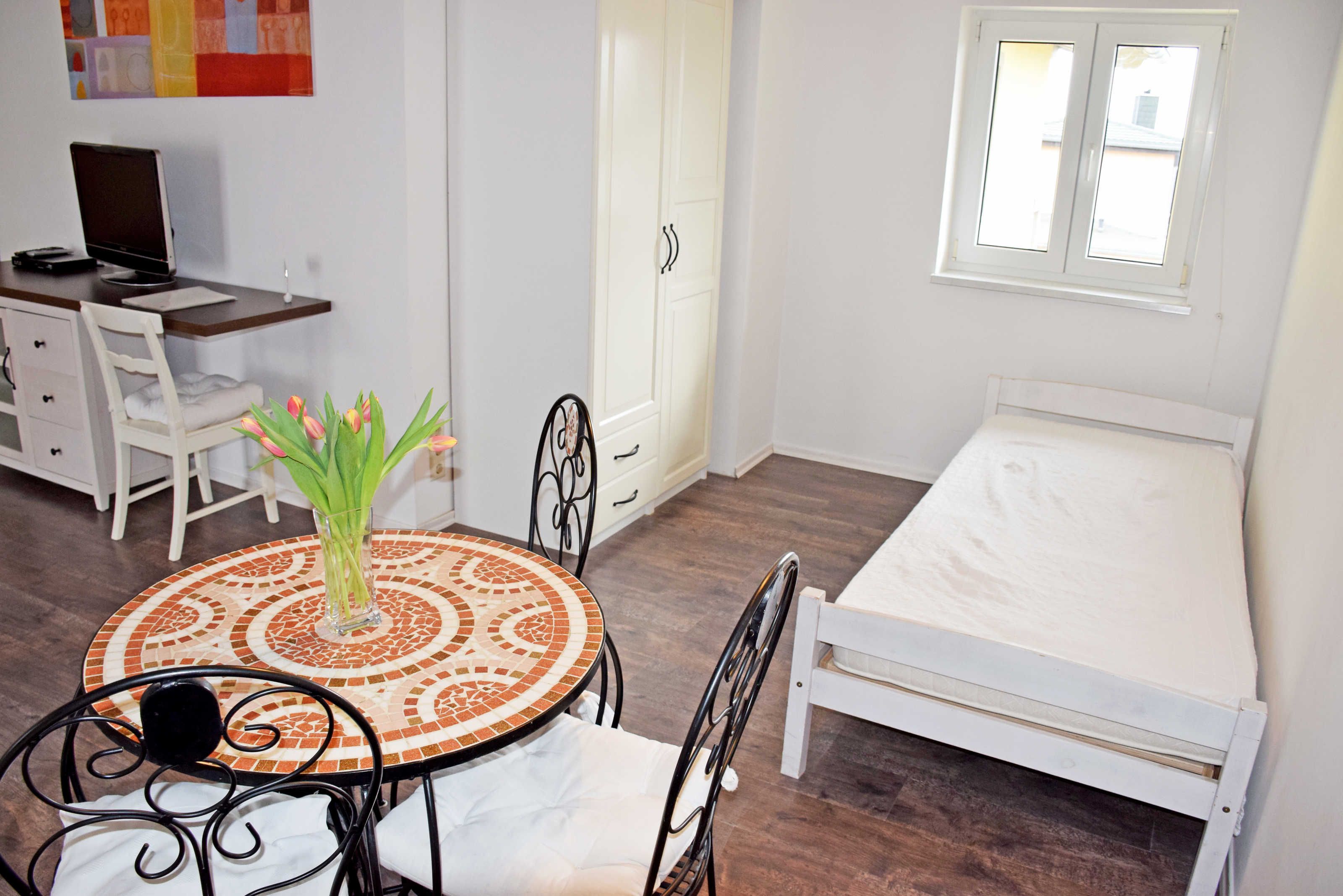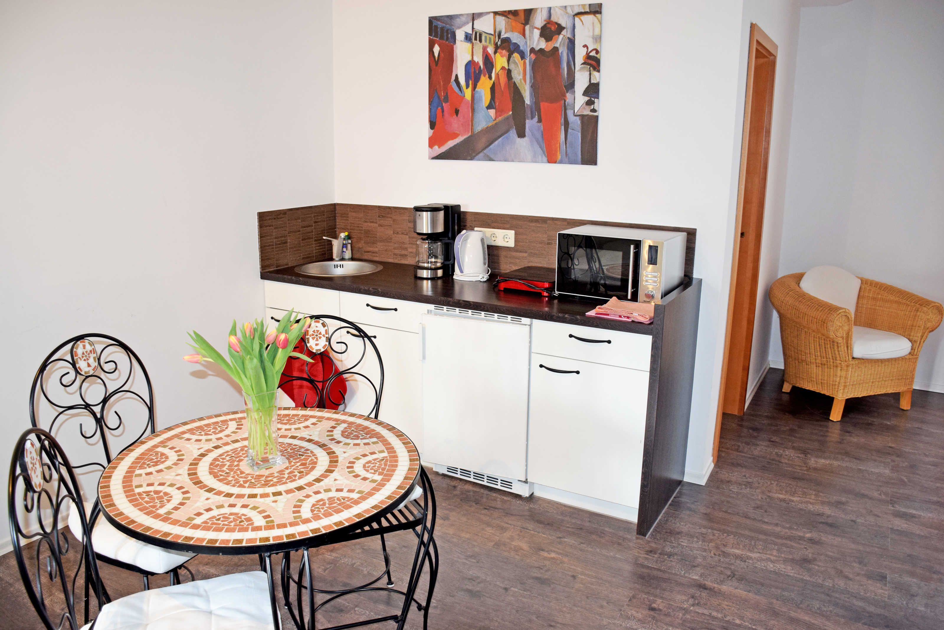 Es erwarten Sie sechs geräumige und stilvoll eingerichtete Appartements für je zwei Personen (Apartment 6 für 3 Personen).