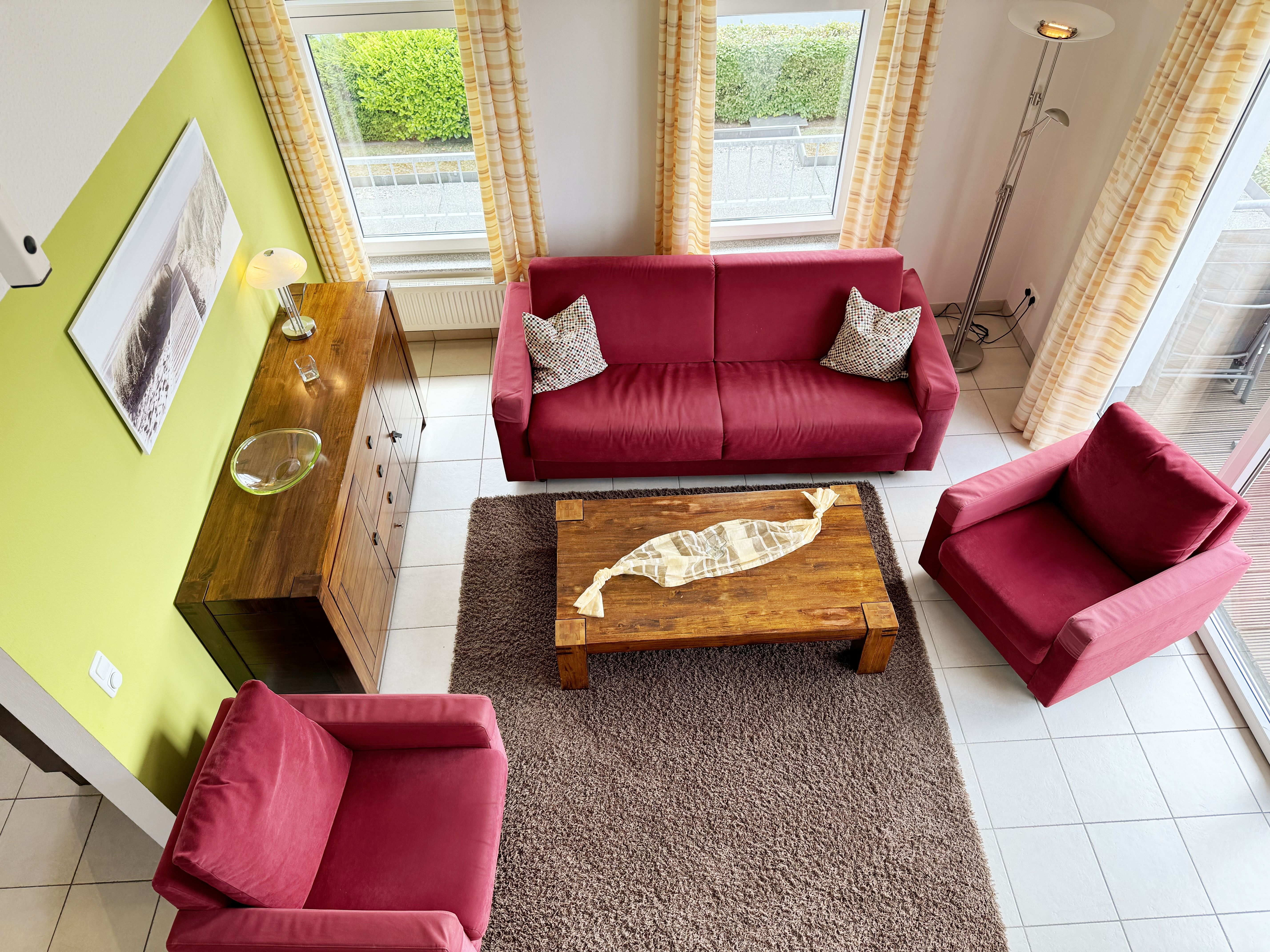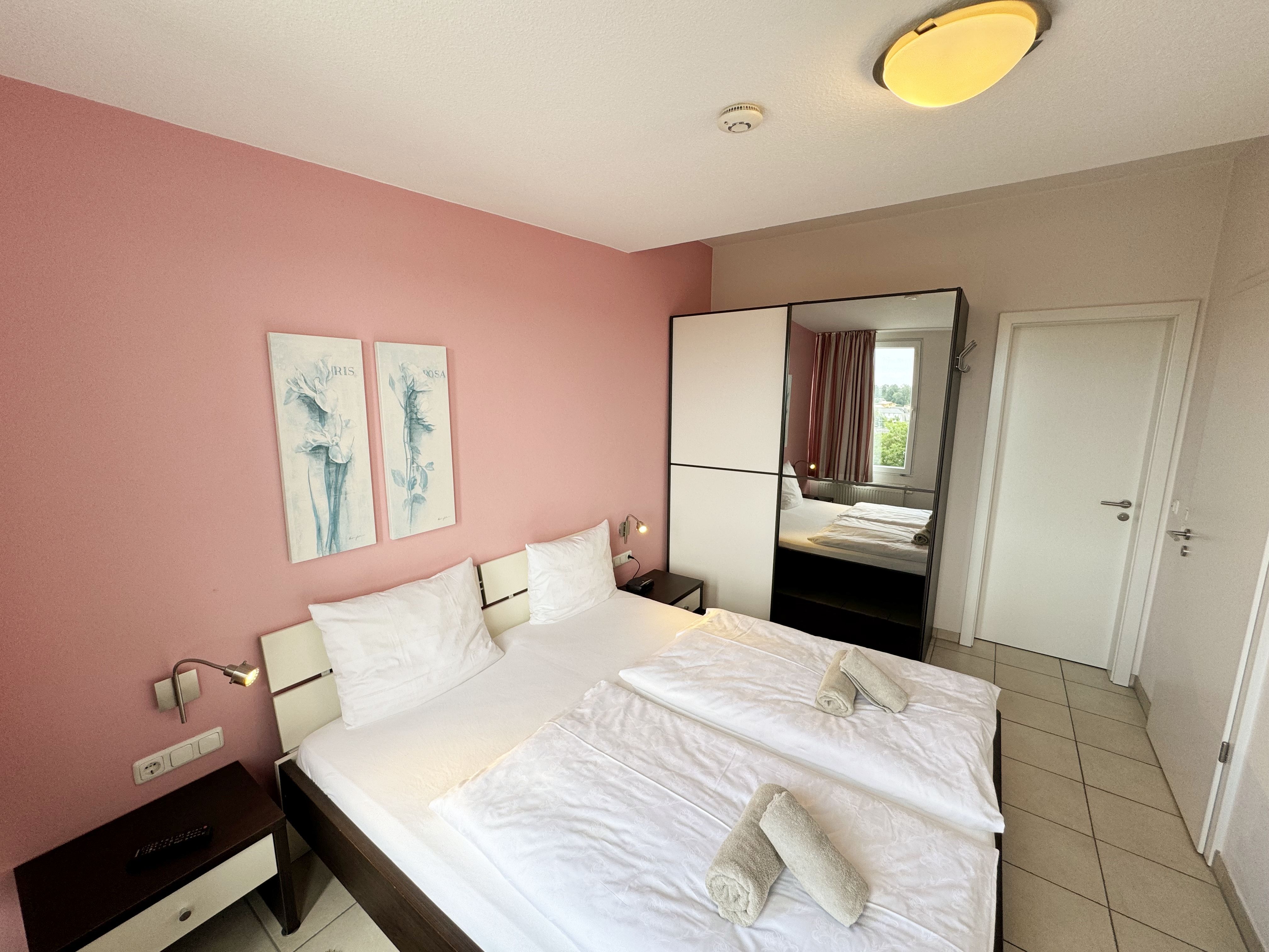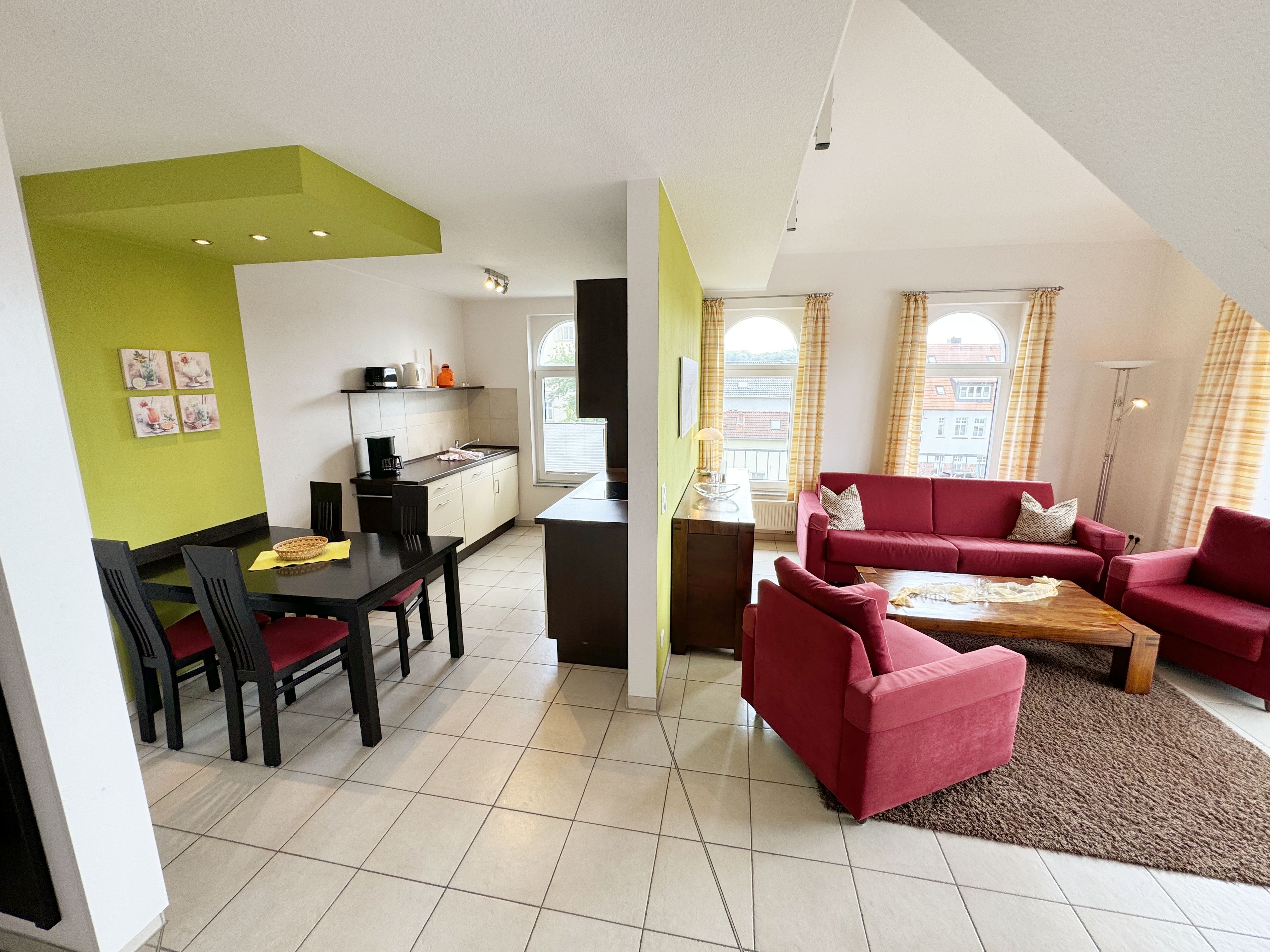 Die großzügige und lichtdurchflutete Maisonette / Ferienwohnung Nr. 10 bietet Ihnen ausreichend Platz für max. 4 Erwachsene. Die Wohnung befindet sich im Obergeschoss und ist bequem per Fahrstuhl von der Tiefgarage aus zu erreichen. Die Wohnung ist als Nichtraucherwohnung deklariert und erstreckt sich mit Ihren 72 qm über 2 Etagen. Der sehr gemütliche eingerichtete Wohnbereich ist der Dreh- und Angelpunkt der Wohnung. Hier befindet Sie eine hochwertige Couch, 2 Sessel, Couchtisch, eine Leselampe sowie einem Smart-TV (32 Zoll) mit DVD-Player/Heimkino und Internetanschluss per WLAN (inklusive). Angrenzend an den Wohnbereich finden Sie eine moderne und komplett ausgestattete Küchenzeile mit Geschirrspüler, Mikrowelle, Kühlschrank mit Eisfach, Ceranfeld, Backofen, Kaffeemaschine, Toaster, Wasserkocher, diversen Küchenutensilien und einen Holzesstisch mit 5 Stühlen. Das 1. Schlafzimmer finden Sie auf der gleichen Ebene wie den Wohn- & Essbereich. Das Schlafzimmer verfügt über ein Doppelbett (1,80m x 2,00m) mit verstellbaren Lattenrosten, Nachtischkonsolen, Verdunklungsmöglichkeit und großem Kleiderschrank mit Spiegel. In dem 1. Bad finden Sie eine Dusche, WC, Waschtisch, Kosmetikspiegel, Fön, Fußbodenheizung und einen Handtuchtrockner für Ihren alltäglichen Gebrauch, wieder. Um Ihren Urlaubstag in Ruhe ausklingen zu lassen, erreichen Sie vom Wohnbereich den begehbaren Süd-Westbalkon mit herrlichem Blick auf das Ostseebad Sellin. Durch die im Wohnbereich vorhandene Treppe gelangen Sie in das 2. Schlafzimmer, wo Sie ein Doppelbett (1,80m x 2,00m) mit verstellbaren Lattenrosten, Nachtischkonsolen, Verdunklungsmöglichkeit, Smart-TV und großem Kleiderschrank mit Spiegel wiederfinden. Angrenzend befindet sich das 2. Bad mit Dusche, WC, Waschtisch, Handtuchtrockner und einer Fußbodenheizung. Im Gemeinschafskeller können Sie gegen einen Aufpreis die gemeinschaftliche Waschmaschine und den Trockner nutzen. Die Wertmarken können Sie auf Nachfrage während Ihres Urlaubes erwerben. Die Erstausstattung eines Wäschepaketes (komplette Bettwäsche, 1 Duschhandtuch, 1 kleines Handtuch) können Sie bis 14 Tage vor Anreise gegen einen Aufpreis dazu buchen oder durch eigene ergänzen. Ab 2 gebuchten Paketen erhalten Sie einmalig 1 Geschirrhandtuch und 1 Duschvorleger hinzu. Ein eigener Pkw-Stellplatz Nr. 10 und ein Fahrradraum gehören zur Wohnung und befinden sich in der hauseigenen Tiefgarage (Einfahrtshöhe 2,10 m). Haustiere sind in der Wohnung nicht erlaubt.
