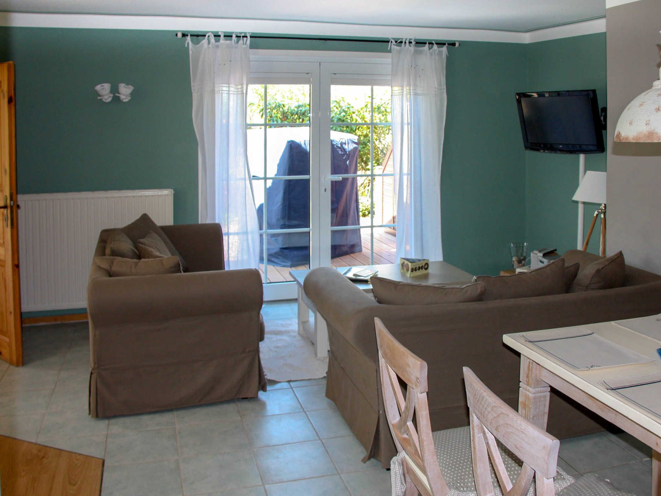 • Terrasse mit Gartenmöbeln und Strandkorb