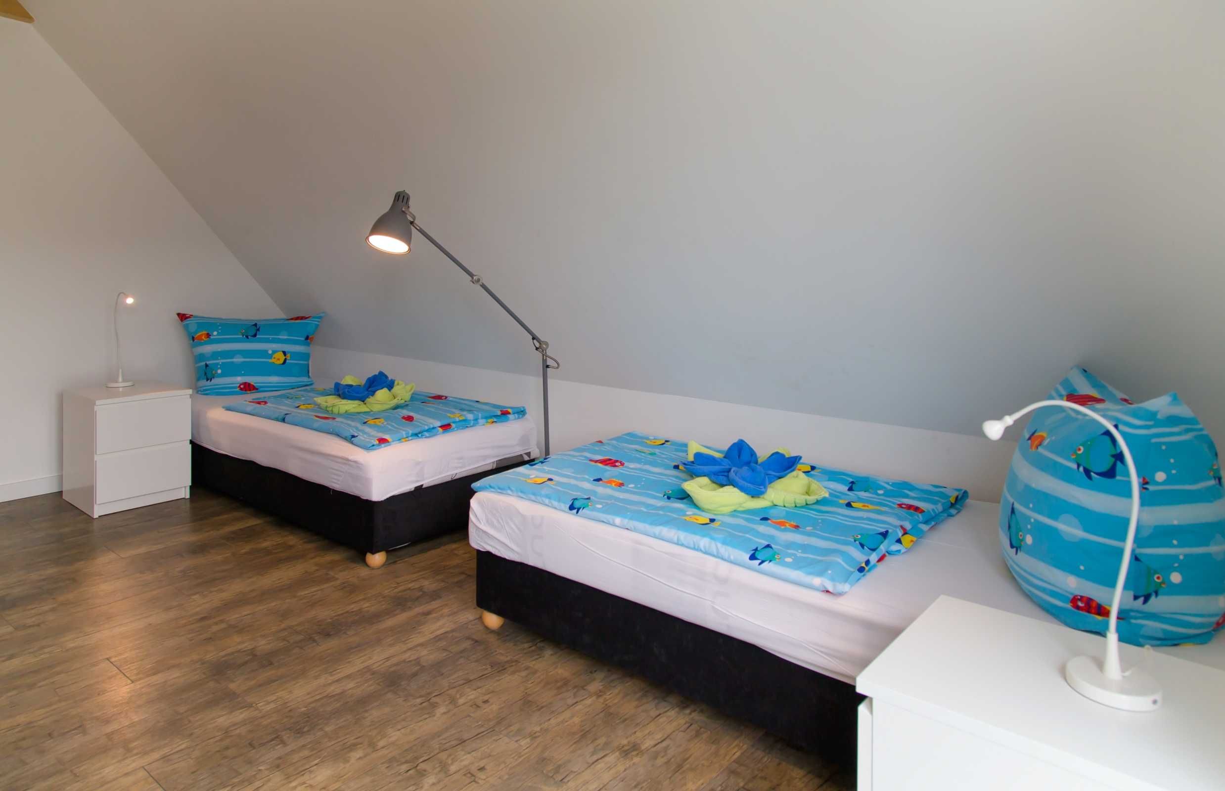 • 1 Schlafraum mit 2 Einzelliegen (je ca. 0,90 m x 2,00 m) und Flachbild-TV (ca. 100cm Bilddiagonale)