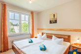 Ihnen stehen neben einem Schlafzimmer mit einem bequemen Doppelbett und vielen Verstaumöglichkeiten für Ihre privaten Gegenstände, ein zweites Schlafzimmer mit einem gemütlichen Schlafsofa (Liegefläche 1,40 m x 2,00 m), ein geschmackvoll eingerichtetes Wohnzimmer mit Esstisch, sowie ein separates Gäste-WC zur Verfügung.