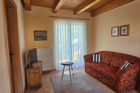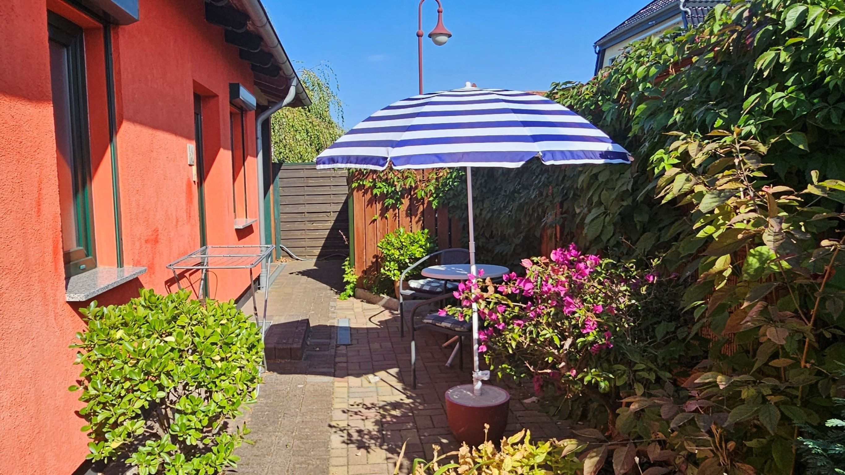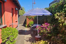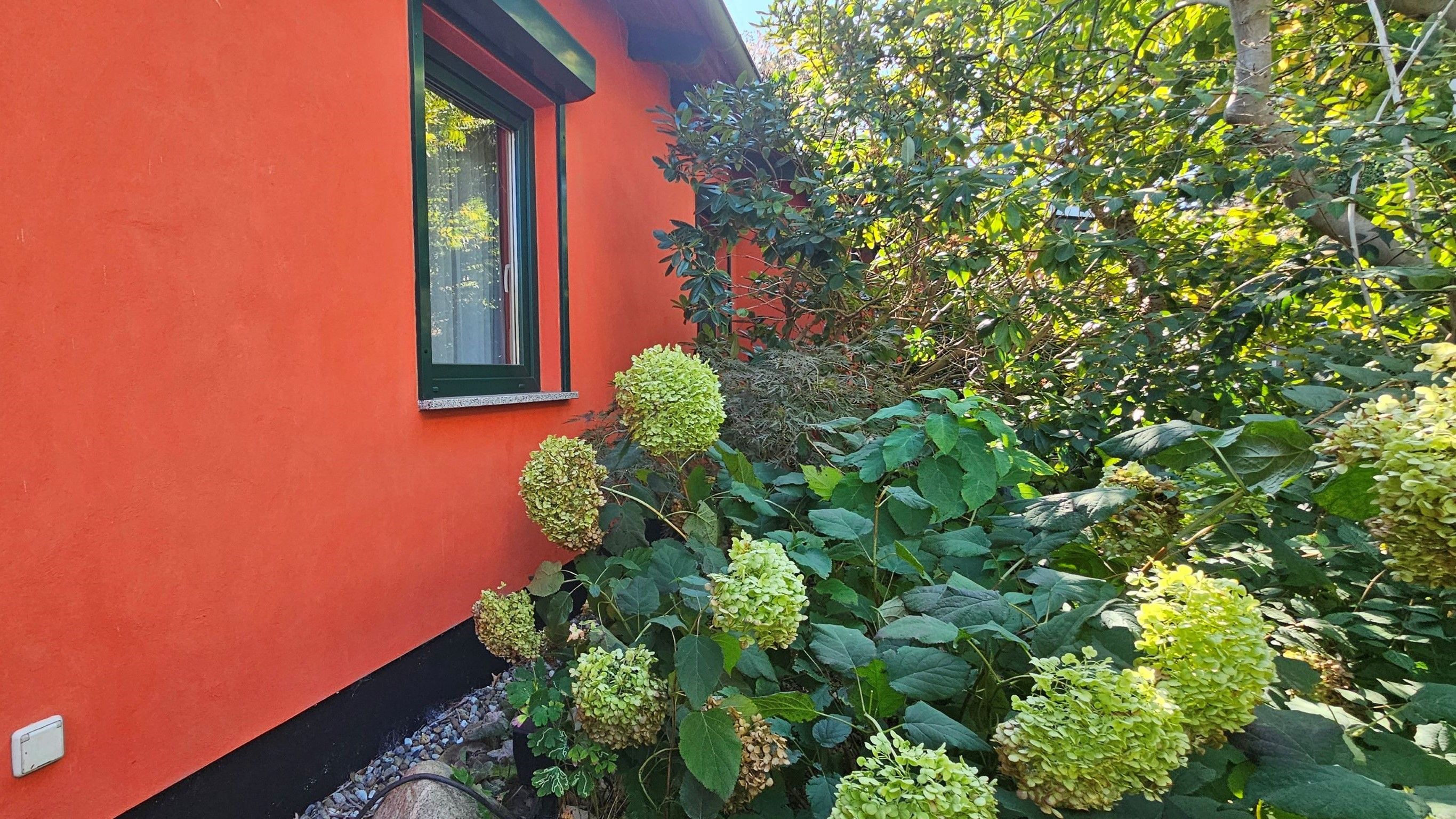 Der separate Ferienbungalow liegt auf dem Grundstück der Vermieter und ist umgeben von einem gepflegten Garten. Auf ca. 30 qm finden Sie einen Wohnraum mit offener Küchenzeile, Essplatz, Radio, Fernseher und eine Couch. Vom Wohnzimmer aus erreichen Sie die Terrasse in Südwest Lage mit Strandkorb und Sitzmöbeln. Das Schlafzimmer ist mit einem Doppelbett und Kleiderschrank ausgestattet. Das Badezimmer verfügt über eine Dusche/WC.