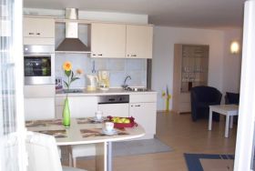 Das ca. 44 m² große 2-Raum-Appartement besteht aus einem Wohn-Schlafraum mit einer modernen Schlafcouch und einer Küchenzeile mit Backofen und Geschirrspüler, sowie einem sep. Schlafzimmer mit Doppelbett. Ihnen steht eine Terrasse und ein großer Garten zur Verfügung.
