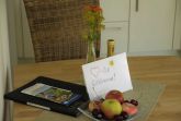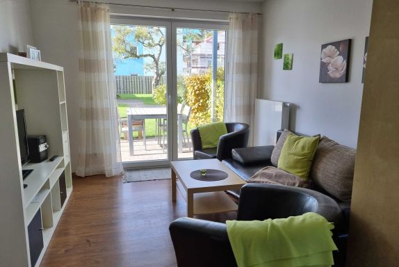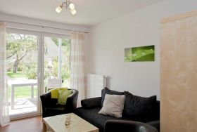 Die 49qm große Nichtraucher-Ferienwohnung ist für zwei Personen geeignet. Die Wohnung ist modern und stilvoll nach dem Element Erde in gehobener Qualität eingerichtet und verfügt über ein offenen Wohn-/Essbereich mit komplett ausgestatteter Küche (Herd/Backofen, Spülmaschine, Kühlschrank, Gefrierschrank, Kaffeemaschine, Toaster, Wasserkocher, ausreichend Geschirr) und gemütlichem Essplatz, separatem Schlafzimmer mit Doppelbett, Bad mit ebenerdiger Dusche/WC, großem Spiegel, Fön. Die Bettwäsche, Handtücher, Badematte und Geschirrtücher sind für den Aufenthalt inklusive. Die Wohnung verfügt über Außenrollläden und hat eine Terrasse mit Gartenmöbeln zum Verweilen. Im Garten erwartet sie ein Bereich mit festem Grill, Gartenmöbeln, Sandkasten mit Spielzeugen zum gemütlichen Beisammensein und Erholen. Ein abschließbarer Fahrradschuppen mit Steckdosen zum Aufladen der E-Bike steht zur Verfügung. Für jede Wohnung ist ein ausgeschilderter PKW-Parkplatz vorhanden.
