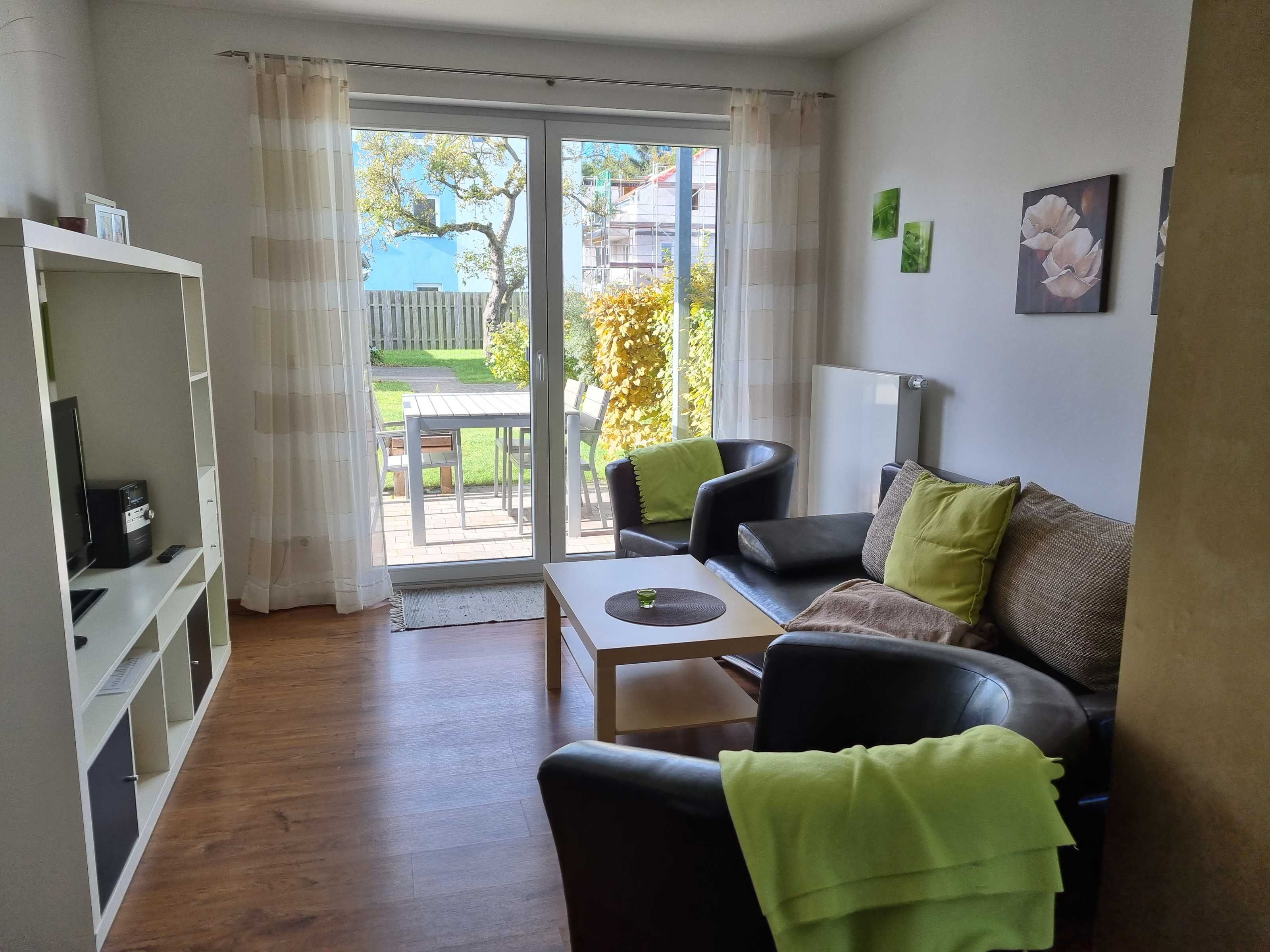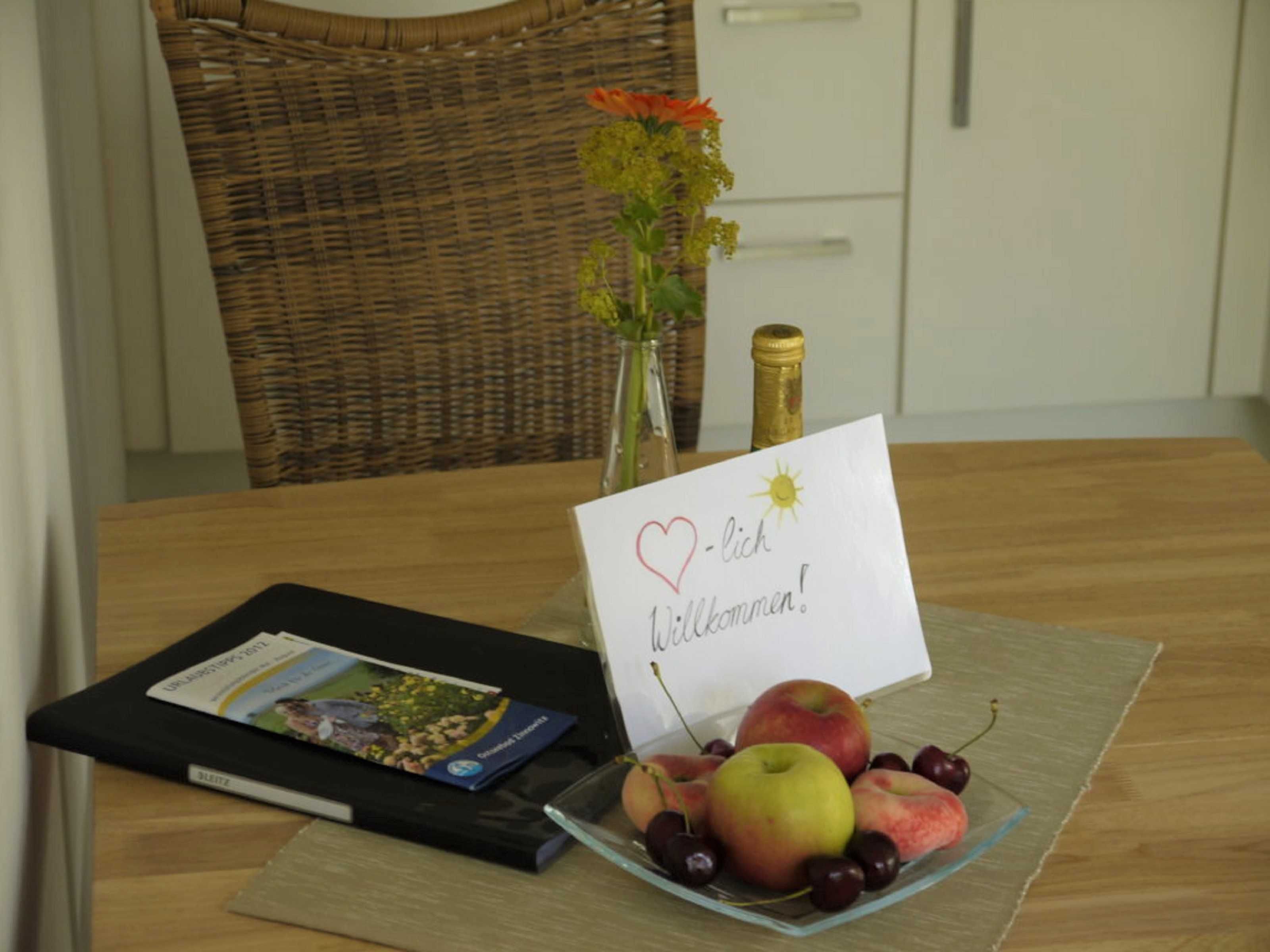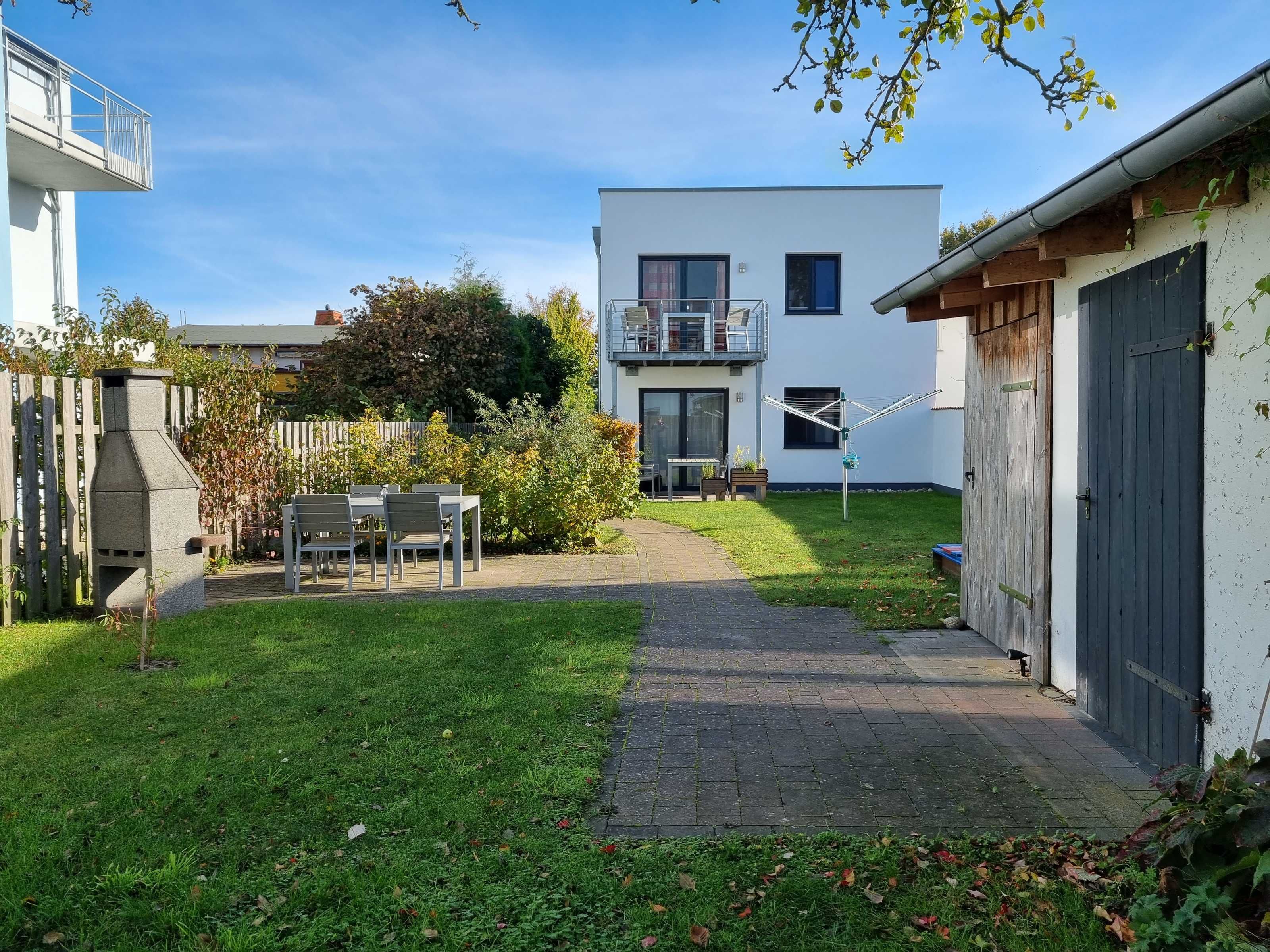 Die Bettwäsche, Handtücher, Badematte und Geschirrtücher sind für den Aufenthalt inklusive. Ein Kinderbett und Hochstuhl können kostenlos zur Verfügung gestellt werden nach Vereinbarung bzw., Verfügbarkeit. Die Erdgeschosswohnungen sind mit Außenrollläden ausgestattet und verfügen über eine Terrasse mit Gartenmöbeln, die Obergeschosswohnungen haben einen Balkon mit Gartenmöbeln zum Verweilen. Im Garten erwartet sie ein Bereich mit festem Grill, Gartenmöbeln, Sandkasten mit Spielzeugen für unsere kleinen und großen Gäste zum gemütlichen Beisammensitzen und Erholen. Ein abschließbarer Fahrradschuppen mit Steckdosen zum Aufladen der E-Bike steht zur Verfügung. Für jede Wohnung ist ein ausgeschilderter PKW-Parkplatz vorhanden.