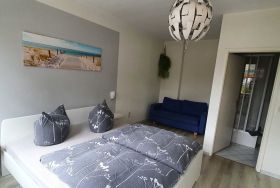 Die Ferienwohnung 1 (2022 komplett neu renoviert und eingerichtet) liegt im Erdgeschoss (3 Stufen) und ist ca. 40 qm groß. Sie hat Platz für maximal 2 Erwachsene und 1 Kind bis 16 J. und wurde modern und komfortabel eingerichtet. Ein WLAN - Anschluss steht zur Verfügung.