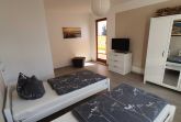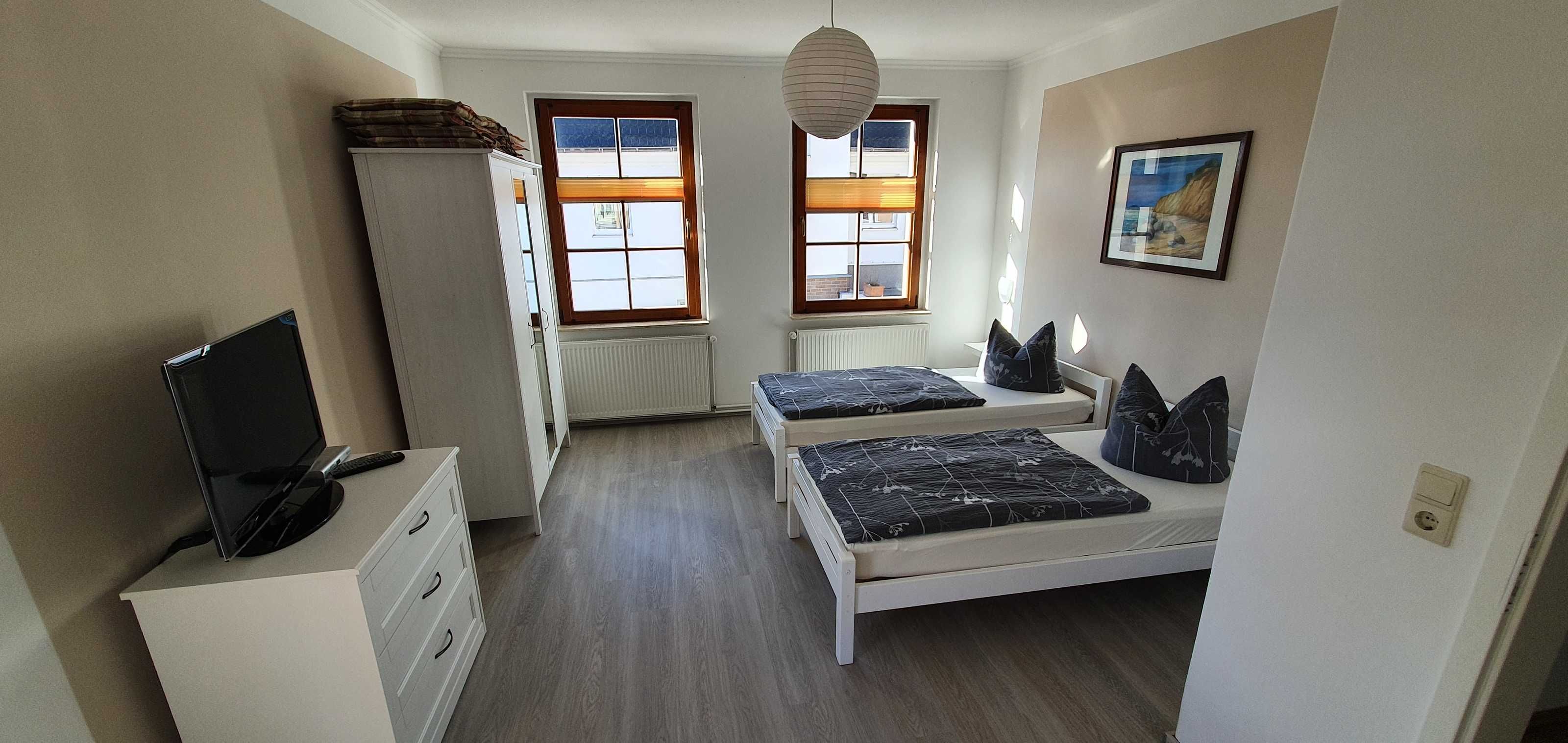 Im ersten Schlafzimmer befinden sich ein bequemes Doppelbett mit Nachttischen und Leselampe, ein großer Kleiderschrank sowie eine bequeme Sitzcouch mit Tisch sowie ein modernes Flachbild-TV-Gerät. Ein kleines Kinderreisebett kann auf Wunsch kostenlos bereit gestellt werden. Im zweiten Schlafzimmer stehen zwei Einzellbetten mit Nachttischen und Leselampe. Bei Ihrer Anreise liegen frische Handtücher bereit und die Betten sind selbstverständlich bereits mit Bettwäsche bezogen. Das moderne Bad ist mit Dusche, WC und Waschtisch ausgestattet. Zum diesem Appartement gehört auch ein schöner Balkon mit Gartenmöbeln.