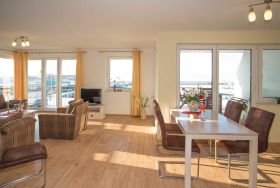 Die Ferienwohnung Rügen in Wiek liegt in der ersten Reihe mit direktem Blick auf den Wieker Hafen, den Wieker Bodden bis zur Insel Hiddensee.