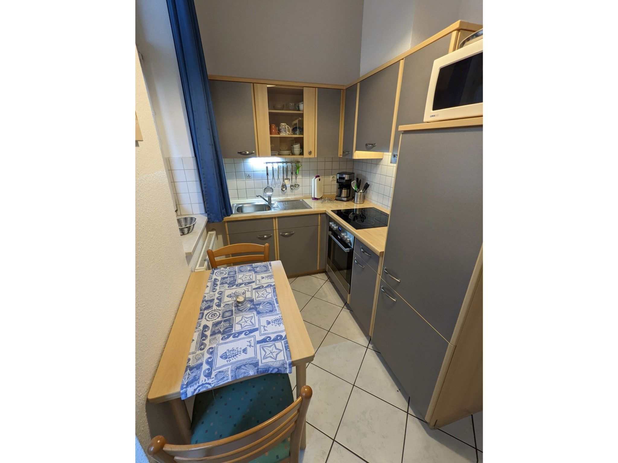 • separate Küche mit Essecke, E-Herd, Backofen, Kühlschrank, Mikrowelle uvm.
