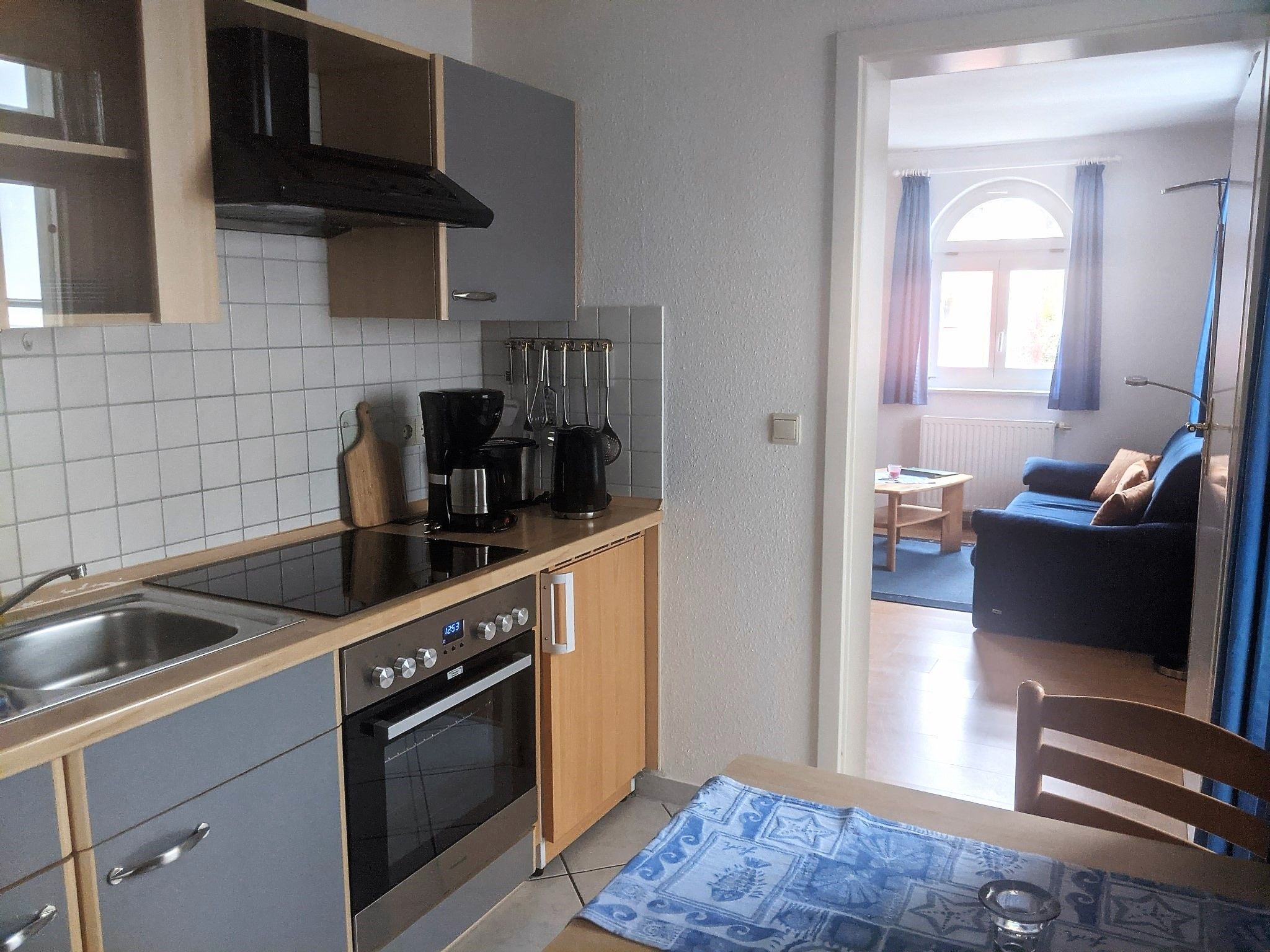 • separate Küche mit Essecke, E-Herd, Backofen, Kühlschrank, Mikrowelle uvm.