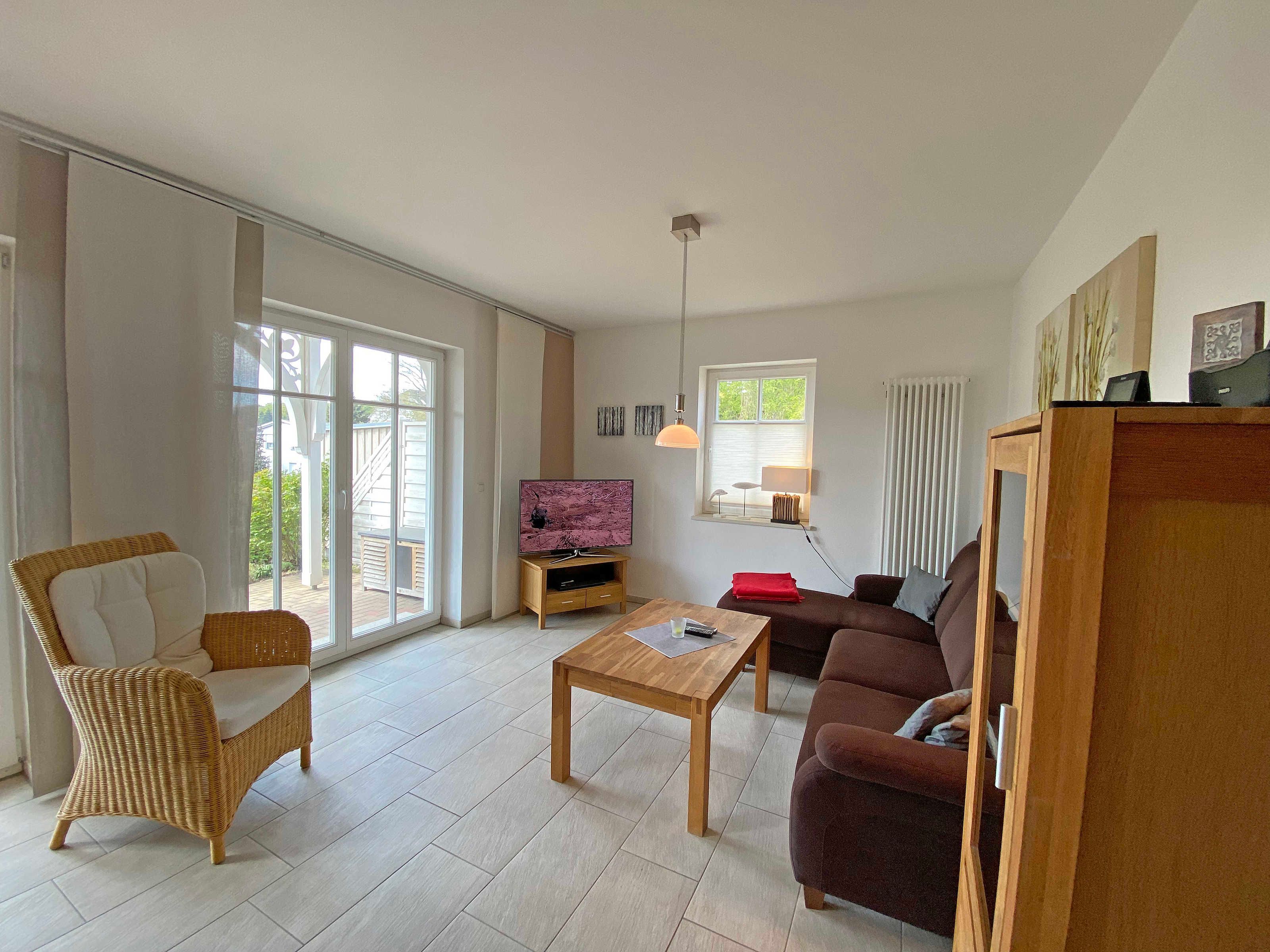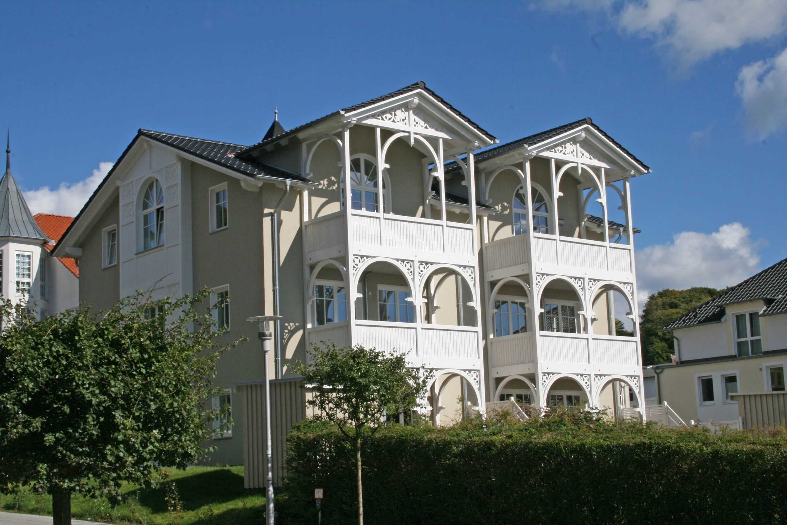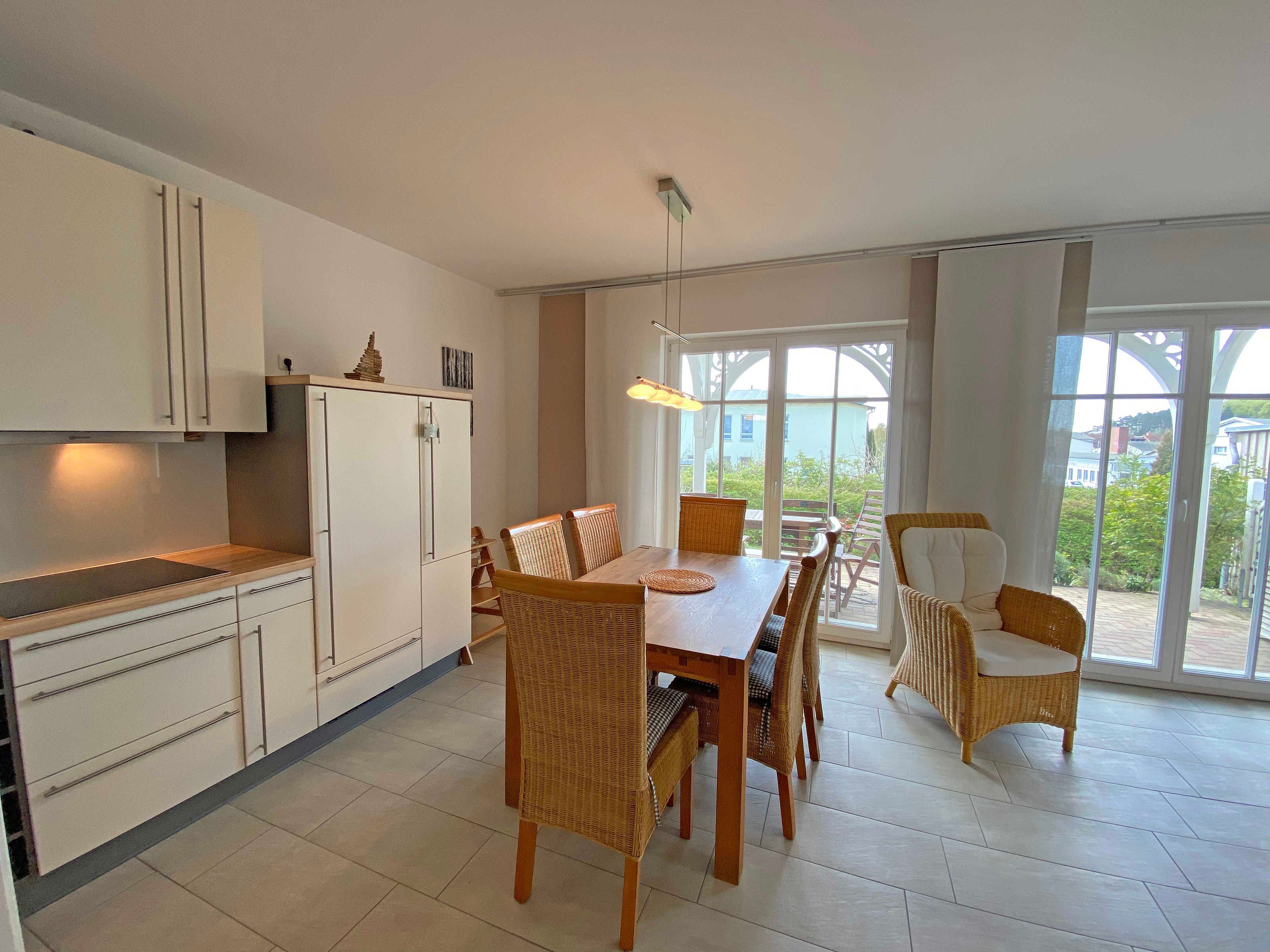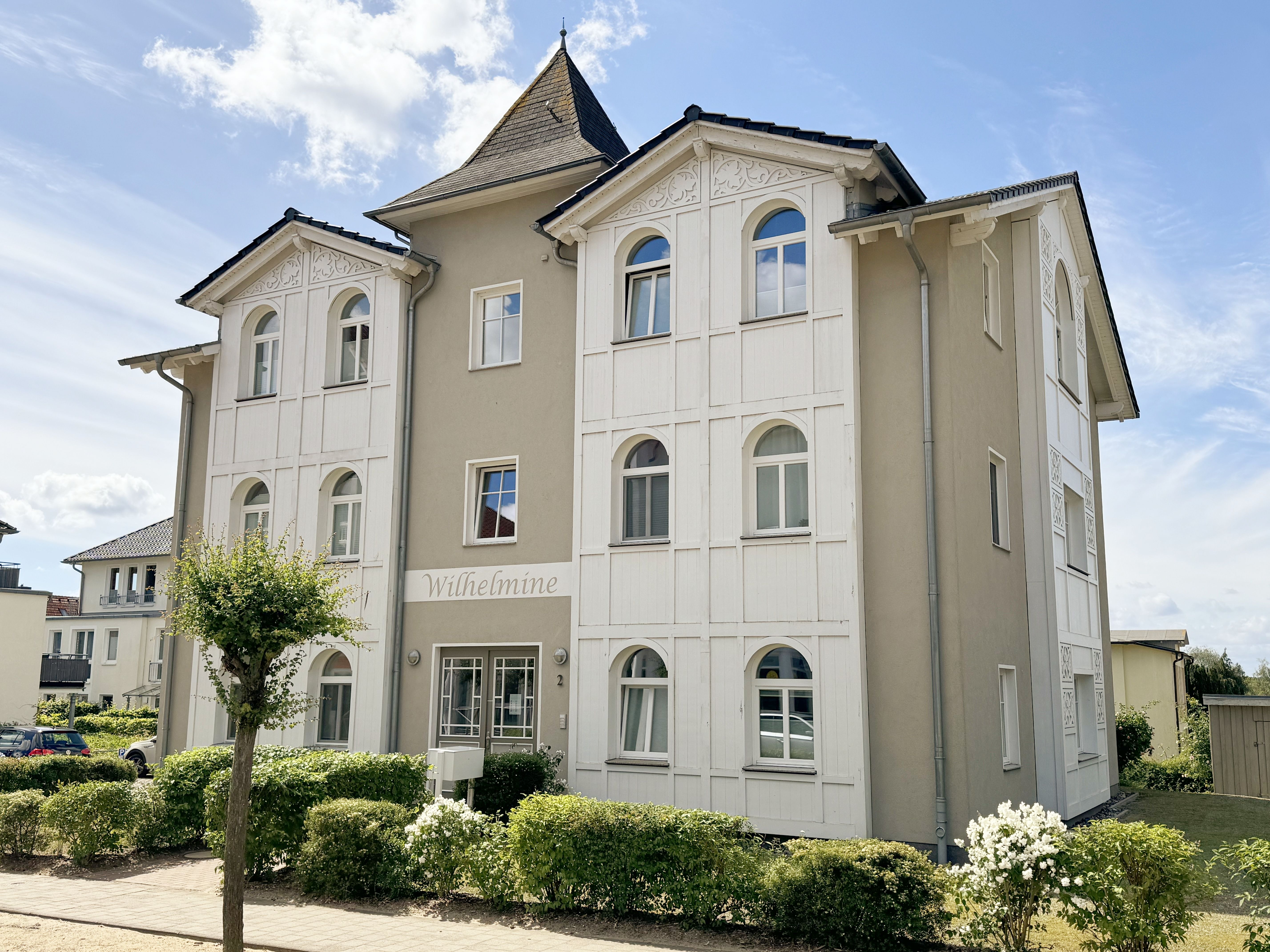 Die erbaute Villa Wilhelmine, ein ruhiges Haus mit sechs Wohnungen, liegt sehr zentral in einer Seitenstraße der bekannten Wilhelmstraße und ist in Anlehnung an deren prächtige Villen ebenfalls im Stil der Bäderarchitektur entstanden. Von hier aus erreichen Sie die berühmte Selliner Seebrücke und den feinsandigen Strand in wenigen Gehminuten. Das im Seepark am Selliner See gelegene Freizeitbad und ein Fahrradverleih befinden sich in etwa 500m Entfernung von Ihnen gelegen. Die liebevoll eingerichtete, 68qm große Wohnung mit zwei Schlafzimmern liegt im Erdgeschoss des Gebäudes zur Gartenseite. Sie hat eine großzügige Süd-Terrasse, die im Sommer zum Erholen und Sonnen einlädt.