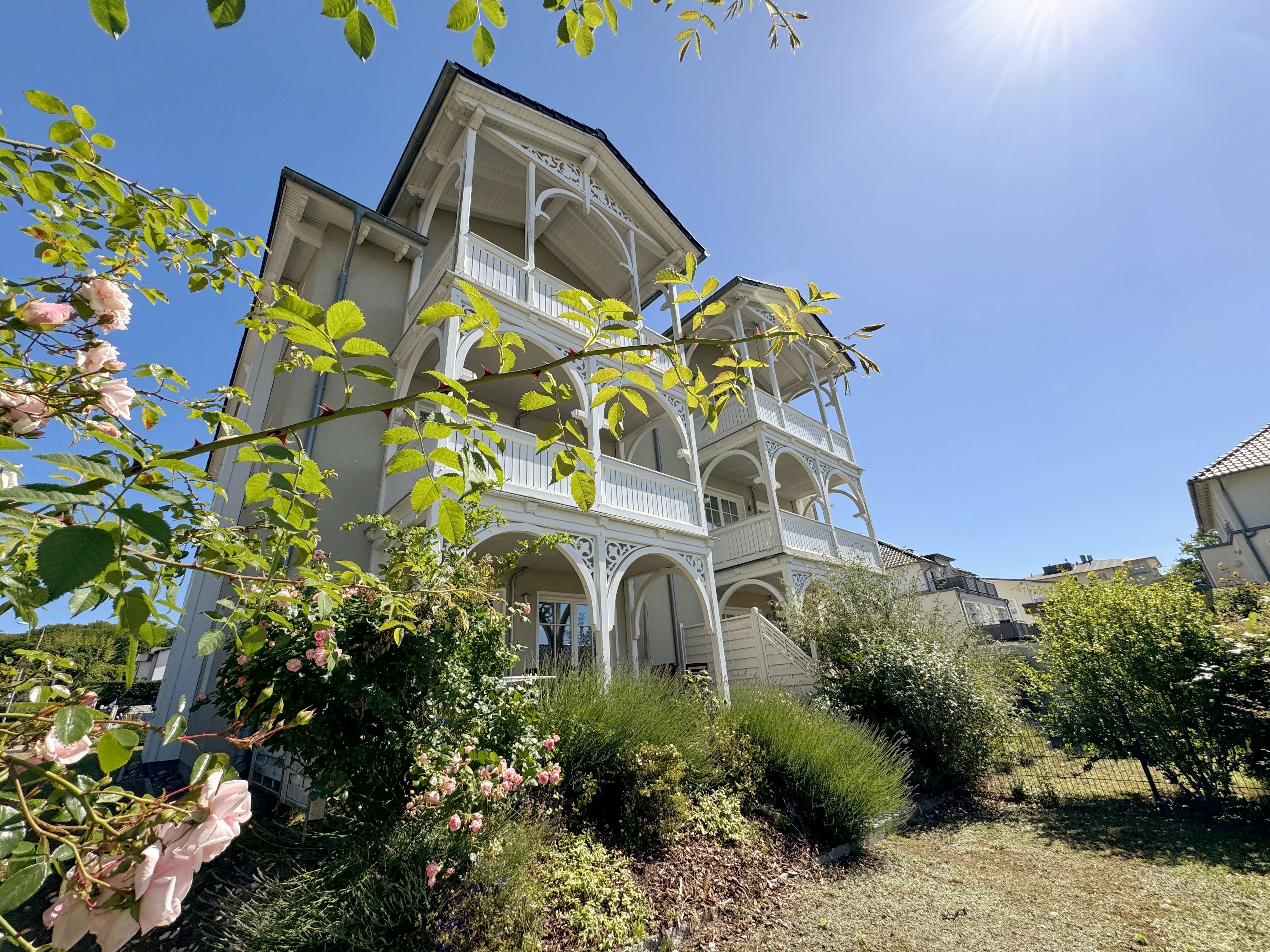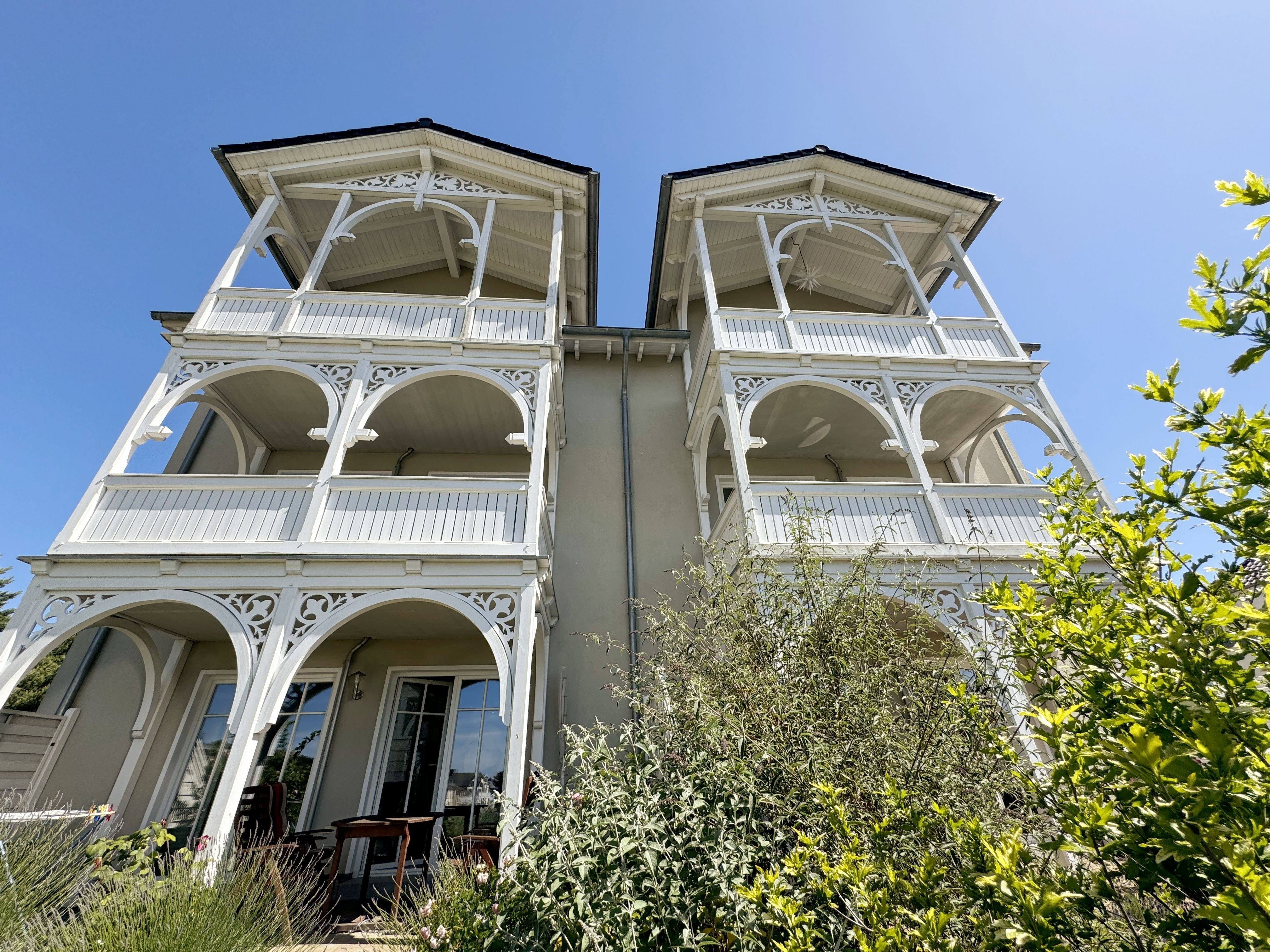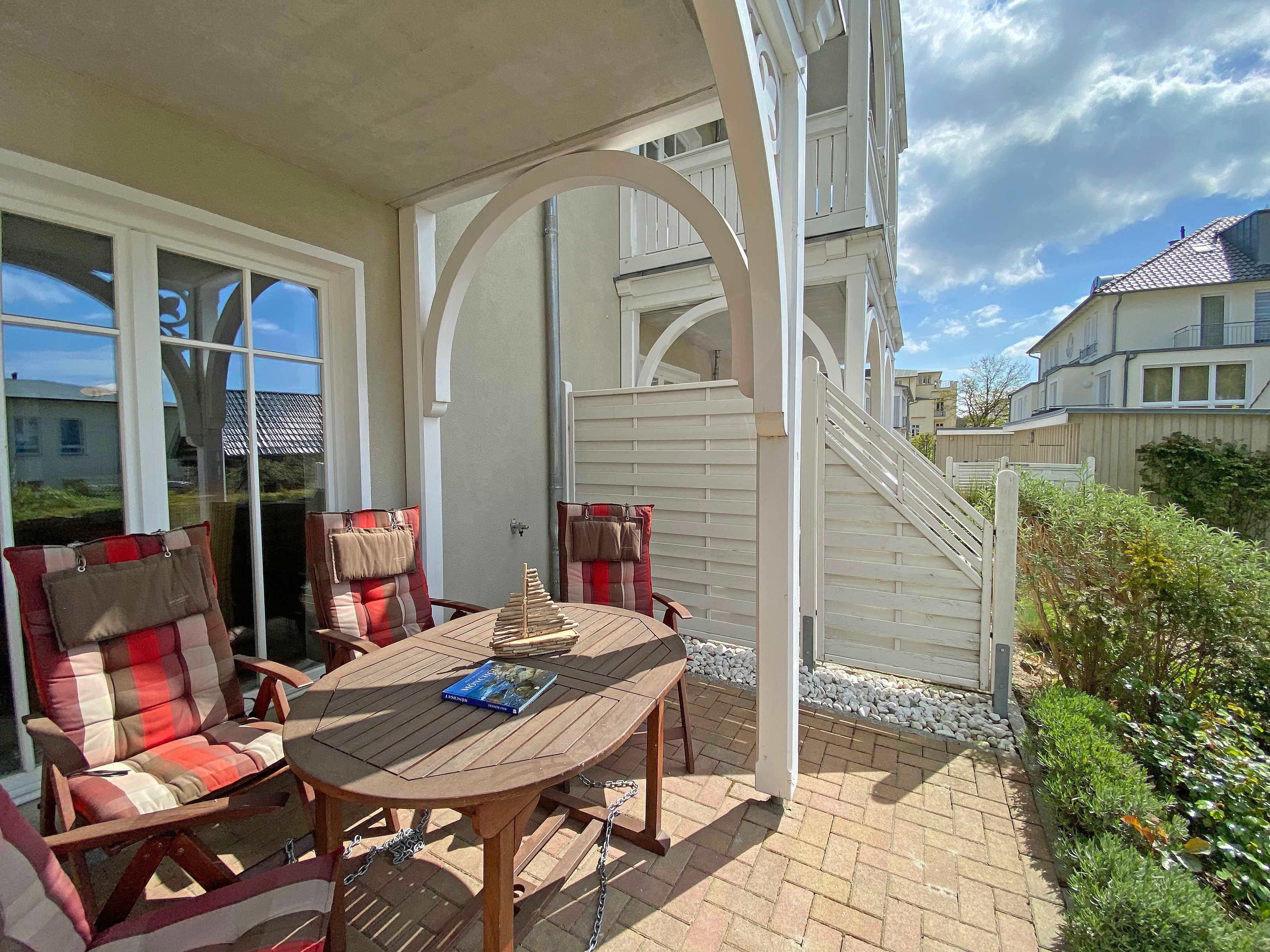 Die erbaute Villa Wilhelmine, ein ruhiges Haus mit sechs Wohnungen, liegt sehr zentral in einer Seitenstraße der bekannten Wilhelmstraße und ist in Anlehnung an deren prächtige Villen ebenfalls im Stil der Bäderarchitektur entstanden. Von hier aus erreichen Sie die berühmte Selliner Seebrücke und den feinsandigen Strand in wenigen Gehminuten. Das im Seepark am Selliner See gelegene Freizeitbad und ein Fahrradverleih befinden sich in etwa 500m Entfernung von Ihnen gelegen. Die liebevoll eingerichtete, 68qm große Wohnung mit zwei Schlafzimmern liegt im Erdgeschoss des Gebäudes zur Gartenseite. Sie hat eine großzügige Süd-Terrasse, die im Sommer zum Erholen und Sonnen einlädt.