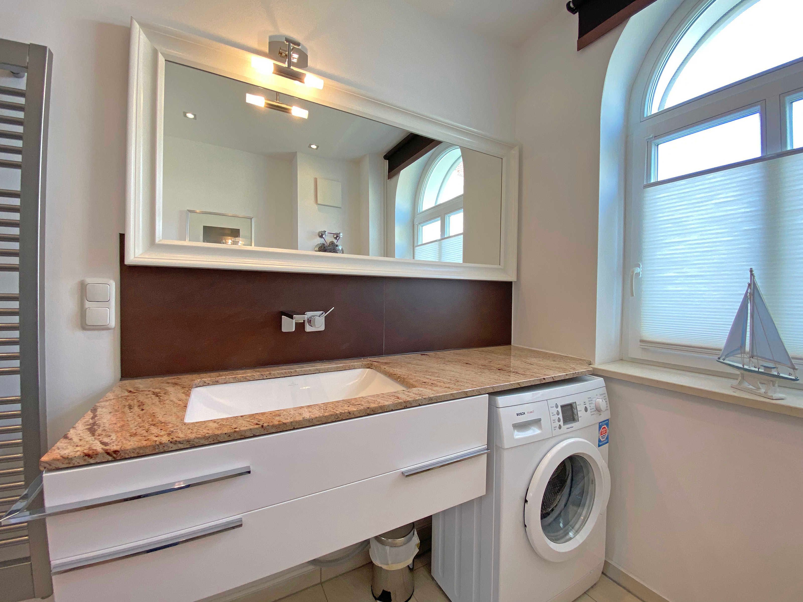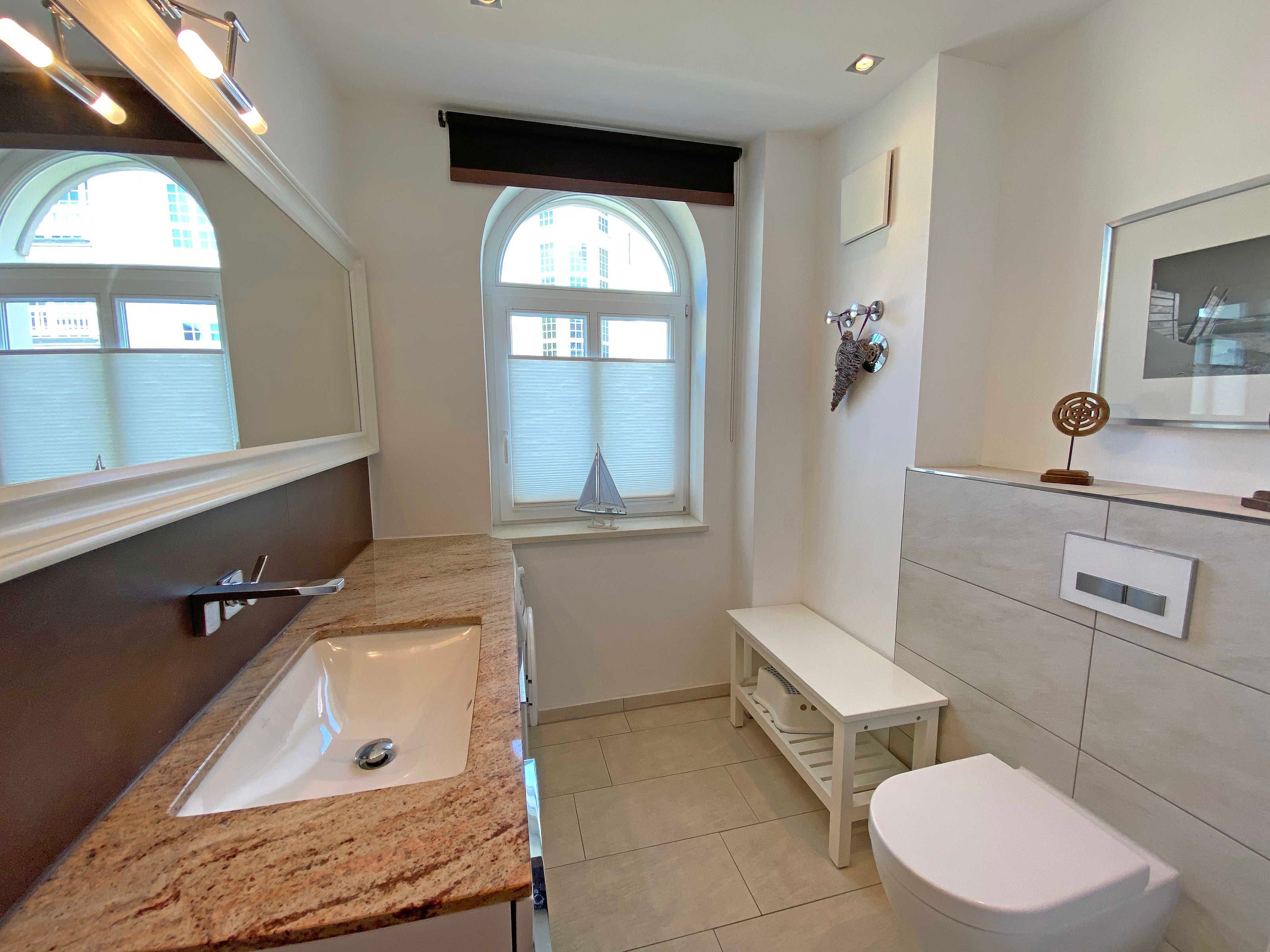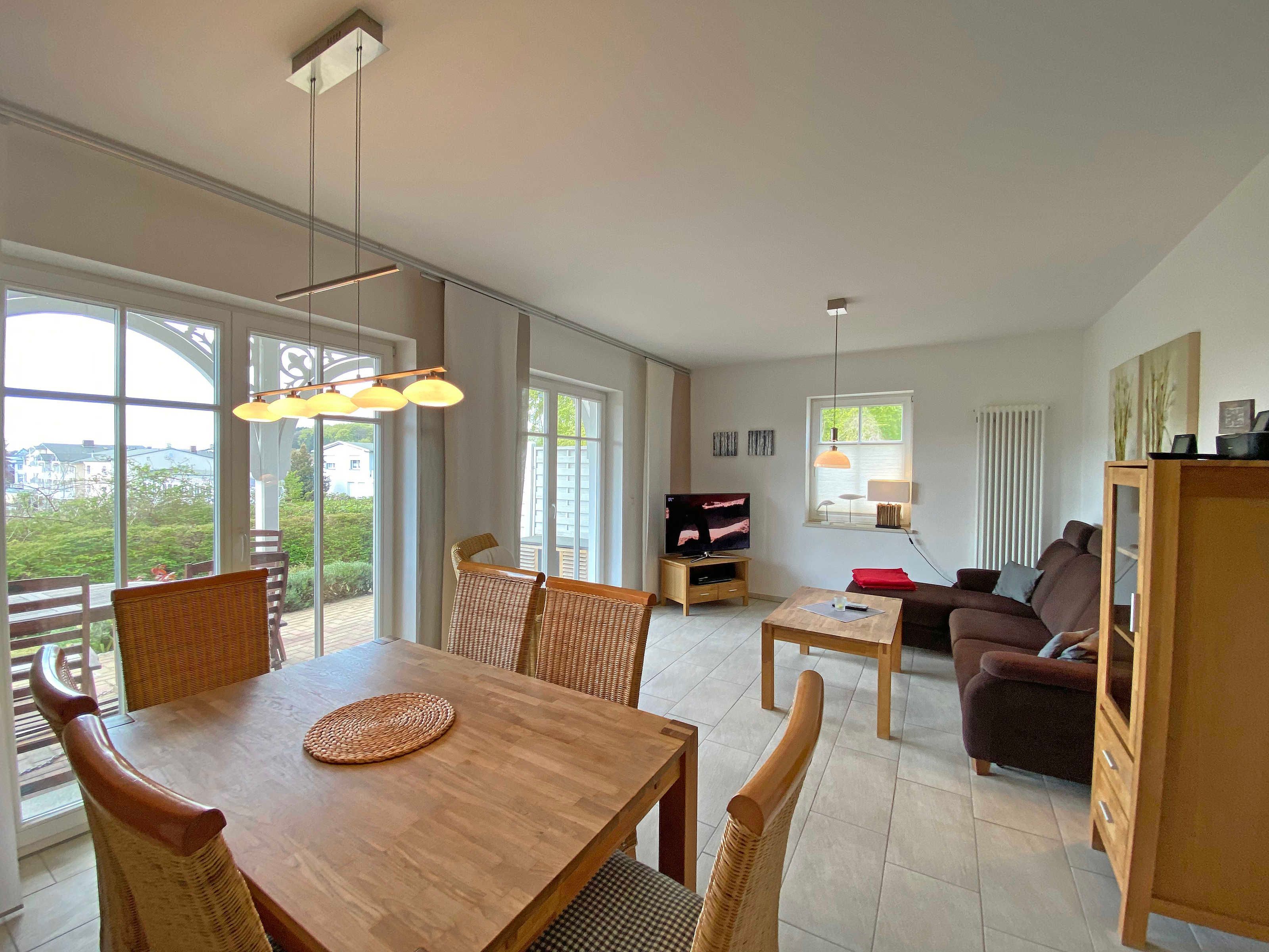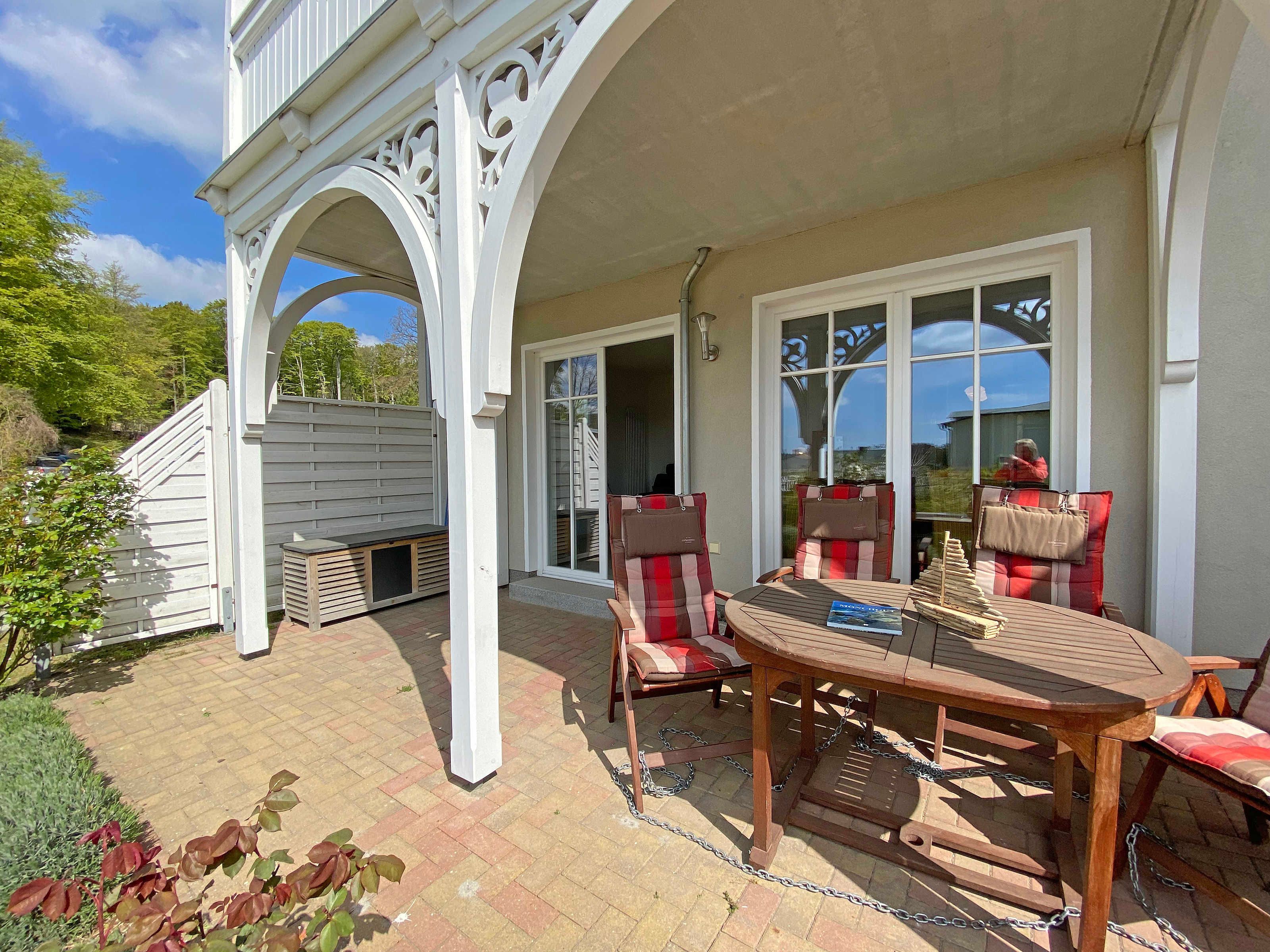 Die erbaute Villa Wilhelmine, ein ruhiges Haus mit sechs Wohnungen, liegt sehr zentral in einer Seitenstraße der bekannten Wilhelmstraße und ist in Anlehnung an deren prächtige Villen ebenfalls im Stil der Bäderarchitektur entstanden. Von hier aus erreichen Sie die berühmte Selliner Seebrücke und den feinsandigen Strand in wenigen Gehminuten. Das im Seepark am Selliner See gelegene Freizeitbad und ein Fahrradverleih befinden sich in etwa 500m Entfernung von Ihnen gelegen. Die liebevoll eingerichtete, 68qm große Wohnung mit zwei Schlafzimmern liegt im Erdgeschoss des Gebäudes zur Gartenseite. Sie hat eine großzügige Süd-Terrasse, die im Sommer zum Erholen und Sonnen einlädt.