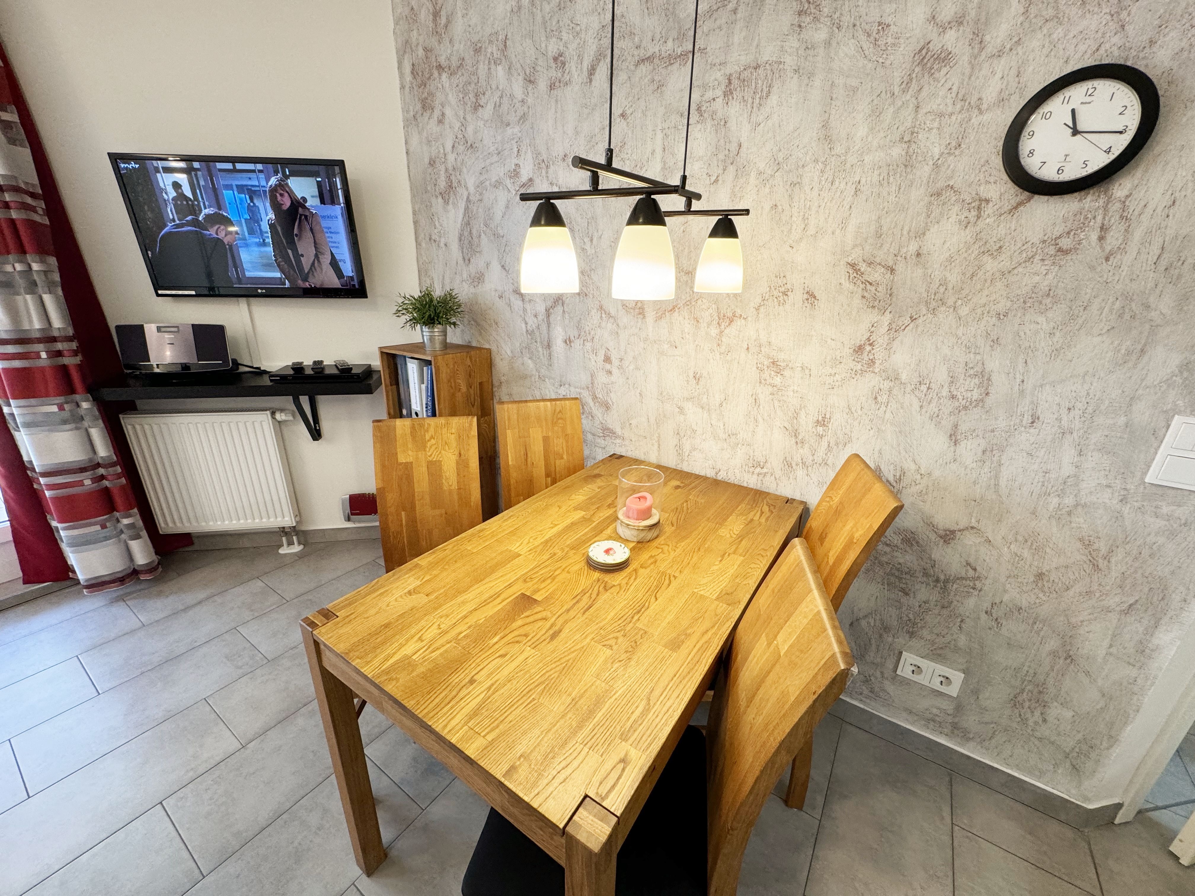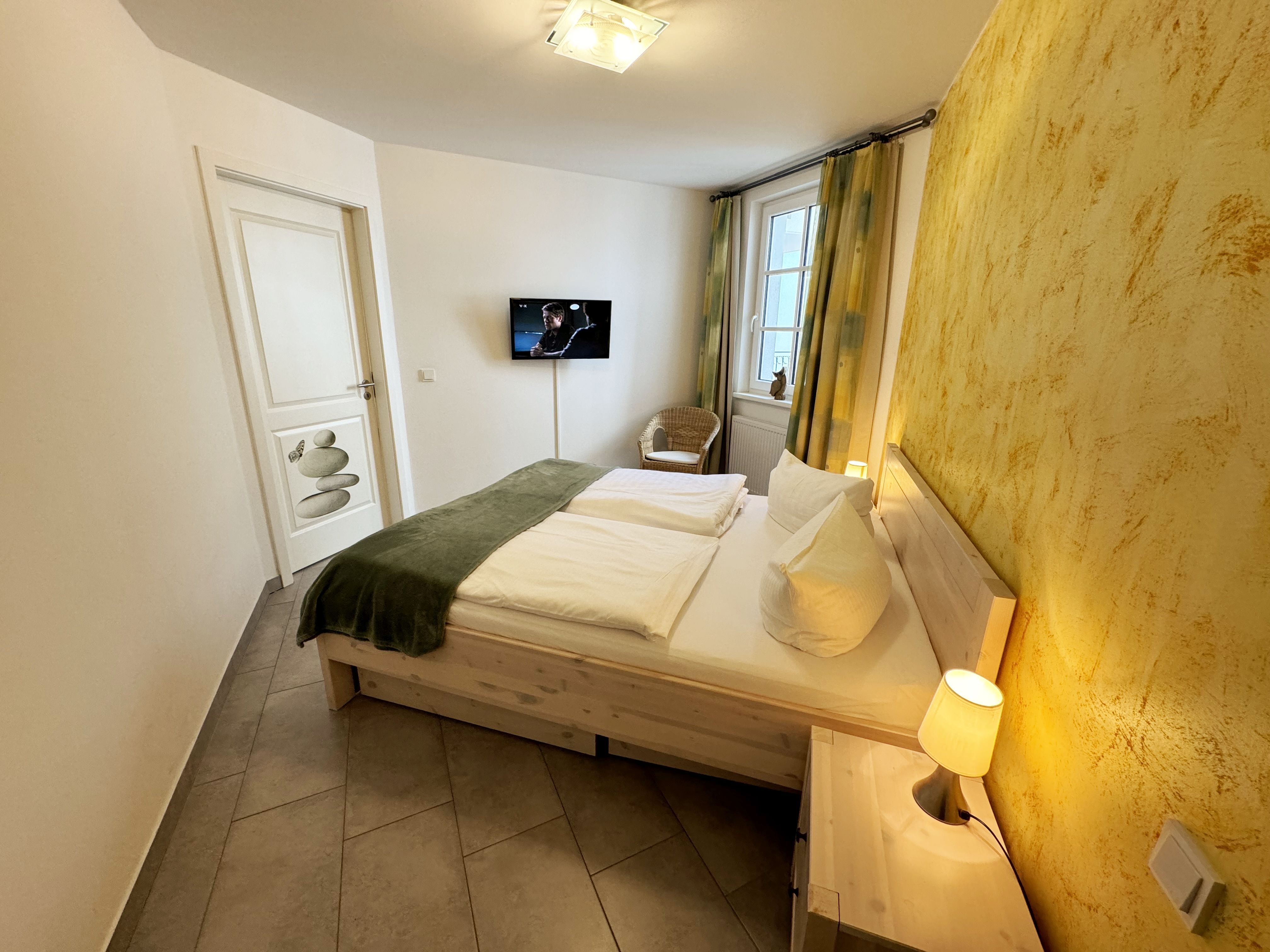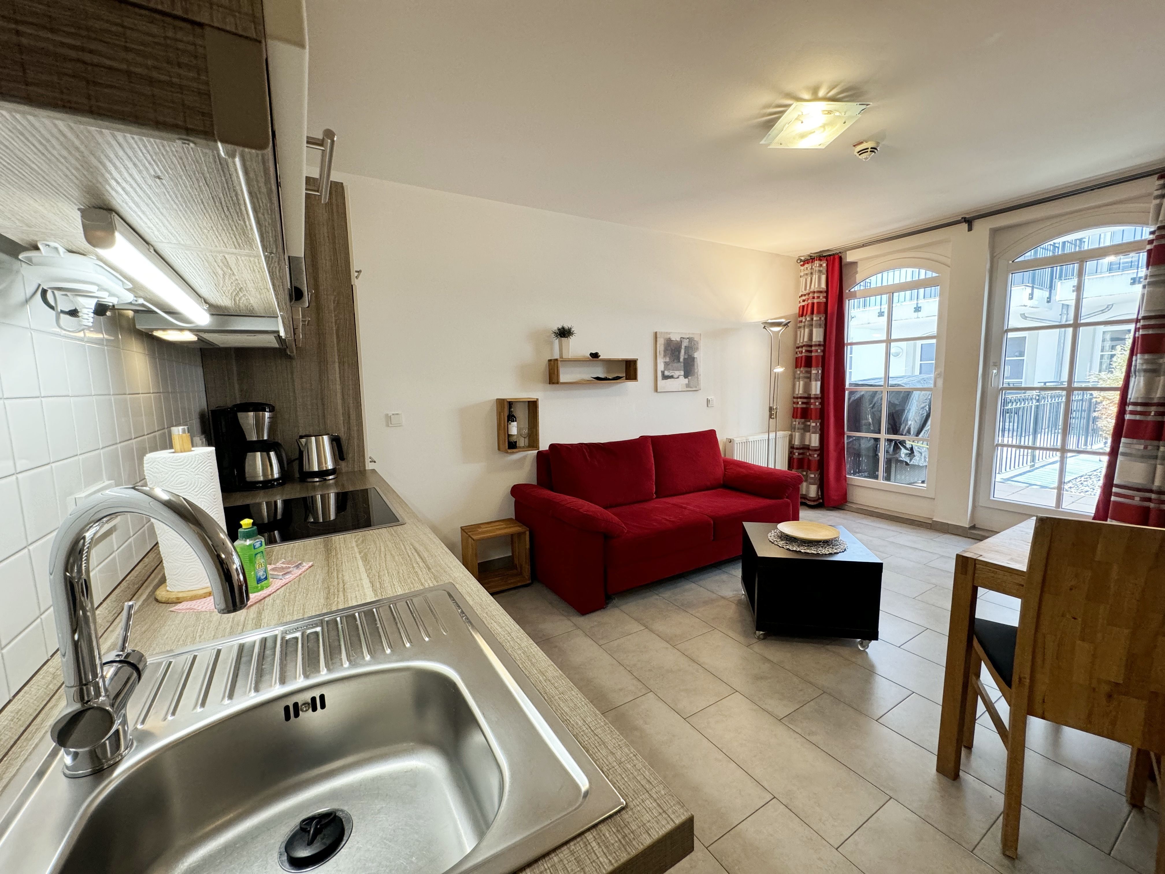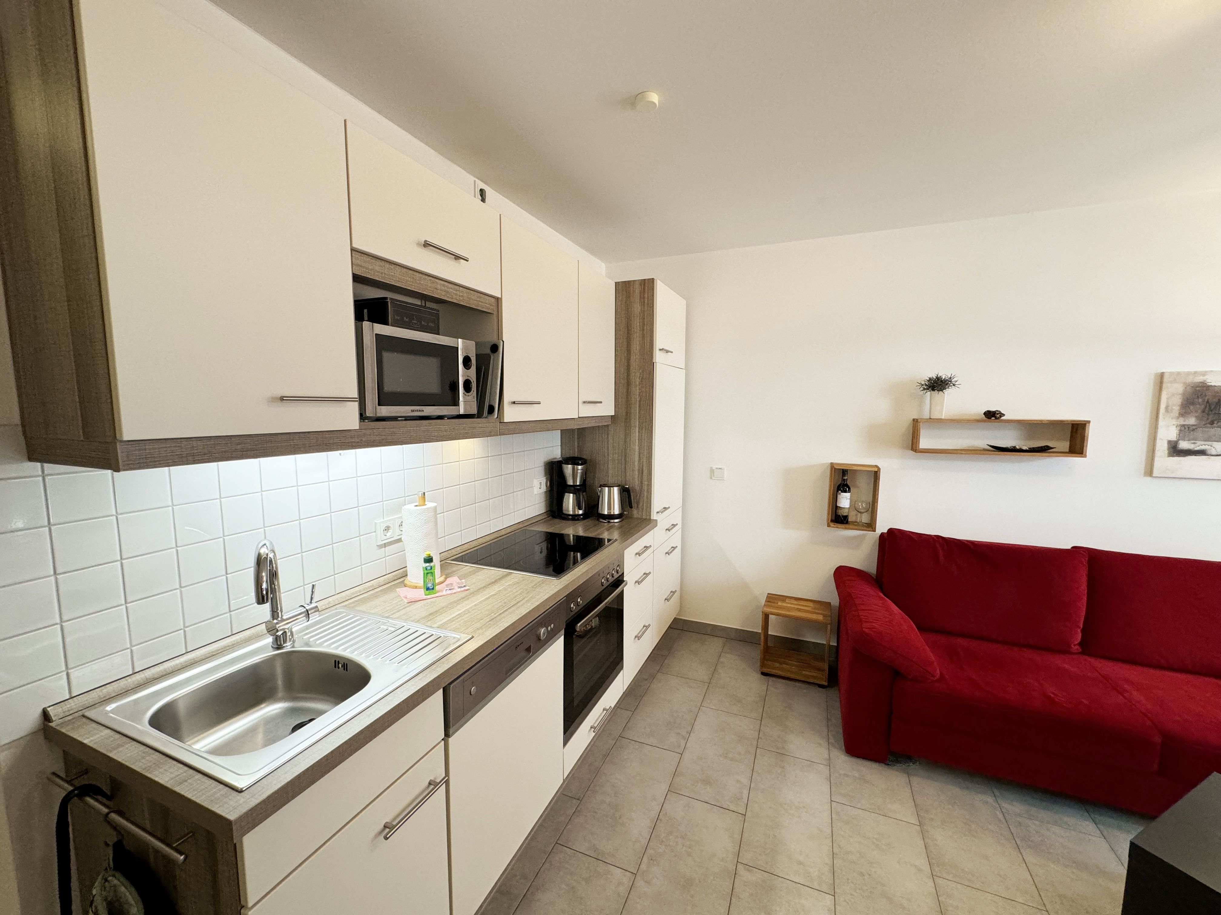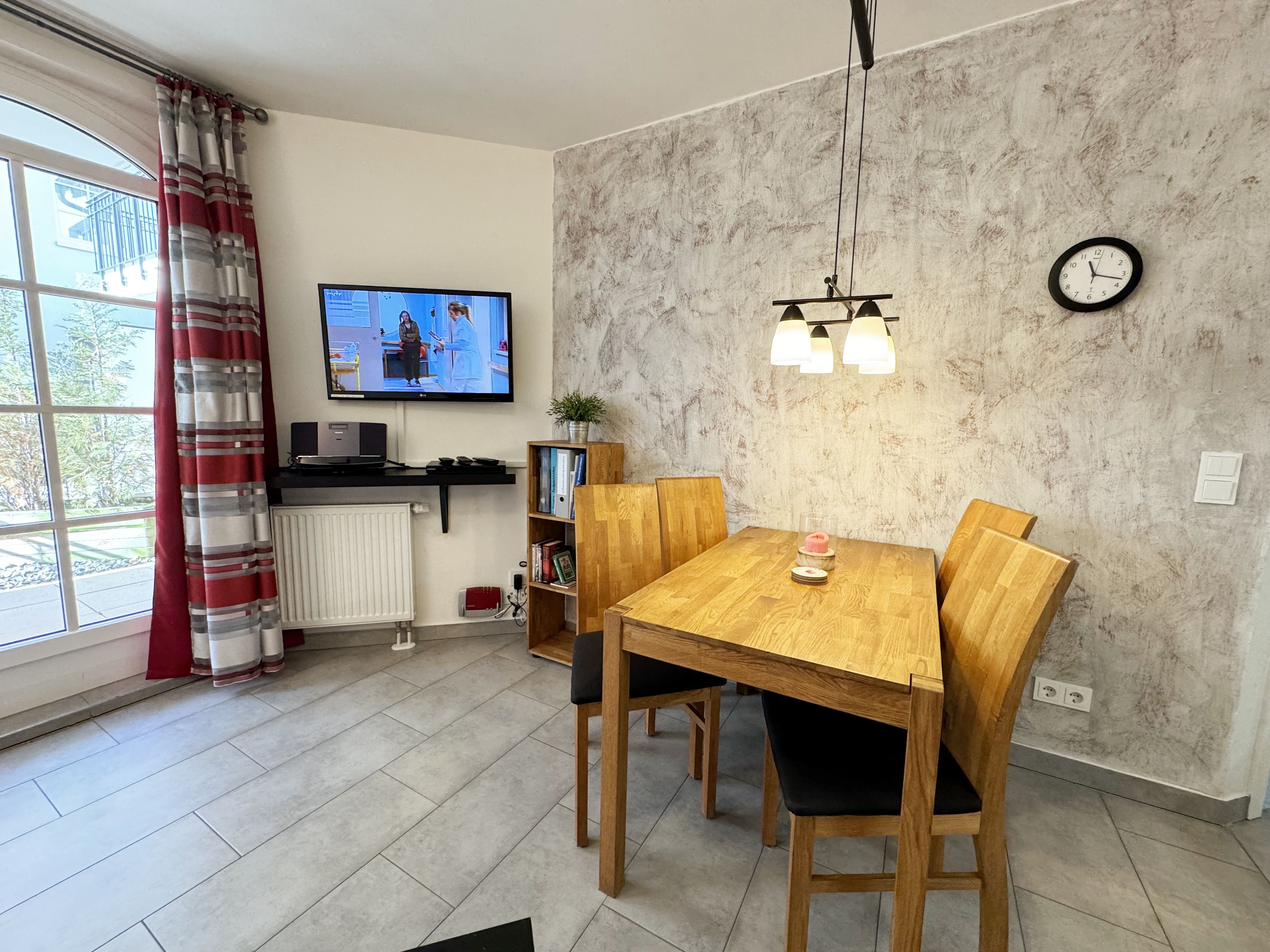 Ihre Nichtraucher/Ferienwohnung Nautica ist mit viel Liebe zum Detail ausgestattet und eingerichtet worden. Sie wohnen in einer ca. 40 qm 2-Zimmer Wohnung, die für 2 bis 4 Personen ausgelegt ist. Die Wohnung befindet sich in der 1. Etage und ist per Fahrstuhl bequem zu erreichen. In der Wohnung finden Sie einen kombinierten Wohn/Koch- und Essbereich. Die integrierte geräumige Küchenzeile lässt mit Mikrowelle, Backofen, Ceranfeld, Spülmaschine, Kühlschrank mit Gefrierfach, Kaffeemaschine und anderen praktischen Helfern keine Wünsche offen. Im Wohnbereich ist weiterhin eine Essecke und eine gemütliche Couch vorhanden, die in wenigen Handgriffen zur 2. Schlafstätte (Schlafcouchmaße 1,60 x 2,00 m) umfunktioniert werden kann. Abgerundet wird der Wohnbereich mit einem Smart-TV, Blu-Ray Player, Leselampe und einer Musikanlage mit DAB-Radio. Auch auf einen Internetanschluss (WLAN) müssen Sie im Urlaub nicht verzichten. Dieser ist für Sie inklusive! Der Balkon ist vom Wohn/Essbereich begehbar und komplett möbliert. Das Schlafzimmer ist mit einem Doppelbett (1,60m x 2,00m), Nachttischkonsolen, kleinem Flachbildschirm und einem begehbaren Kleiderschrank sowie ein Insektenschutzgitter ausgestattet. Auch 1x Kinderreisebett (ohne Matratze und Bett Inlett) sowie 1x Kinderhochstuhl werden unseren kleinen Gästen zur Verfügung gestellt (inklusive). Das Bad verfügt über eine ebenerdige Dusche, Waschbecken, Kosmetikspiegel, Fön, WC und Handtuchheizkörper. Ein eigener PKW-Stellplatz (Nr.23, Einfahrtshöhe 2,00m) befindet sich in der Tiefgarage des Hauses. Auch 1 Hund ist gegen eine Gebühr ein gern gesehener Gast in der Wohnung. Im Keller des Hauses haben Sie die Möglichkeit eine Waschmaschine/Trockner gegen Gebühr zu nutzen. Mit dem Fahrstuhl des Hauses A gelangen sie in das Untergeschoss der Meeresblickanlage, wo Sie ein großzügiger und heller Wellnessbereich erwartet. Hier können sie in einem Pool kleine Bahnen schwimmen, in 2 Saunen Ihren Kreislauf in Schwung bringen, in einem dazugehörigen Ruheraum Ihren Körper wieder beruhigen, in einer Schneckendusche sowie weiteren Duschen das kühle Nass genießen und auf einer Außenterrasse mit Außendusche die frische Luft einatmen. Die Erstausstattung eines Wäschepaketes (komplette Bettwäsche, 1 Duschhandtuch, 2 kleine Handtücher) können Sie bis 14 Tage vor Anreise gegen einen Aufpreis dazu buchen oder durch eigene ergänzen. Ab 2 gebuchten Paketen erhalten Sie einmalig 1 Geschirrhandtuch und 1 Duschvorleger hinzu.