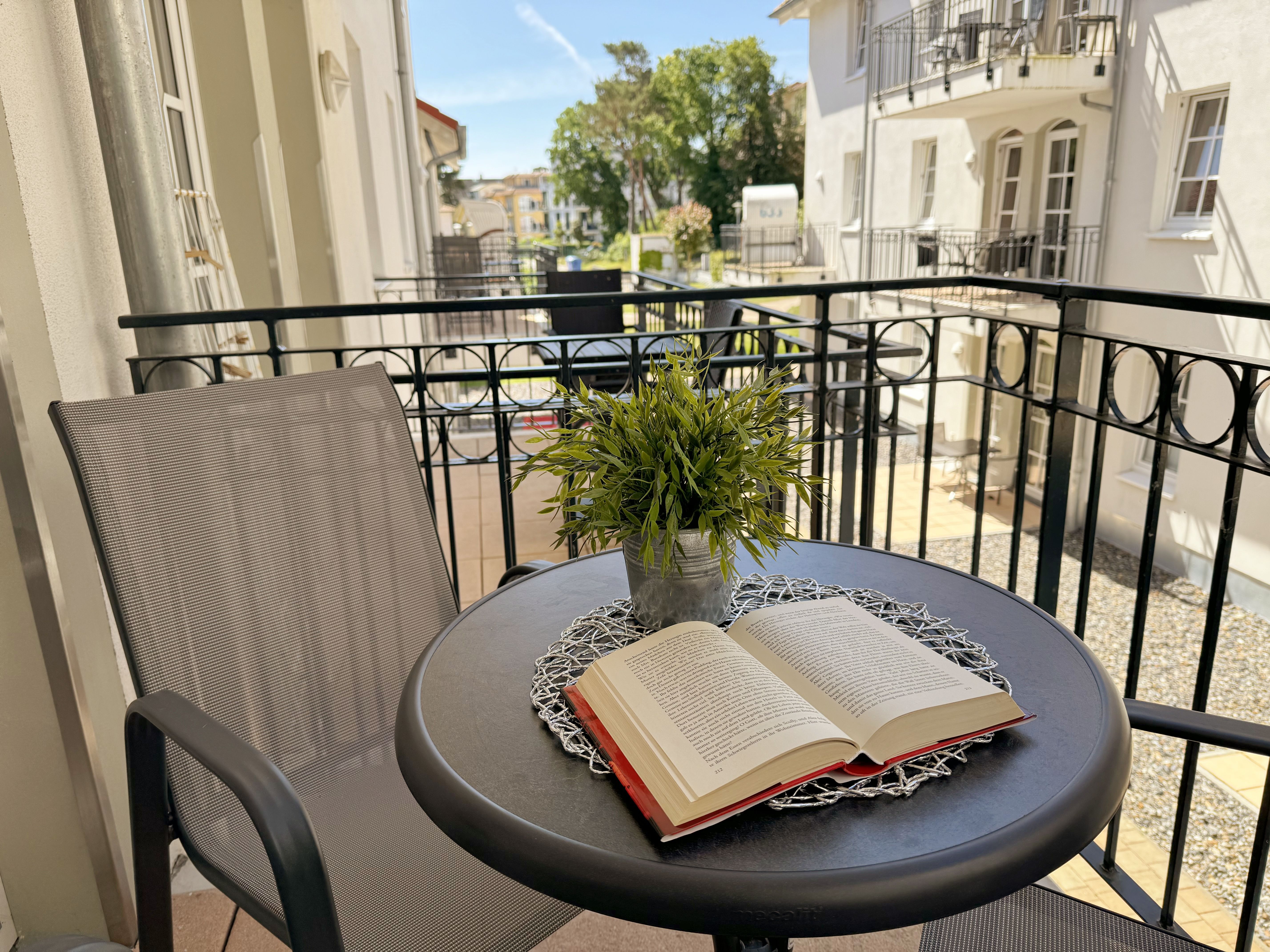 Die Ferienwohnungen verfügen über einen hohen Komfort und lassen Ihren Urlaubstraum wahr werden. Im Haupthaus befindet sich ein Wellnessbereich mit Innenpool, Sauna und Ruheraum (inklusive) der zur Entspannung einlädt. Eine hauseigene Tiefgarage sorgt dafür, dass Ihr PKW sicher untergebracht ist. Cafés und Restaurants laden in der Anlage zum Verweilen ein. Ein weiteres Highlight ist der Müther Schalenbau (Restaurant Inselparadies Baabe), welches saniert, restauriert und in die Meeresblickanlage liebevoll integriert wurde. Von hier aus haben Sie einen fantastischen Blick auf die weite Ostsee. Die Wohnung Nautica (A1.10) befindet sich im Haupthaus A im 1. Obergeschoss und verfügt über einen Innenhofbalkon.