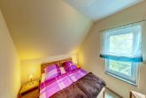 Die Wohnung besitzt 3 Schlafzimmer im OG mit je einem Doppelbett und einem Schlafraum im DG mit 4 Einzelbetten.