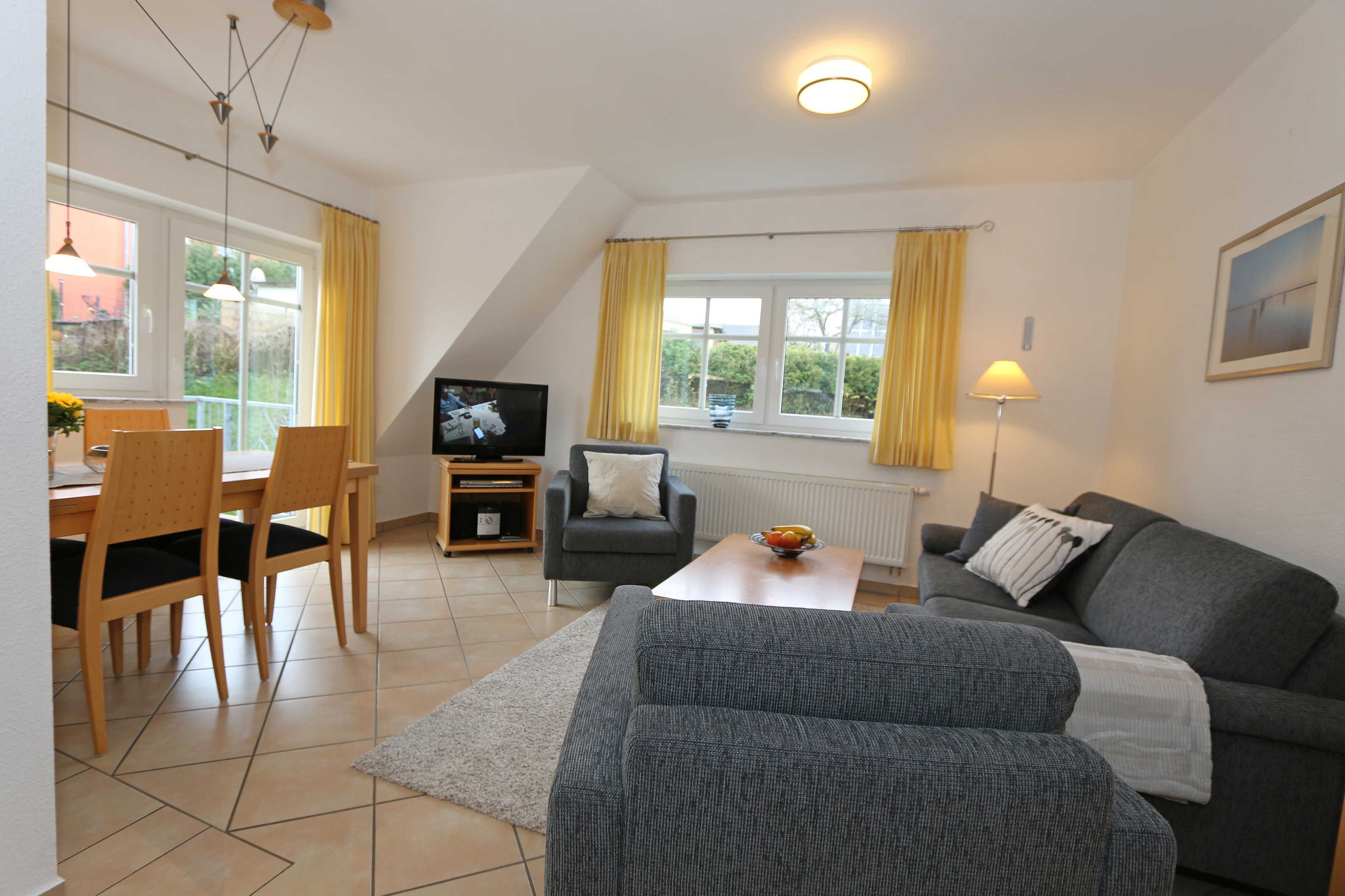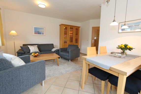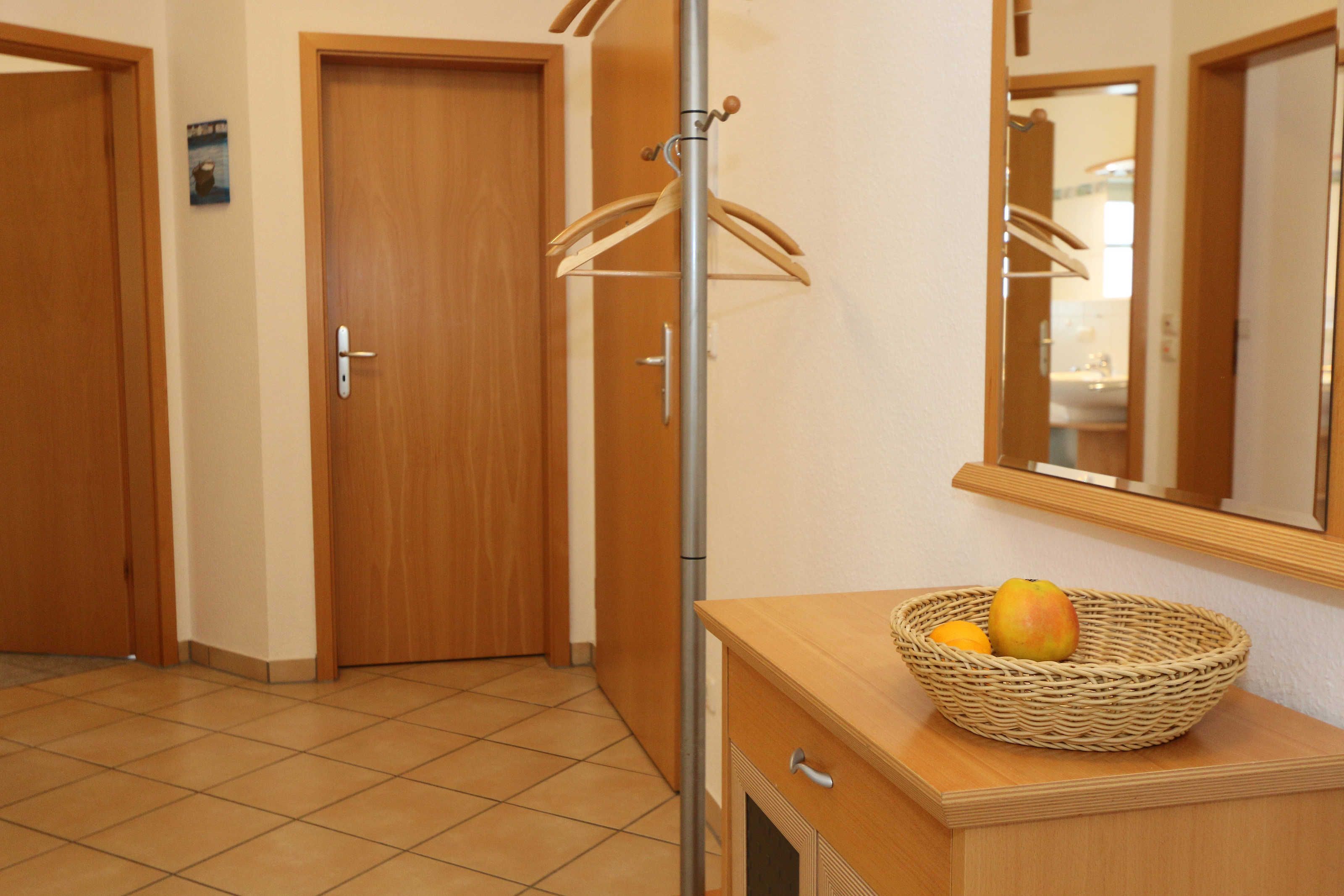 Die lichtdurchflutete, komfortable Nichtraucherwohnung verläuft auf über 78 qm und ist ideal für 2 bis 4 Personen geeignet. Ein Kleinkind (3 Jahre) im Kinderreisebett kann als Aufbettung (5. Person) untergebracht werden. Die beiden Balkone (Richtung Westen und Süden) laden zum Verweilen ein und erlauben es Ihnen den ganzen Tag die mitwandernde Sonne zu genießen. Der kombinierte Wohn- und Essbereich ist mit einer hellen Küchenzeile ausgestattet. Die Küchenzeile beinhaltet ein Ceranfeld, Backofen, Geschirrspüler, Mikrowelle, Kühlschrank mit Gefrierfach, Kaffeemaschine, Senseo Padmaschine, Toaster, Wasserkocher sowie diverse Küchenutensilien. Der dazugehörige Essbereich umfasst einen Esstisch mit 4 Stühlen. Ein Wohnbereich mit Sofa, Sessel, Couchtisch, Vitrine, Leselampe, Flatscreen-TV mit DVD-Player und Stereoanlage mit CD-Player runden das Ganze ab. Das 1. Schlafzimmer ist mit einem Doppelbett (1,80 m x 2,00 m), 2 Nachtschränken, einen Flachbild-TV und Kleiderschrank ausgestattet. Von hier aus haben Sie Blick auf die Ostsee. Das 2. Schlafzimmer verfügt ebenfalls über ein Doppelbett (1,80 m x 2,00 m), 2 Nachtschränke und einen Kleiderschrank. Für einen ruhigen Schlaf sorgen in beiden Schlafzimmern Rollläden. Das großzügige Bad ist mit einer Dusche mit flachem Einstieg, Fön, WC und Waschtisch ausgestattet. In einem separaten Abstellraum, welcher zur Wohnung gehört finden Sie diverse Reinigungsutensilien sowie einen Wäscheständer. Auch im Urlaub brauchen Sie auf einen Internetzugang (WLAN über Hotspot) in Ihrer Wohnung nicht zu verzichten. Dieser ist inklusive. 1x Kinderreisebett (ohne Matratze und Bett Inlett) ist für unsere kleinen Gäste inklusive. Ein Hochstuhl kann gegen eine Extragebühr dazu gebucht werden. Haustiere sind nicht erlaubt. In einem Gemeinschaftsraum können Sie gegen einen Aufpreis eine Waschmaschine und einen Trockner nutzen. Der Parkplatz (Nr. 4) befindet sich direkt auf dem Grundstück. Ihre Fahrräder können Sie auf dem Areal in einen Fahrradschuppen unterstellen. Ein Gemeinschaftsgrillplatz mit massiven Holzbänken und Standgrill ist vorhanden. Die Erstausstattung eines Wäschepaketes (komplette Bettwäsche, 1 Duschhandtuch, 2 kleine Handtücher) können Sie bis 14 Tage vor Anreise gegen einen Aufpreis dazu buchen oder durch eigene ergänzen. Ab 2 gebuchten Paketen erhalten Sie einmalig 1 Geschirrhandtuch und 1 Duschvorleger hinzu.