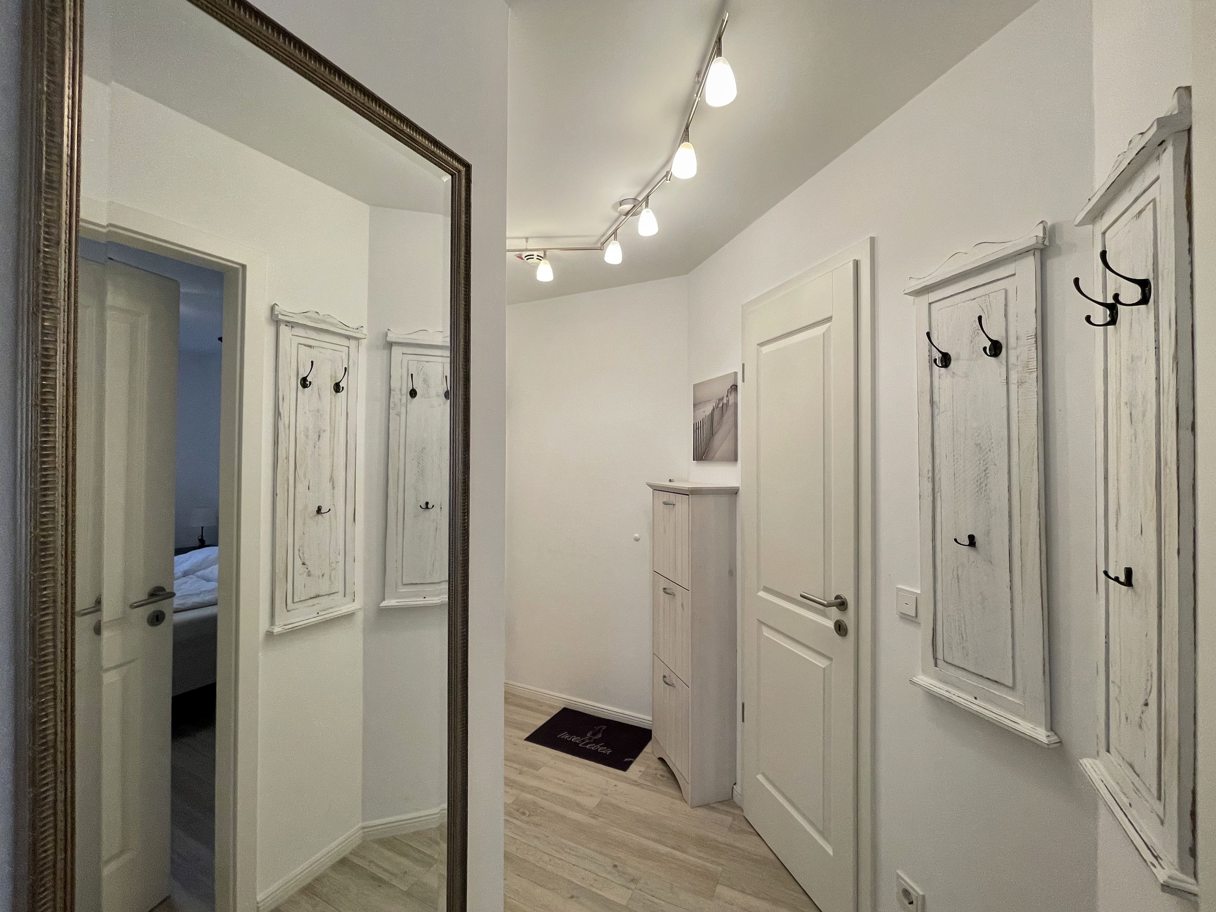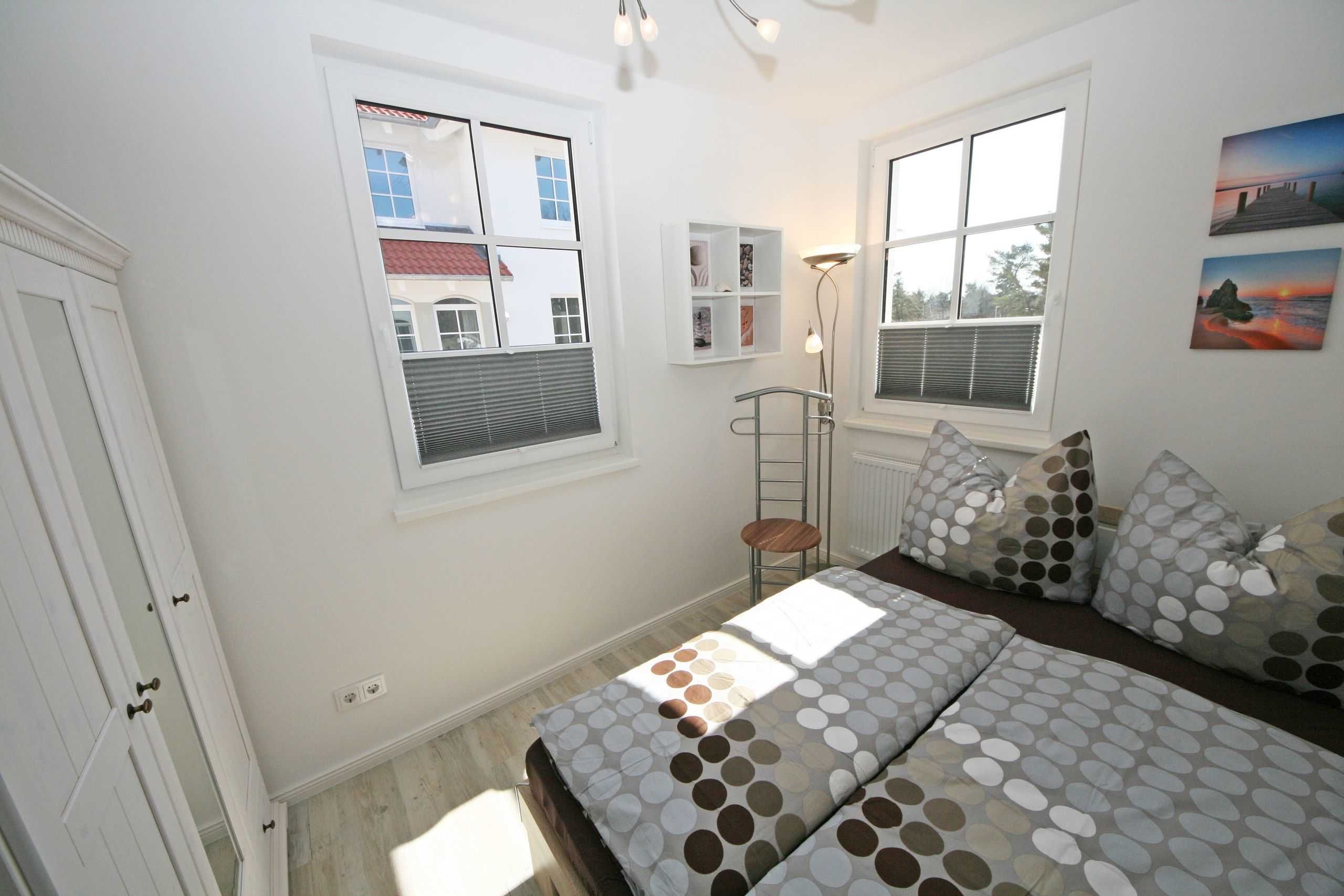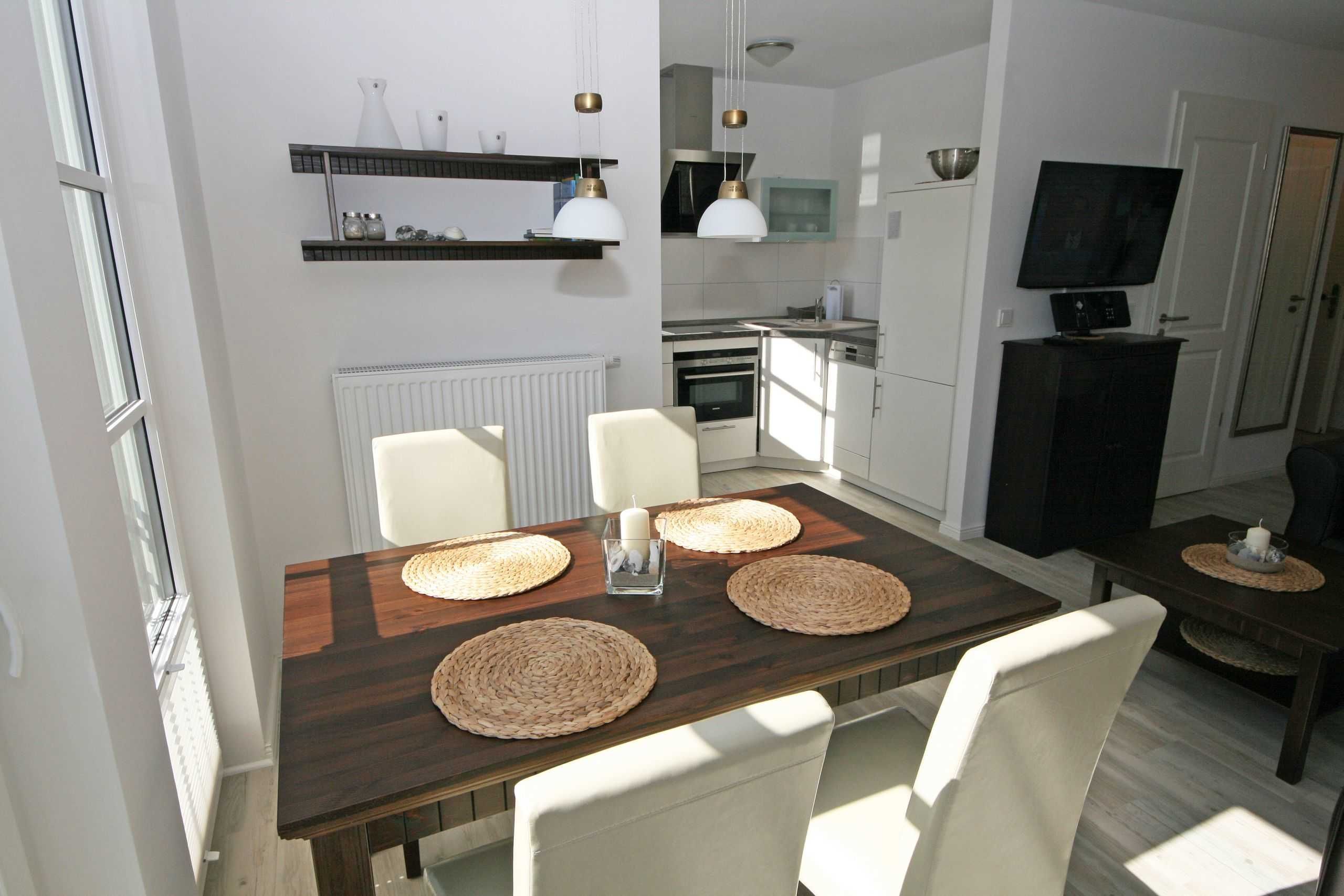 Ihre Nichtraucher/Ferienwohnung ist mit viel Liebe zum Detail ausgestattet und eingerichtet worden. Sie wohnen in einer ca. 51 qm 3-Zimmer Wohnung, die für 2 bis 4 Personen ausgelegt ist. Die Wohnung KOJE 2.31 befindet sich in der 1. Etage und ist per Fahrstuhl vom Haupthaus bequem zu erreichen. In der Wohnung finden Sie einen kombinierten Wohn/Koch- und Essbereich. Die integrierte exklusive Küchenzeile lässt mit Backofen mit Mikrowellenfunktion, Ceranfeld, Spülmaschine, Kühl/Gefrierkombination, Kaffeemaschine und anderen praktischen Helfern keine Wünsche offen. In dem sich anschließenden Wohnbereich ist eine gemütliche Couch, Leselampe, Smart-TV, DVD-Player und eine Musikanlage vorhanden. Auch auf einen Internetanschluss (WLAN) müssen Sie im Urlaub nicht verzichten. Dieser ist für Sie inklusive! Direkt vor den großen lichtdurchfluteten Balkonfenstern finden Sie einen Esstisch mit 4 Stühlen, der Ihnen genügend Platz bietet. Der Eckbalkon (Südausrichtung) ist von dem Wohn/Essbereich begehbar und lädt bei Sonnenschein zum Verweilen ein. Von hier aus haben Sie einen herrlichen Blick Richtung Kurpark und dem Inselparadies. Das 1. Schlafzimmer ist mit einem Doppelbett (1,80m x 2,00m), Nachttischkonsolen, Verdunklungsplissee´s, Kleiderschrank und TV ausgestattet. Das 2. Schlafzimmer verfügt über ein Doppelbett (1,40m x 2,00m), Verdunklungsplissee´s und einen Kleiderschrank. Das exklusive Bad ist mit einer ebenerdigen Klarglasdusche, Waschtisch mit großzügiger Ablage, Kosmetikspiegel, Fön, WC und einem Handtuchheizkörper ausgestattet. Integrierte Spots sorgen in der Decke für ein helles Licht. Insektenschutzgitter befinden sich in den Schlafzimmern sowie im Wohnbereich. Ein eigener PKW-Stellplatz (Nr.128, Einfahrtshöhe 2,00m) befindet sich in der Tiefgarage des Hauses. Im Keller des Hauses haben Sie die Möglichkeit eine Waschmaschine/Trockner gegen Gebühr zu nutzen. Mit dem Fahrstuhl des Hauses A gelangen sie in das Untergeschoss der Meeresblickanlage, wo Sie ein großzügiger und heller Wellnessbereich erwartet. Hier können sie in einem Pool kleine Bahnen schwimmen, in 2 Saunen Ihren Kreislauf in Schwung bringen, in einem dazugehörigen Ruheraum Ihren Körper wieder beruhigen, in einer Schneckendusche sowie weiteren Duschen das kühle Nass genießen und auf einer Außenterrasse mit Außendusche die frische Luft einatmen. Die Erstausstattung eines Wäschepaketes (komplette Bettwäsche, 1 Duschhandtuch, 2 kleine Handtücher) können Sie bis 14 Tage vor Anreise gegen einen Aufpreis dazu buchen oder durch eigene ergänzen. Ab 2 gebuchten Paketen erhalten Sie einmalig 1 Geschirrhandtuch und 1 Duschvorleger hinzu. Haustiere sind nicht erlaubt.
