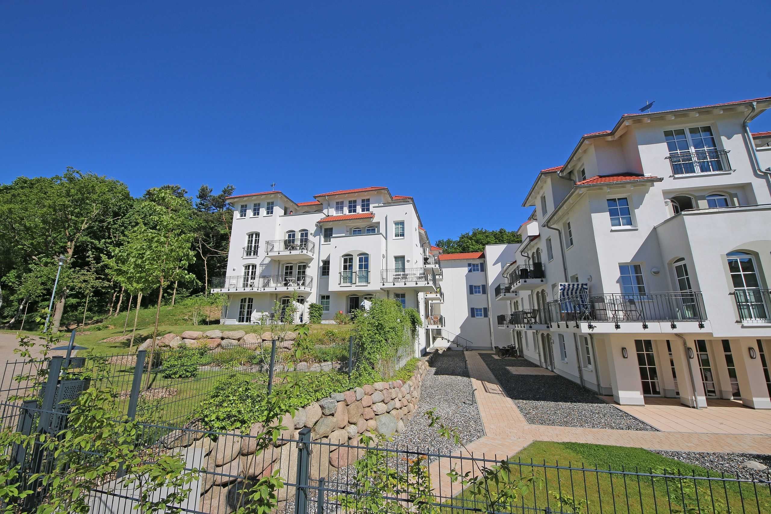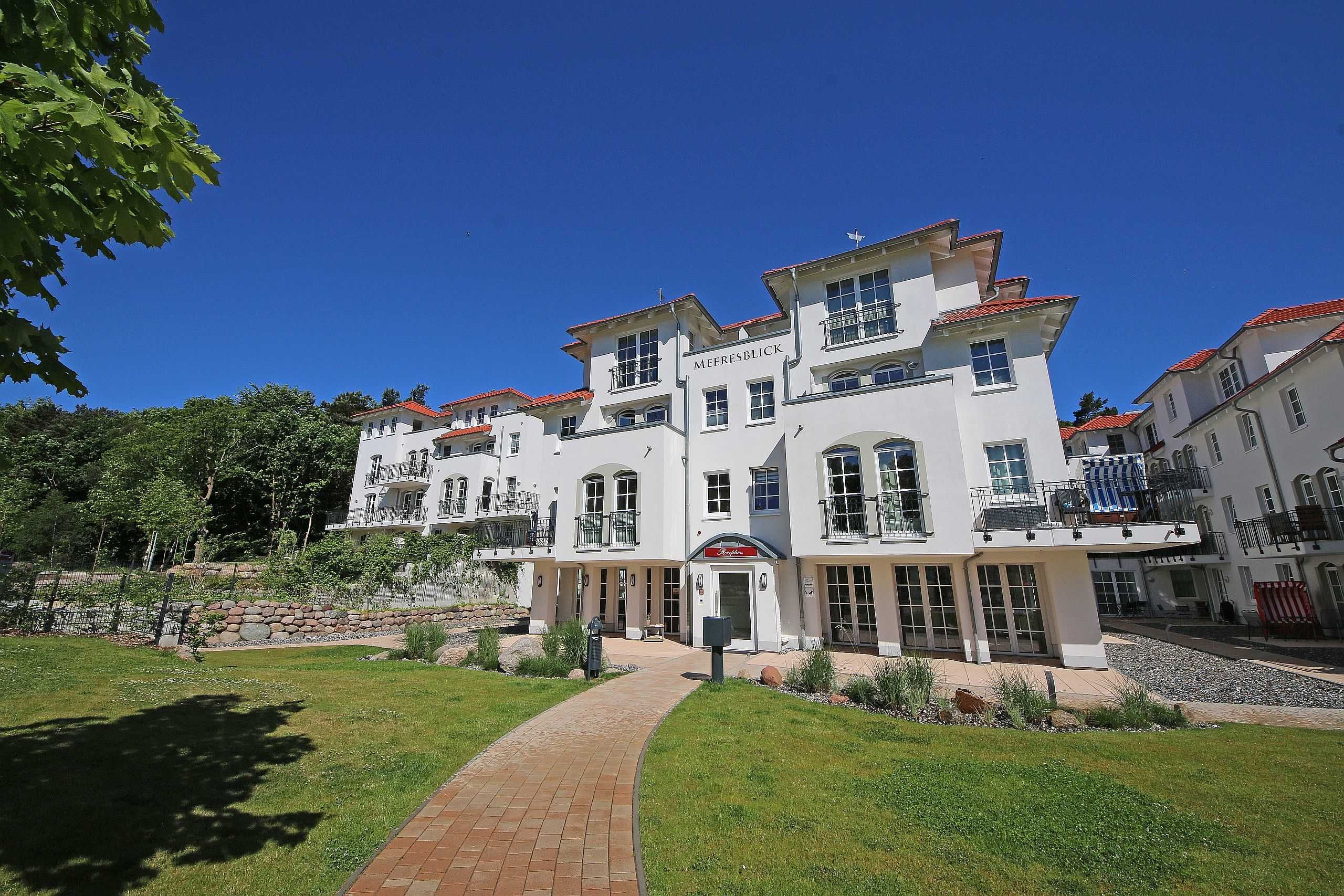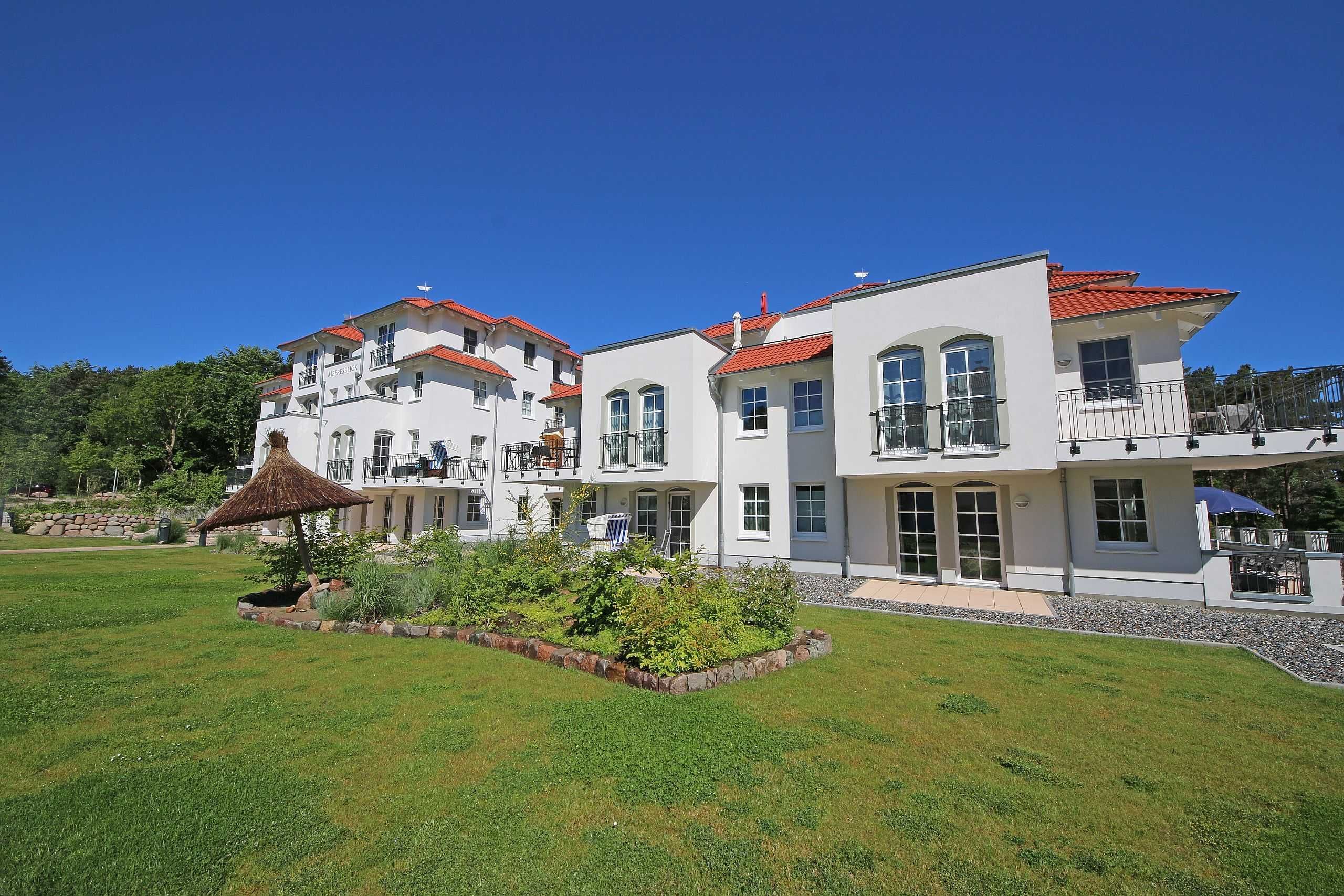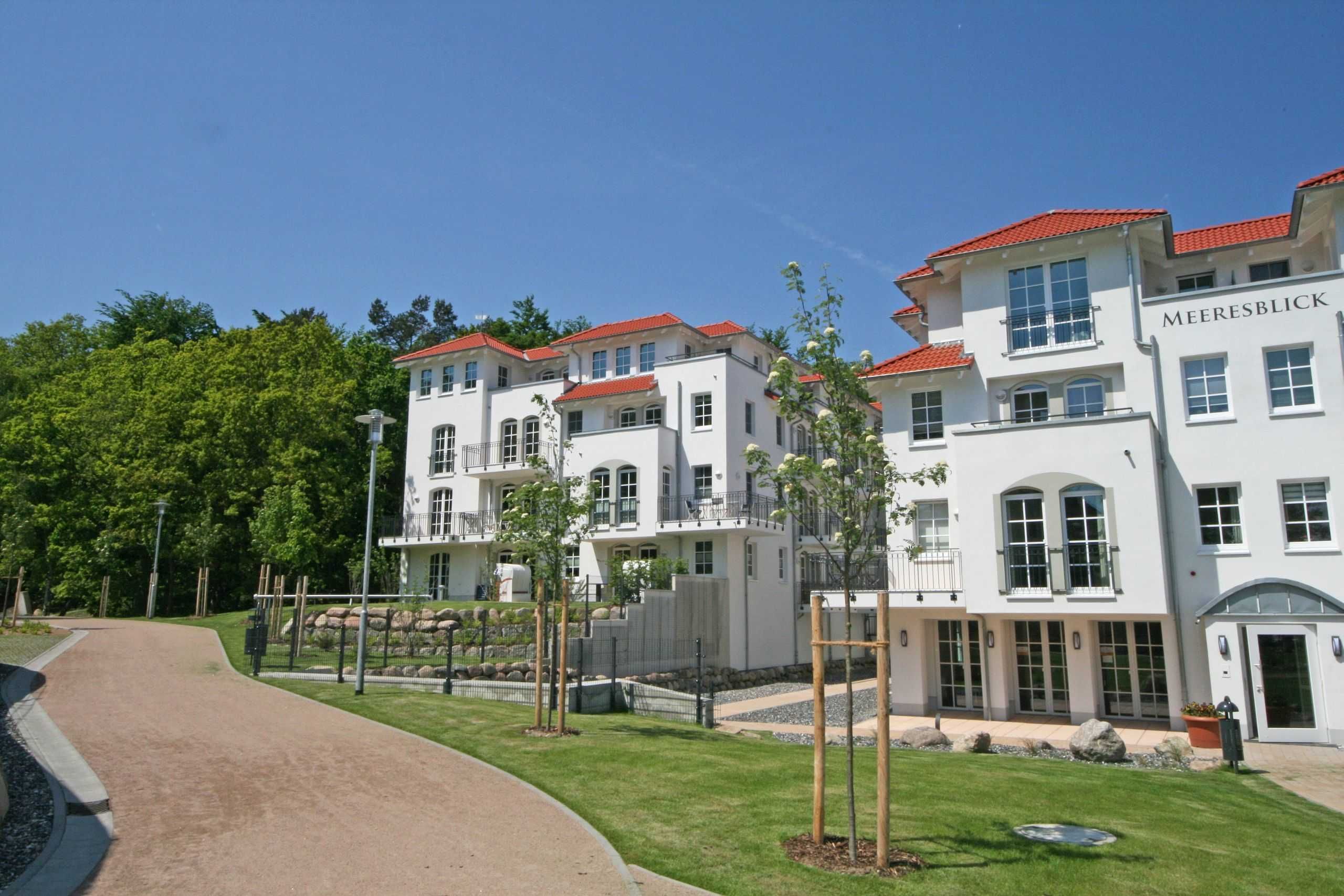 Unmittelbar am Kurpark des Ostseebades Baabe, umgeben von Kiefern befindet sich die neue Appartementanlage Meeresblick. Die Ferienanlage besteht aus 3 freistehenden Häusern und ist nur ca. 80 Meter vom feinen Sandstrand entfernt. An die hiesige Bäderarchitektur angelehnt fügt sich die Meeresblickanlage wohltuend in die Umgebung ein.
