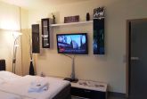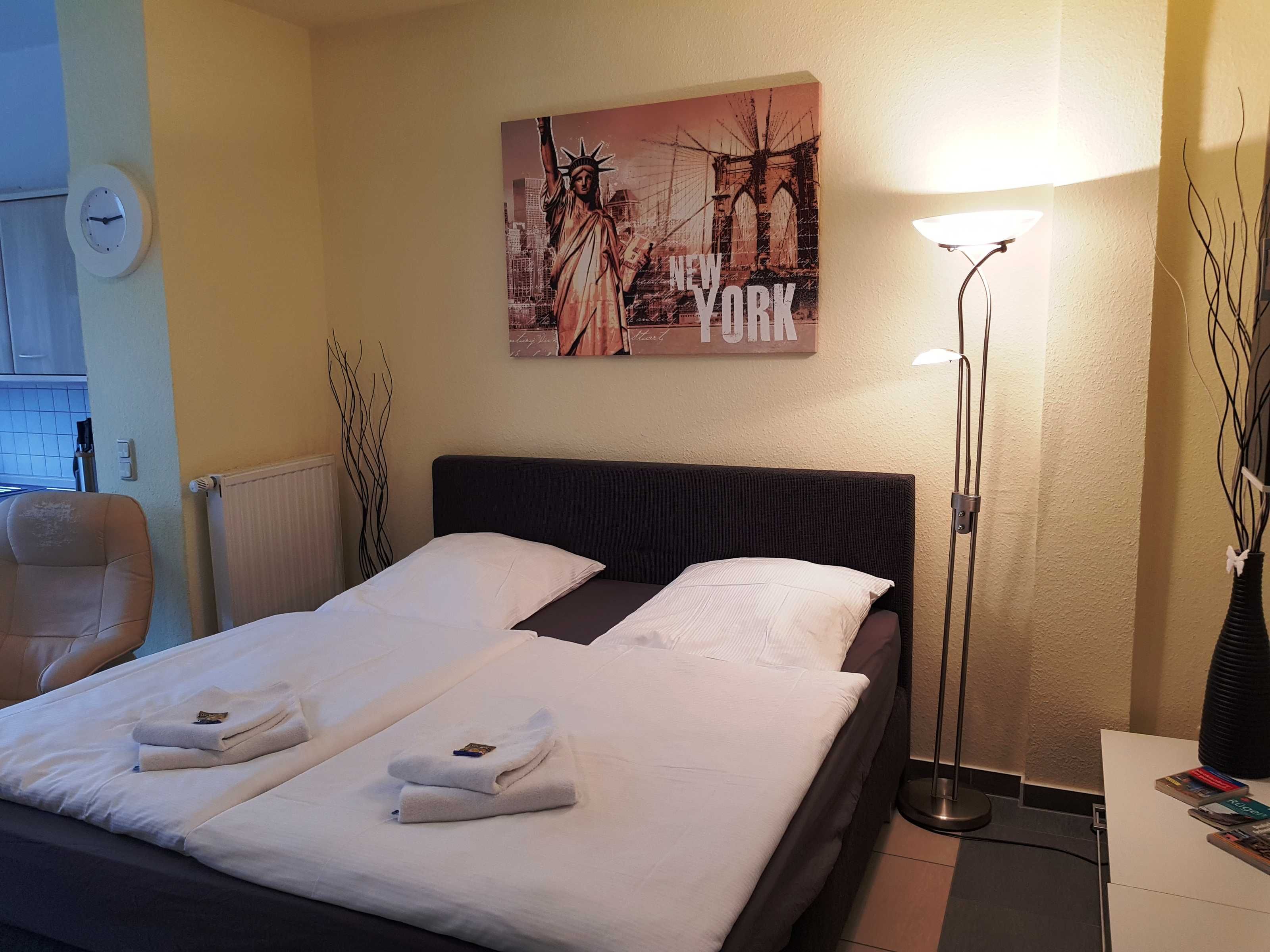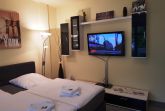Die 1 Raum Apartments haben Wohn-Schlafraum mit Doppelbett für 2 Pers.und einer ausziehbaren Couch, Kabel-TV,CD Stereoanlage ,Esstisch, gut ausgestattete Küchenzeile mit Geschirrspüler, Kaffeemaschine, Toaster und Microwelle. Babybett ( ohne Wäsche )und Hochstuhl für die kleinen stellen wir für 5 Euro zur verfügung ( bitte vorbestellen ) . Eine Waschmaschine steht gegen Gebühr im Haus in den Gemeinschaftsräumen zur Verfügung.