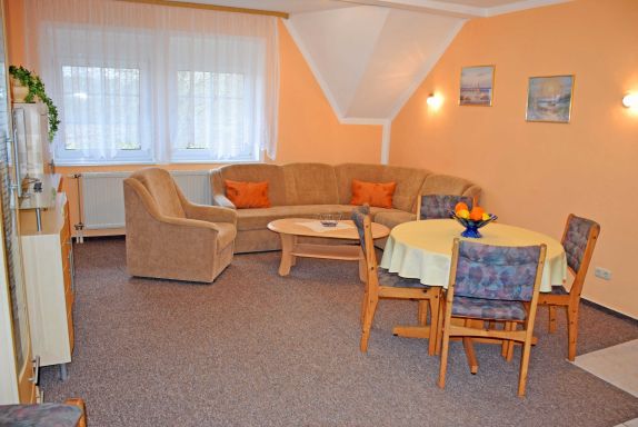 Das 2-Raum-Appartement liegt im Obergeschoss und ist ca. 48 qm groß. Es bietet Platz für maximal 4 Erwachsene sowie ein Kind im Kinderreisebett und wurde modern und komfortabel eingerichtet. Dieses Appartement verfügt auch über einen WLAN-Internet- und einen Telefonanschluss.