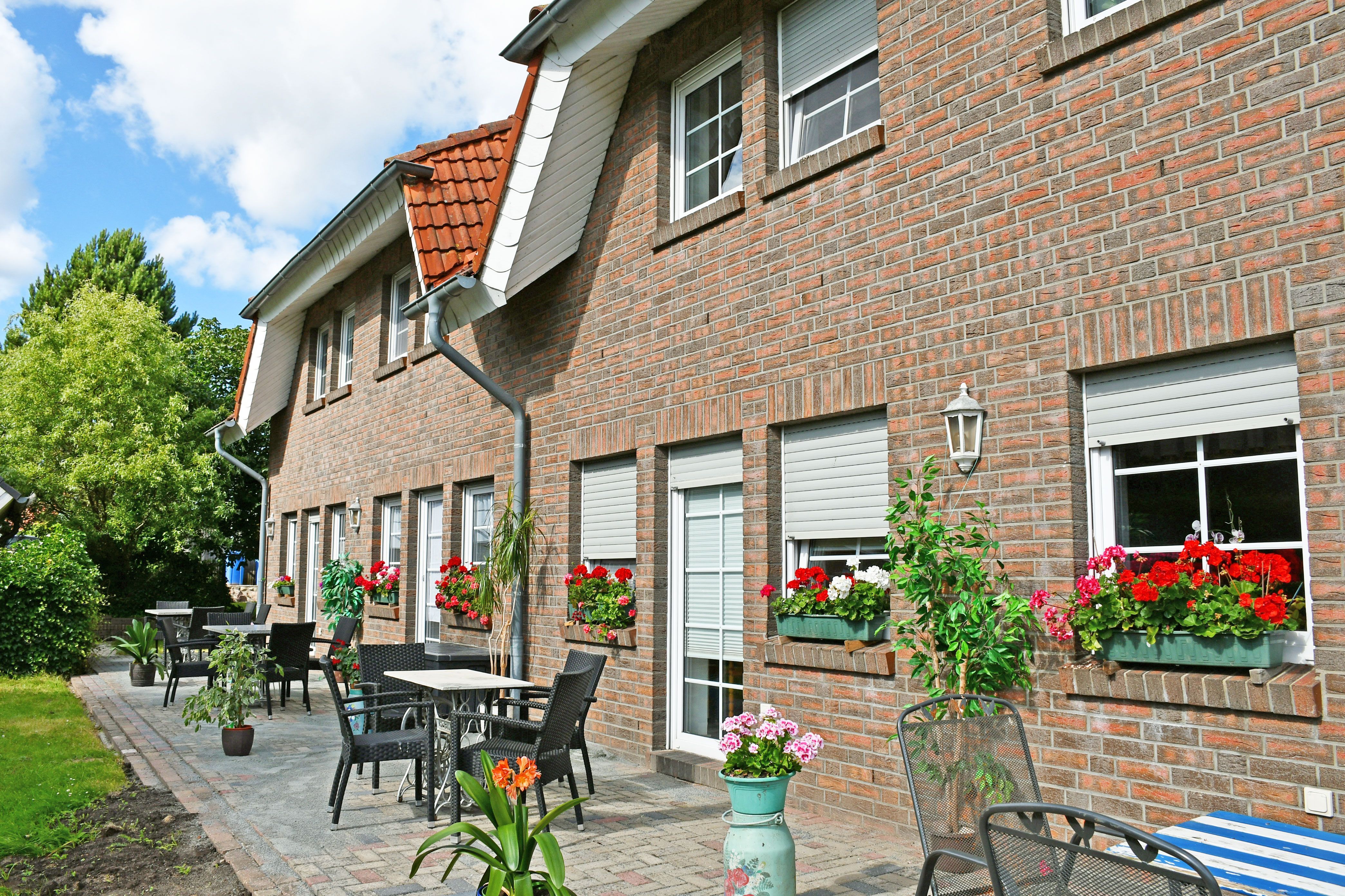 Die Gäste der Appartements im Obergeschoss können die Gartenmöbel am Grill oder auf der Wiese vor dem Haus nutzen.