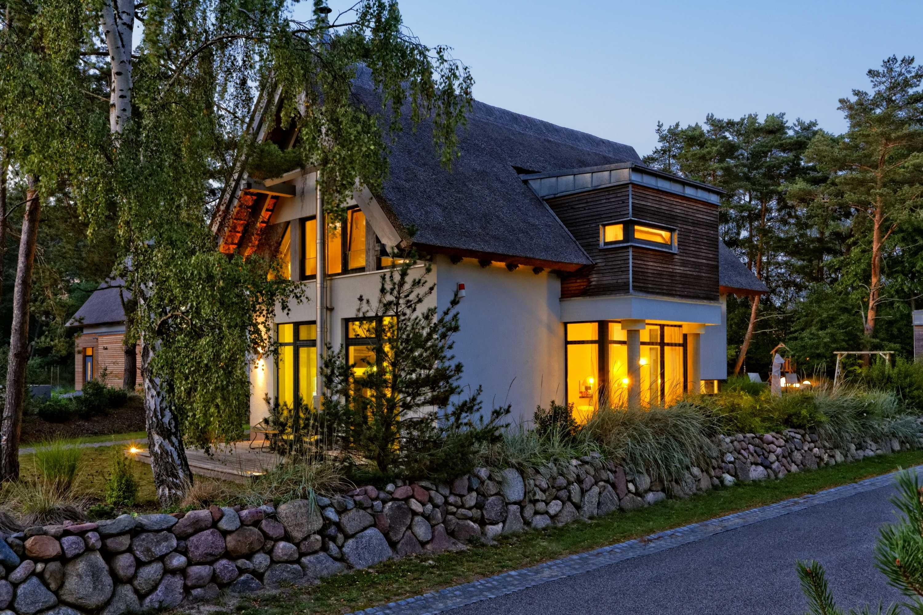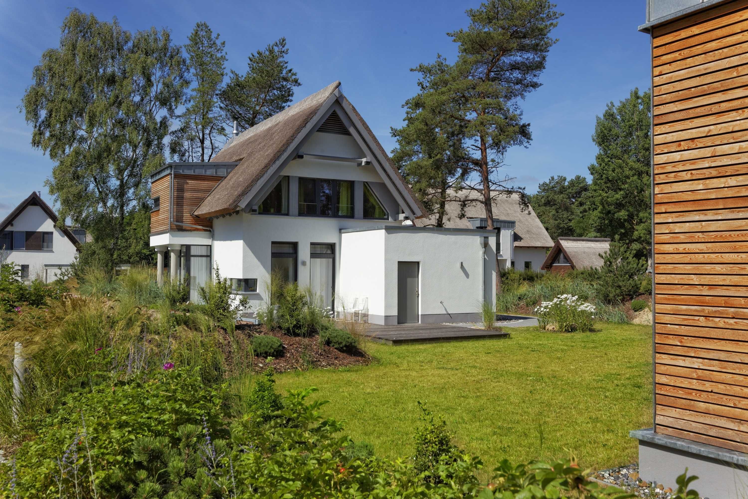 Exklusives, 2012 erbautes schilfrohrgedecktes Strandhaus in der Ferienhaus-Anlage VAKON Ostseeland in Karlshagen in der Nähe eines Naturschutzgebietes